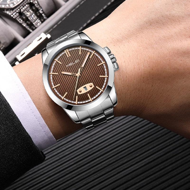 Waterproof Men Quartz Watch with Stainless Steel Band and Automatic Display – Dark Brown