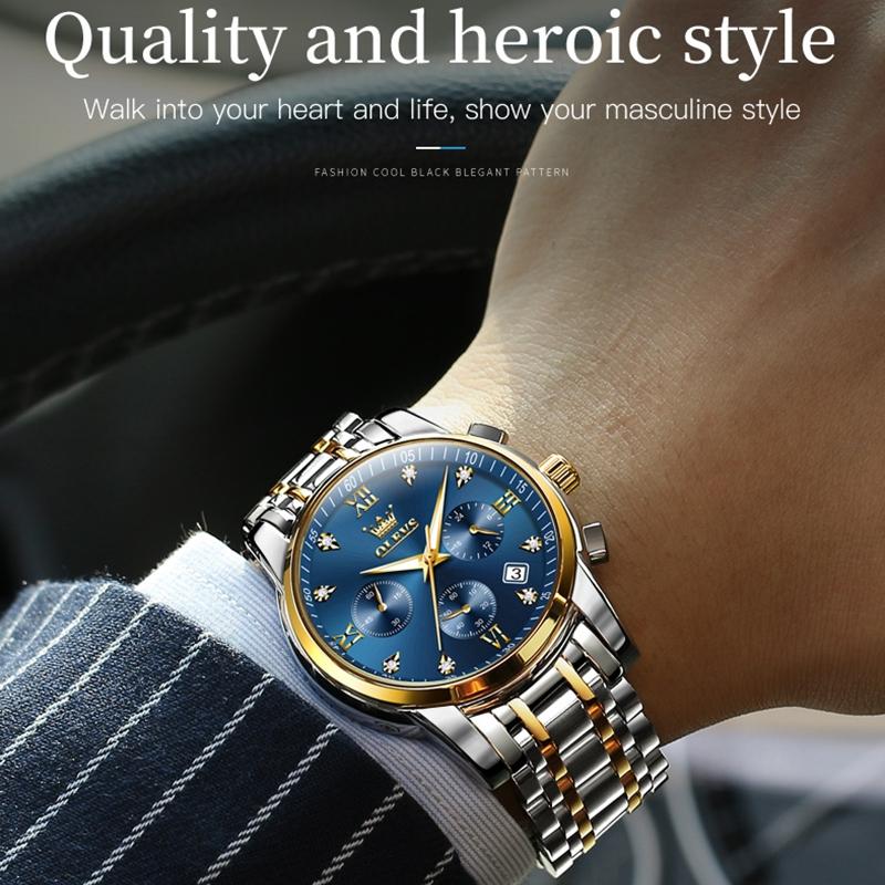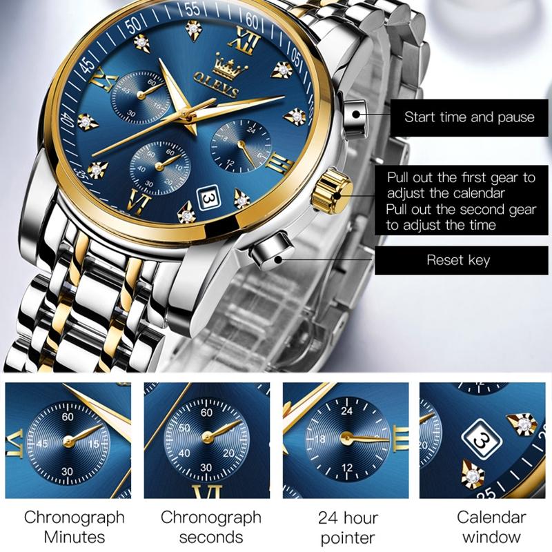 Waterproof Quartz Watch for Men – Multifunctional Business Design – Blue + Gold