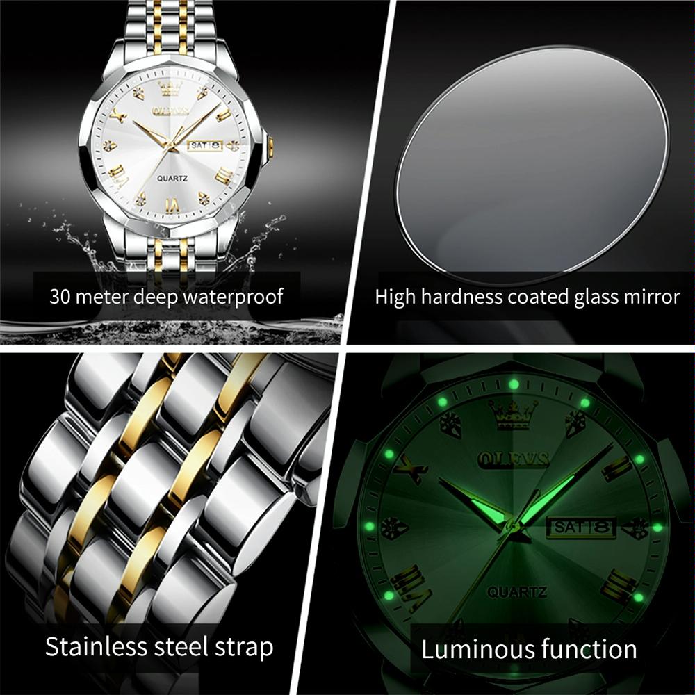 Waterproof Quartz Watch for Men with Luminous Dial – Gold