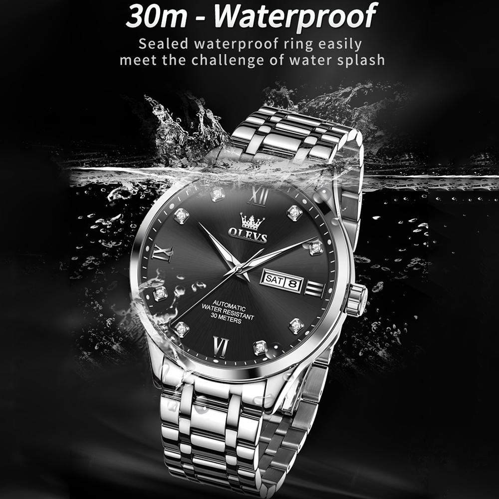 Waterproof Quartz Watch with Diamond Roman Scale for Men – Black + Silver