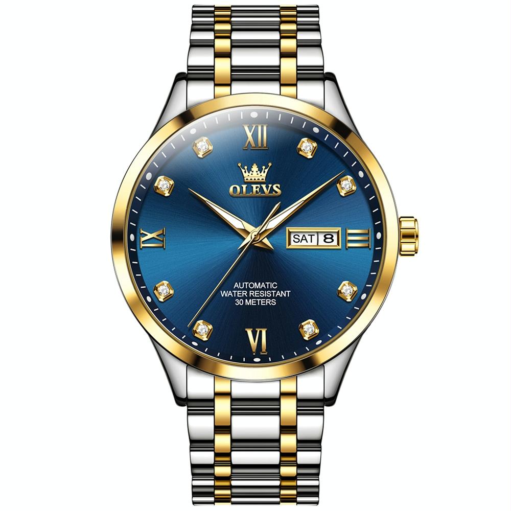 Waterproof Quartz Watch with Diamond Roman Scale for Men – Blue + Gold
