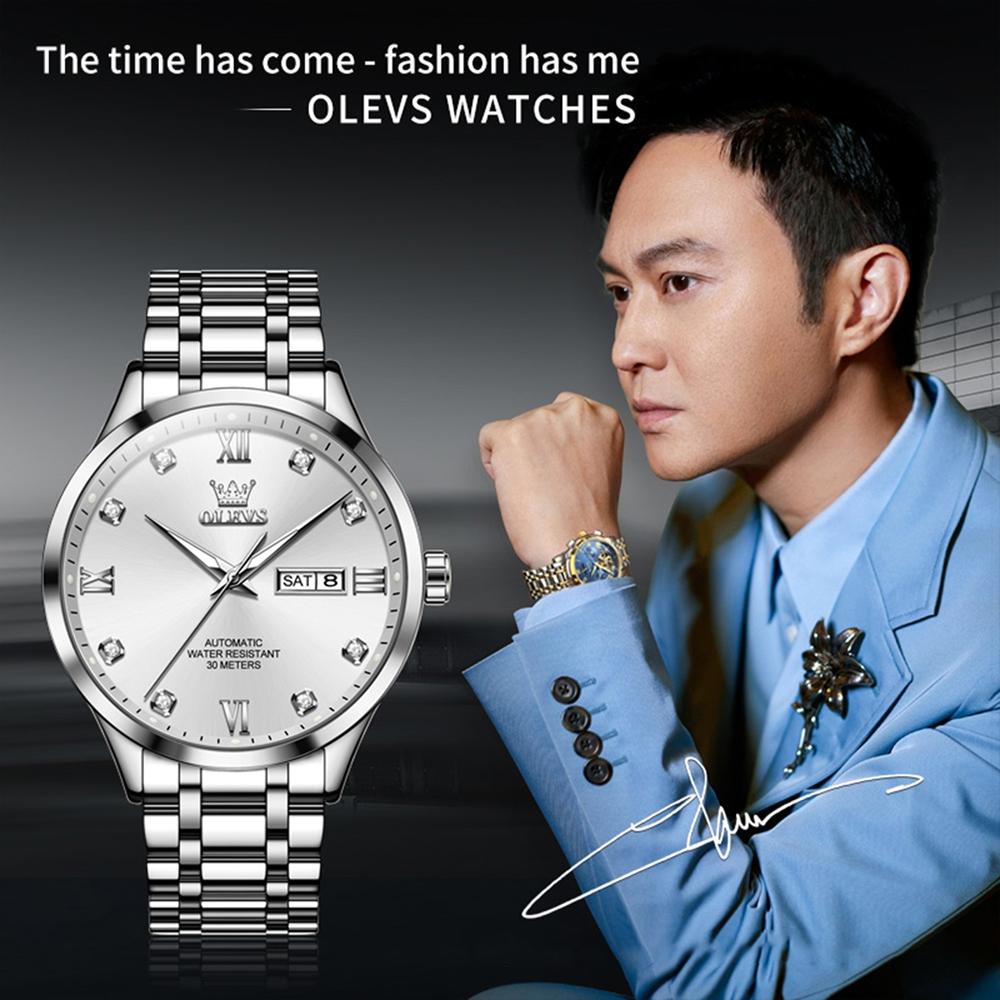 Waterproof Quartz Watch with Diamond Roman Scale for Men – White + Silver