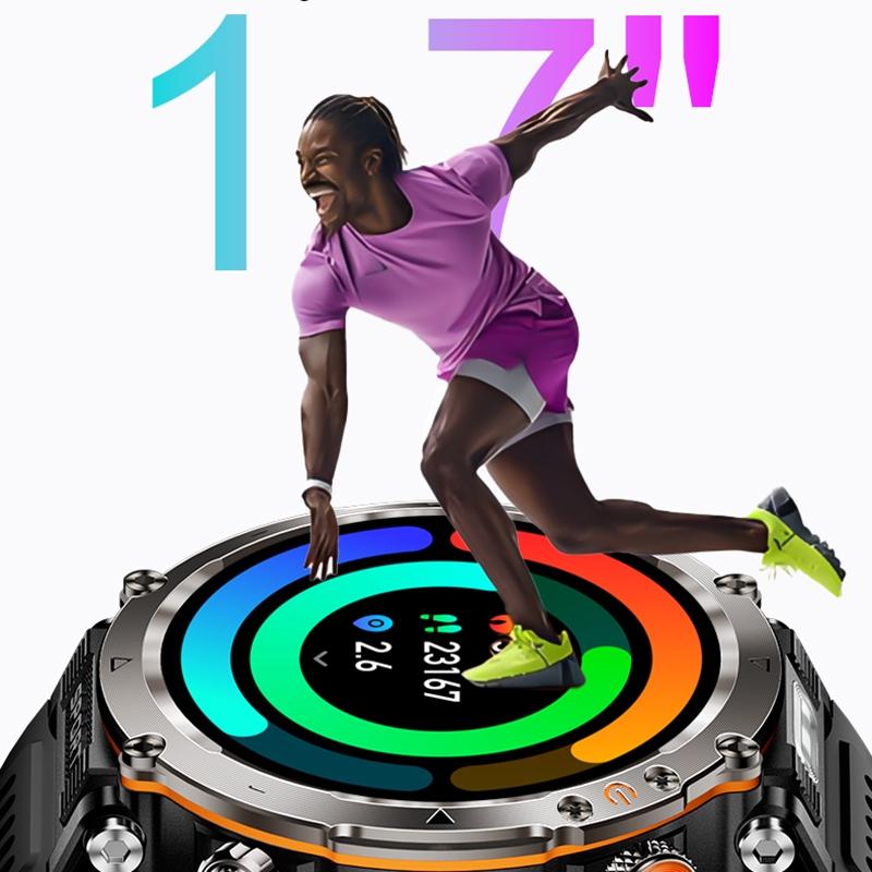 Waterproof Smart Watch With Flashlight And Compass – 1 Inch – Army Green