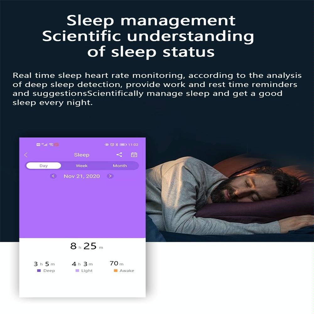 • Music control, weather, smart alarm clock, raise hand to light screen, light screen time, find my phone, find my bracelet, reject call, shake to take photos, and do not disturb mode