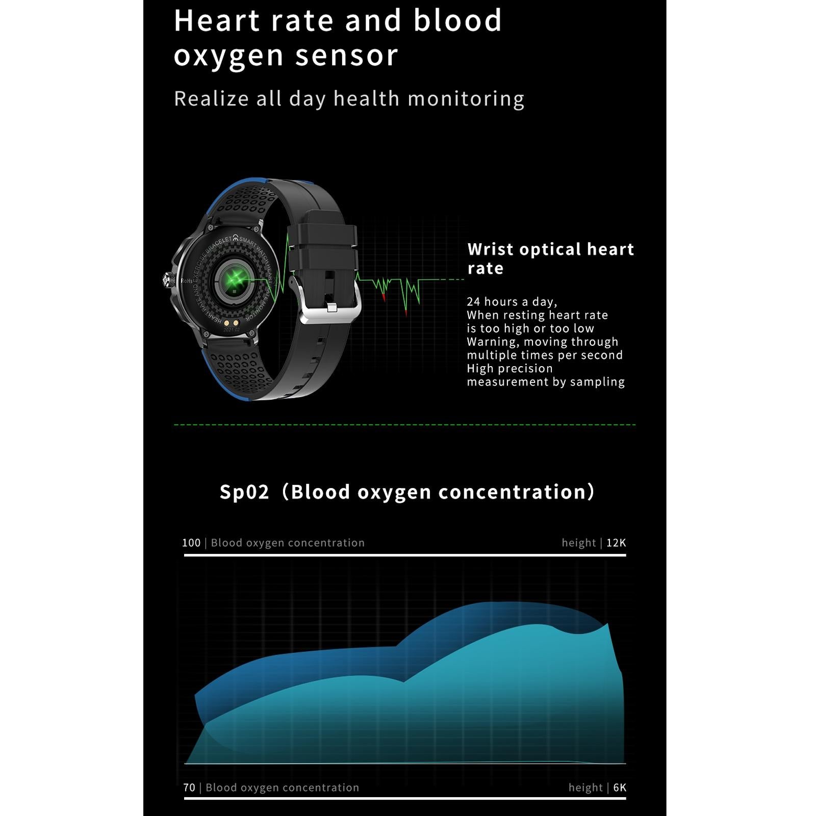 • Heart rate, blood pressure, and blood oxygen detection