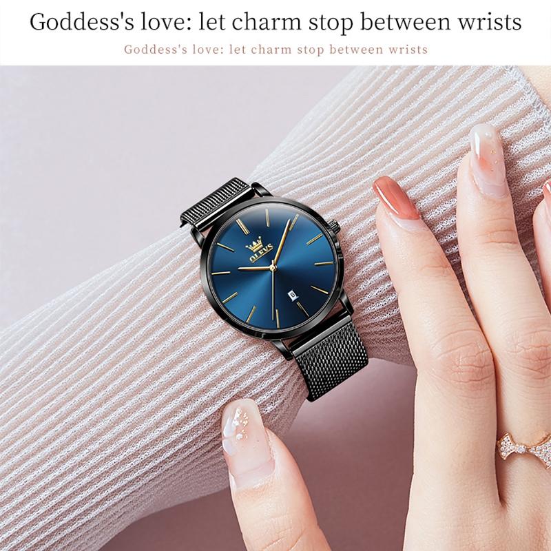 Waterproof Women Quartz Watch with Steel Strap – Blue + Black