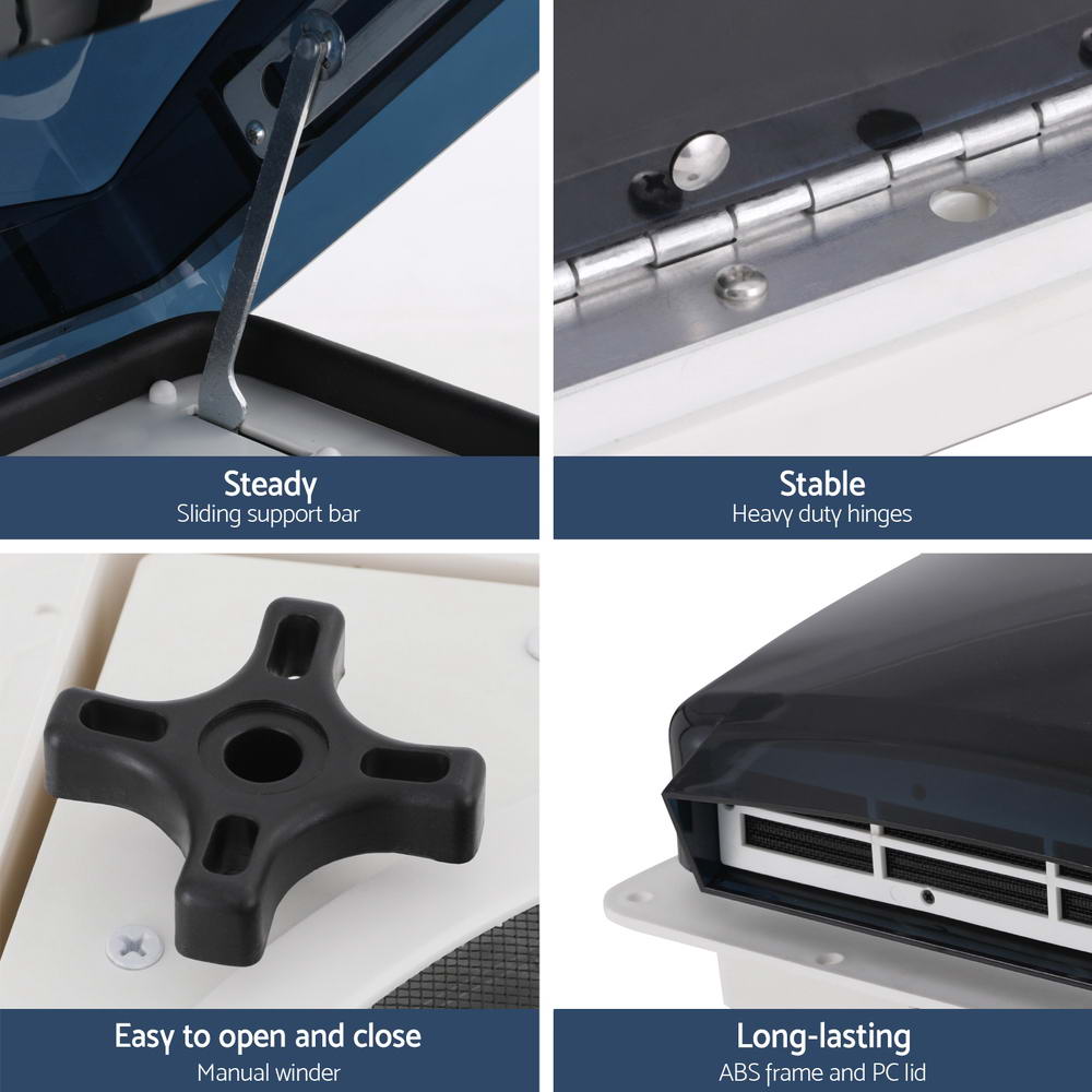 Need a breath of fresh air while travelling? The Weisshorn Caravan Vent is designed to enhance fresh air circulation in your caravan with ease. With its 50 degree wide-angle opening, it allows for maximum airflow, ensuring a comfortable and refreshing environment inside. Whether it’s summer or winter, this vent is suitable for use in all seasons and weather conditions. One of the key features of our caravan vent is its low-noise operation, ensuring a peaceful and quiet atmosphere inside your caravan. Additionally, it effectively prevents insects from entering thanks to the stainless-steel flyscreen, providing you with a bug-free space to relax and enjoy your time. The single-speed reversible fan helps to keep moisture and odours out of your caravan. Furthermore, this vent is compatible with various roof thicknesses, making it versatile and easy to install. Upgrade your caravan with our caravan vent and experience improved air circulation and comfort like never before with the Weisshorn Caravan Vent.