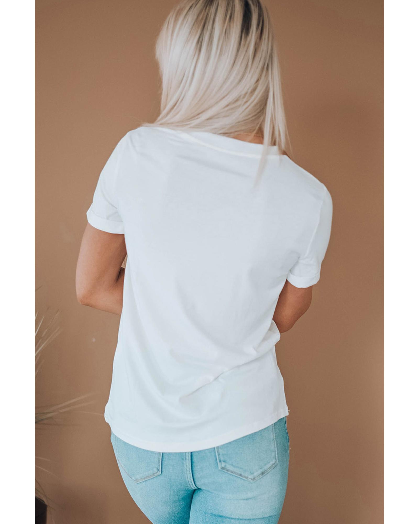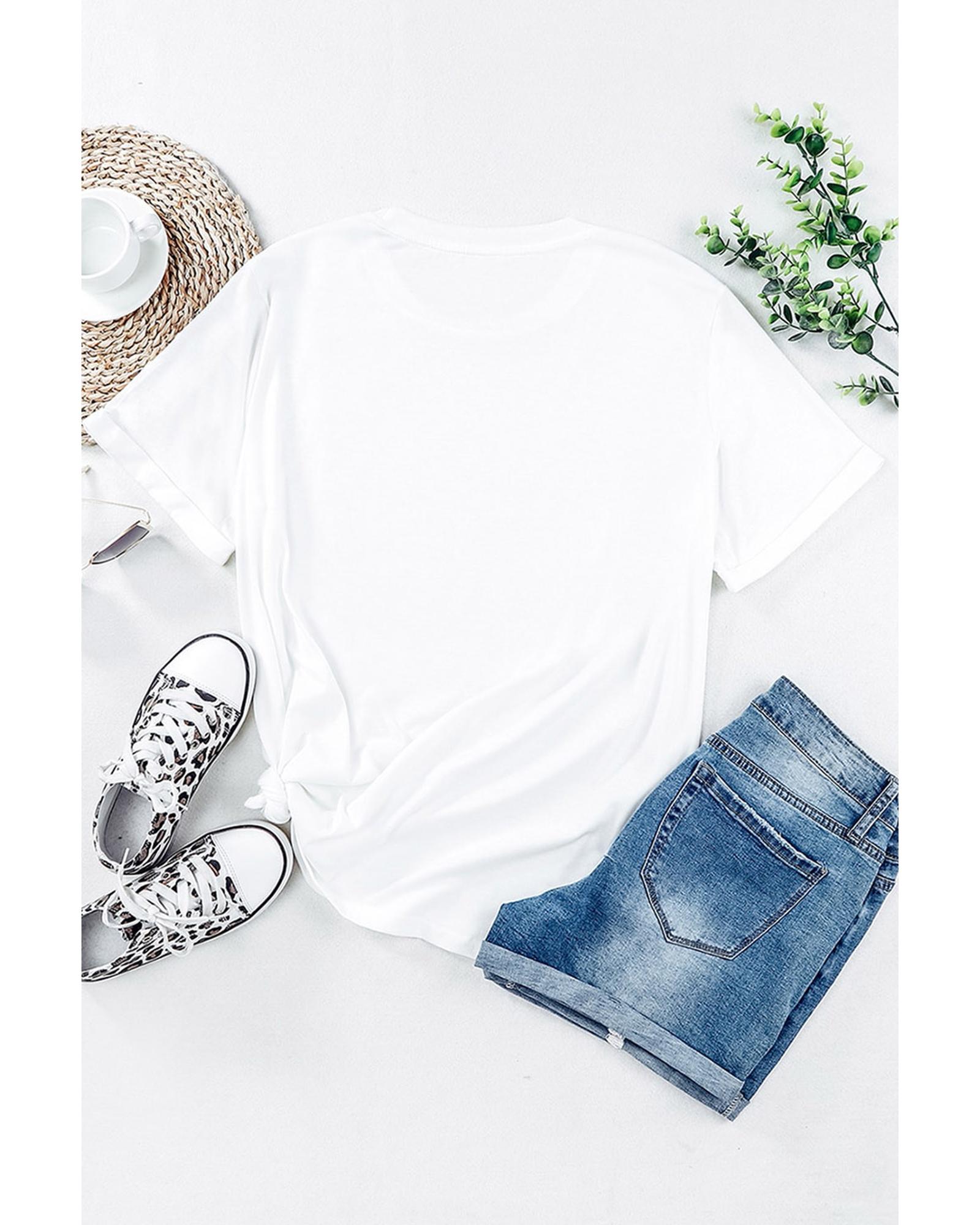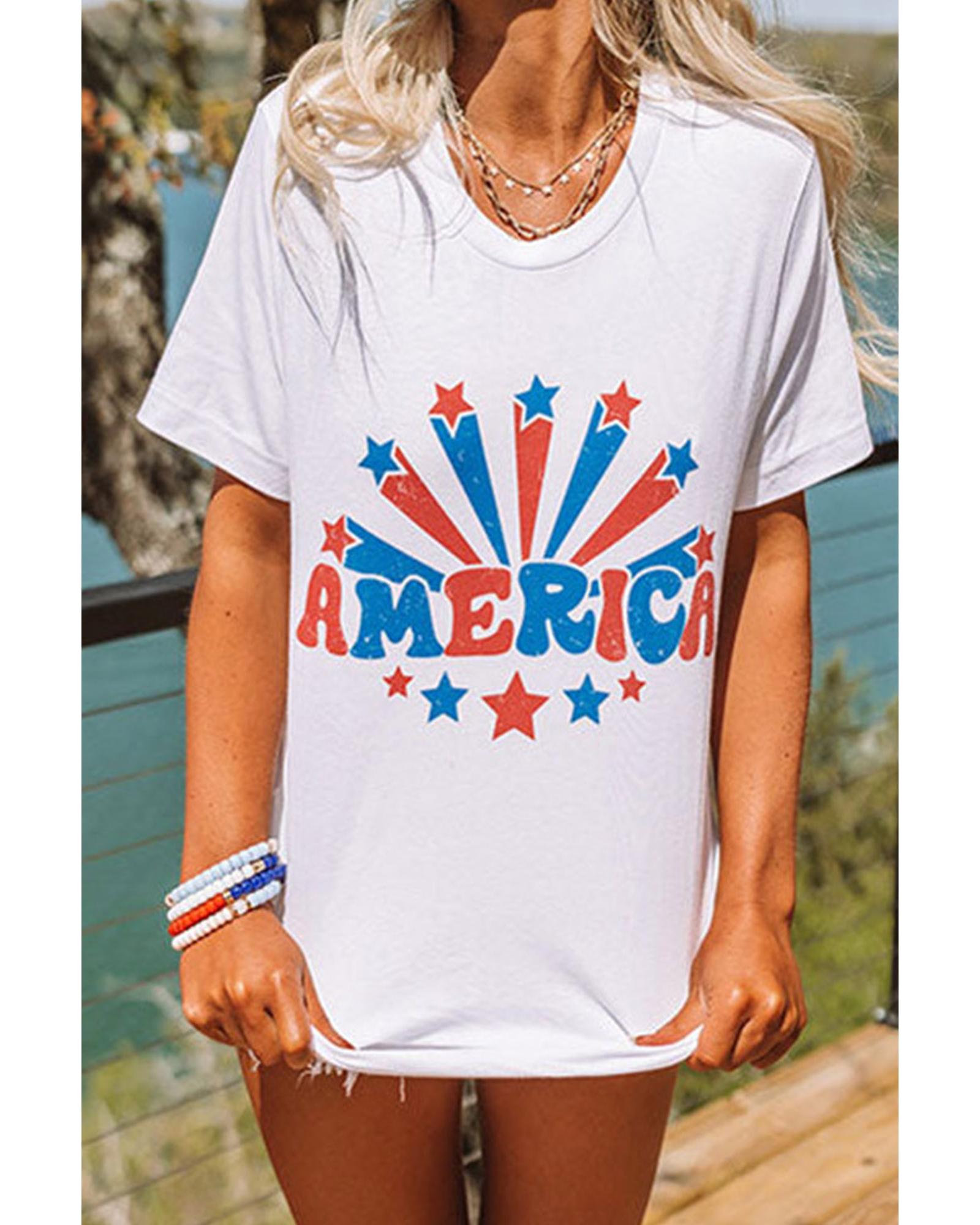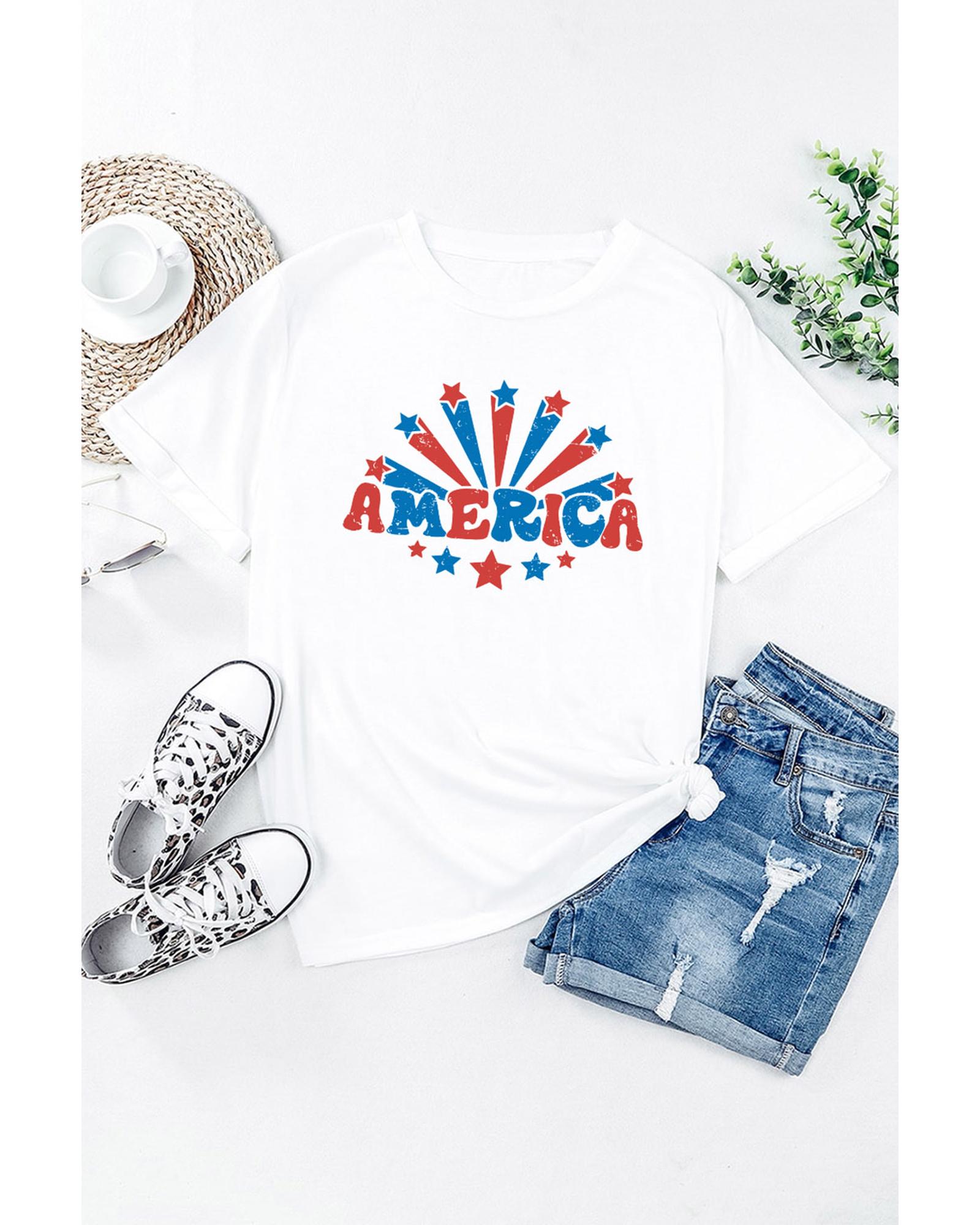 White AMERICA Star Graphic Round Neck Tee Short sleeve design AMERICA Stars graphic print Made from high - quality materials Comfortable and durable Available in multiple sizes