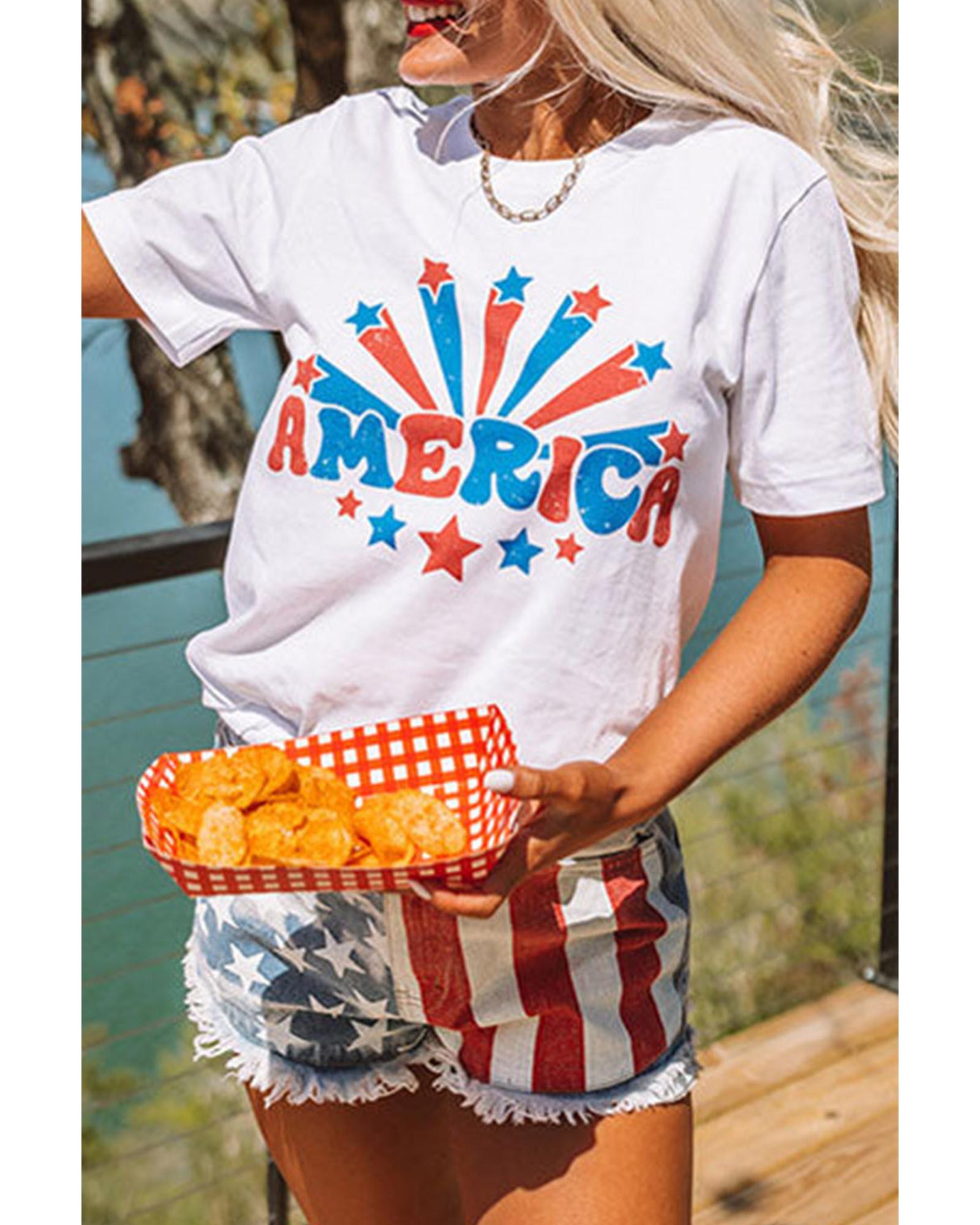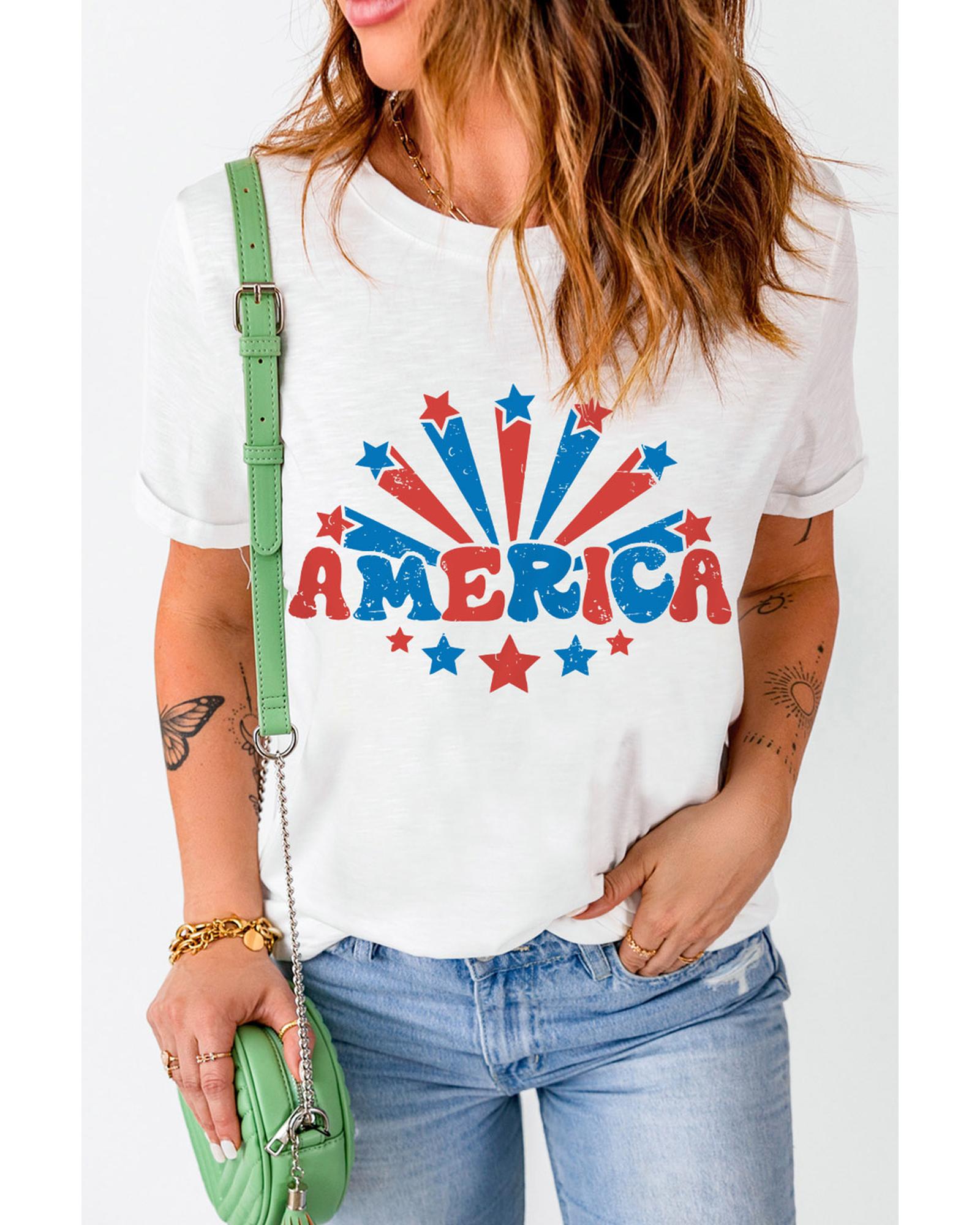 White AMERICA Star Graphic Round Neck Tee Short sleeve design AMERICA Stars graphic print Made from high - quality materials Comfortable and durable Available in multiple sizes