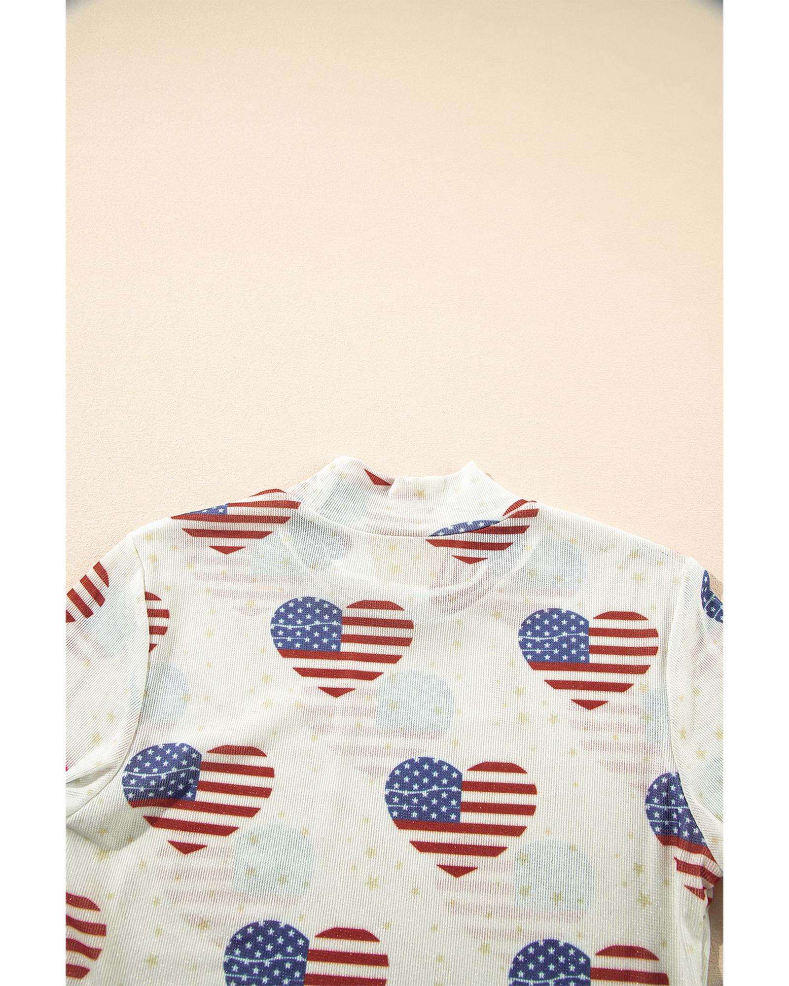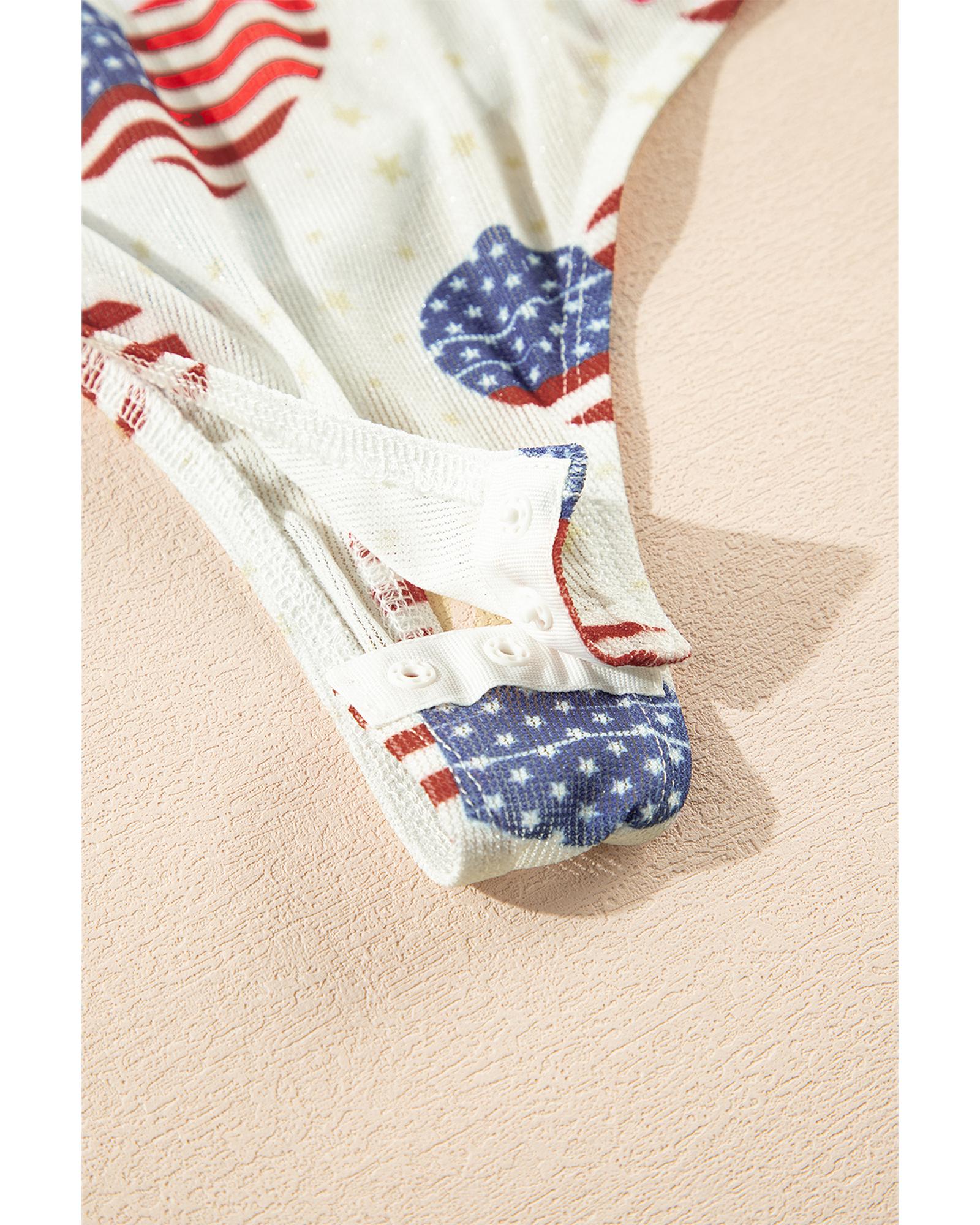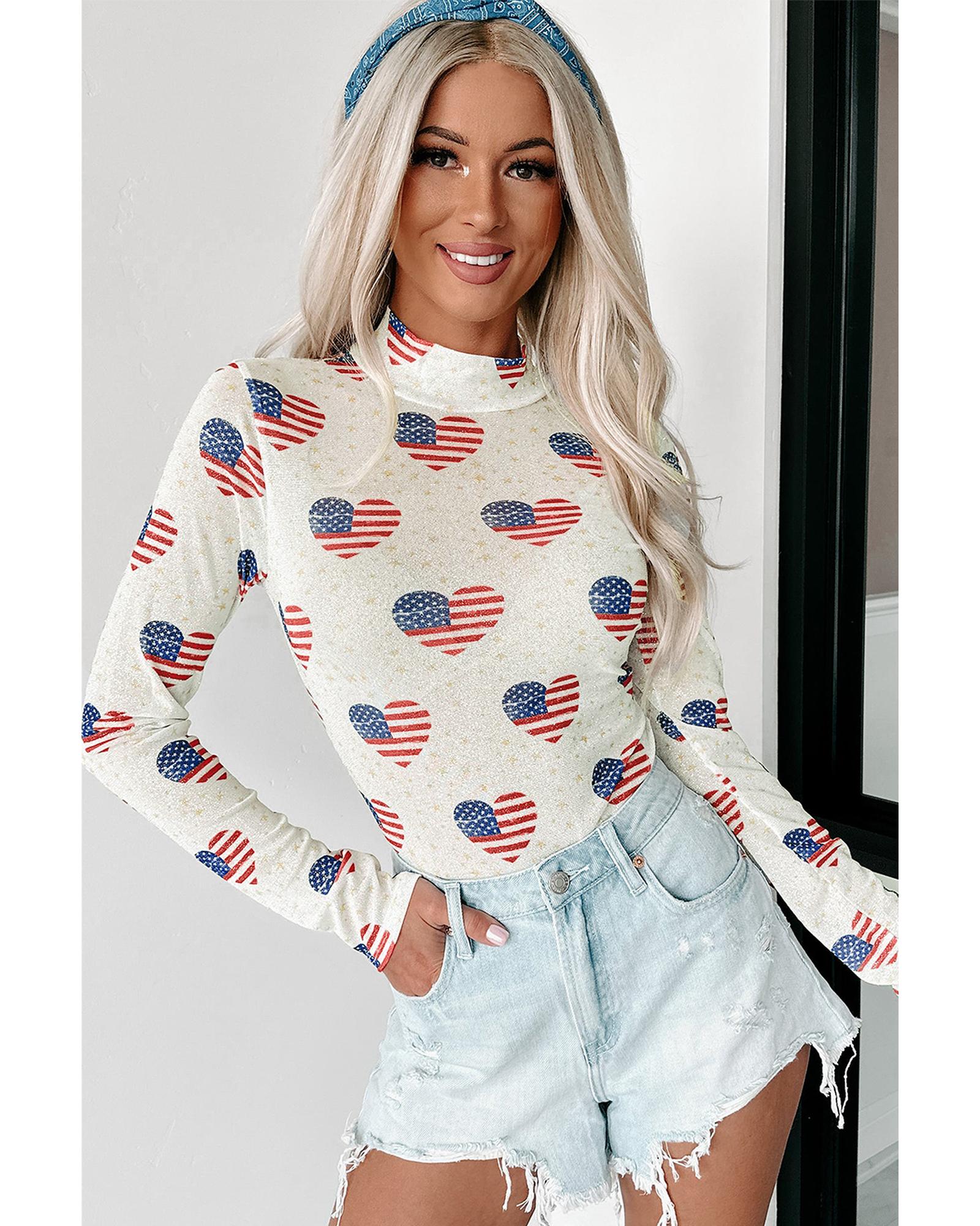 White Americana Glitter Mesh Long Sleeve Bodysuit – L