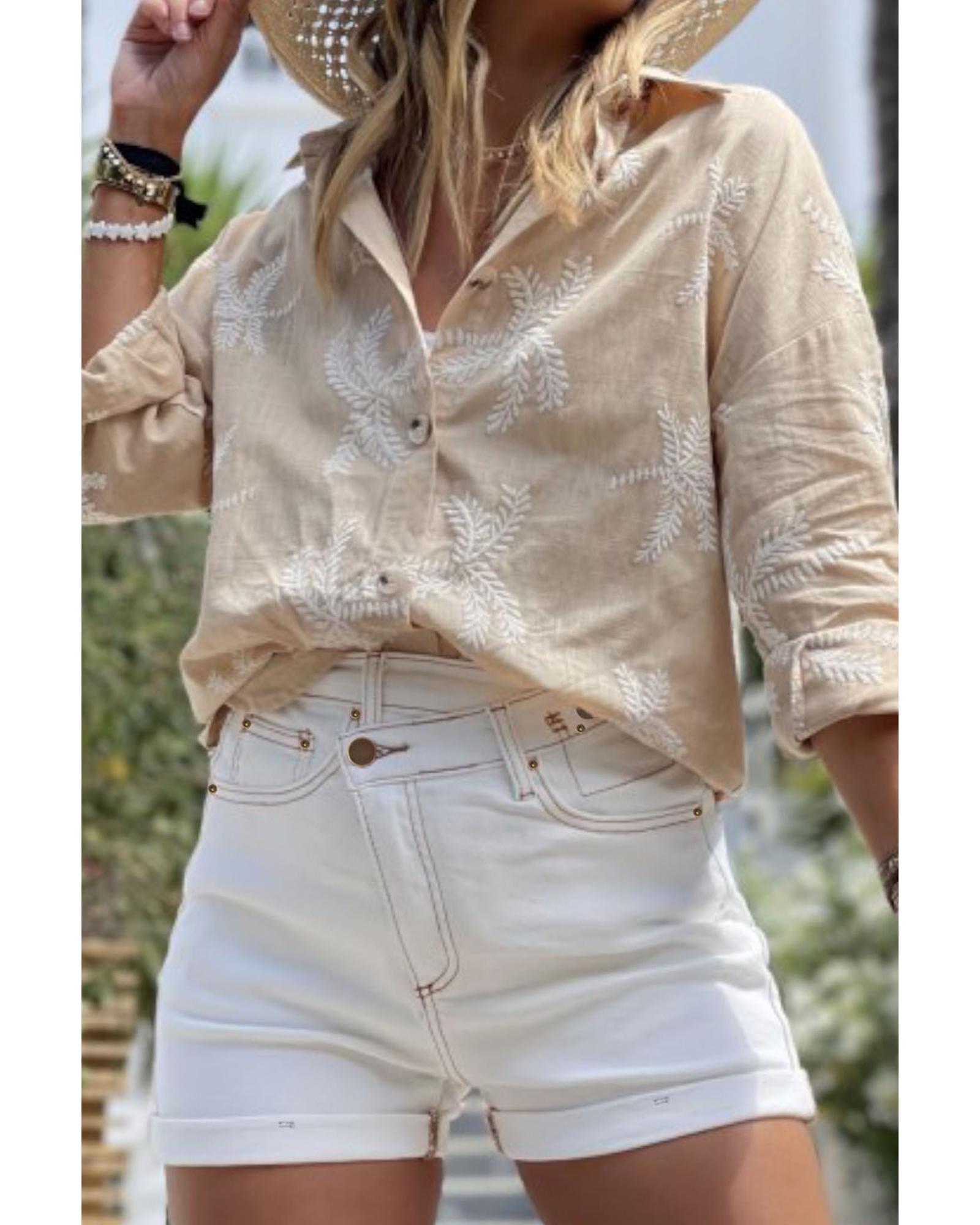 - White denim shorts with delicate stitches