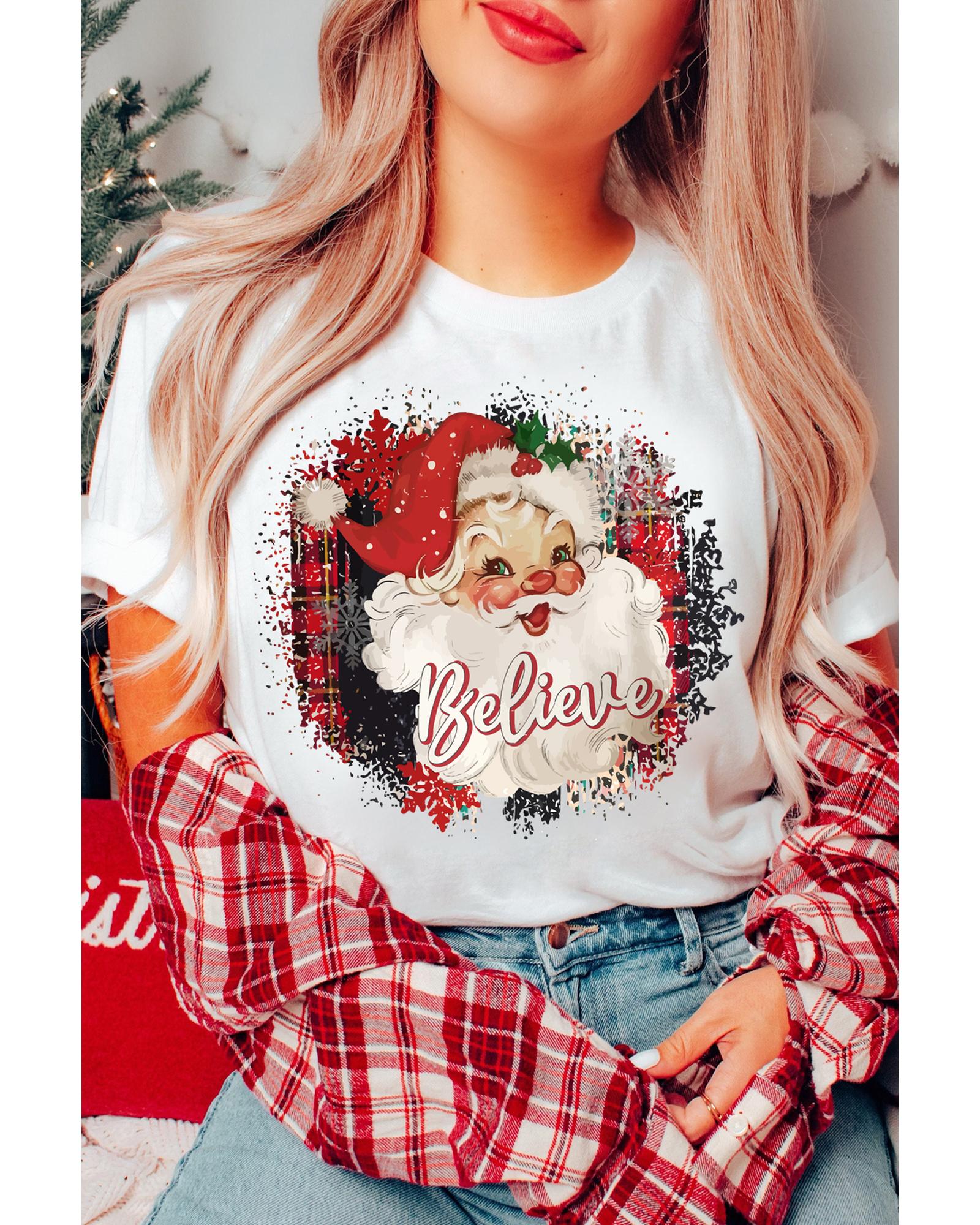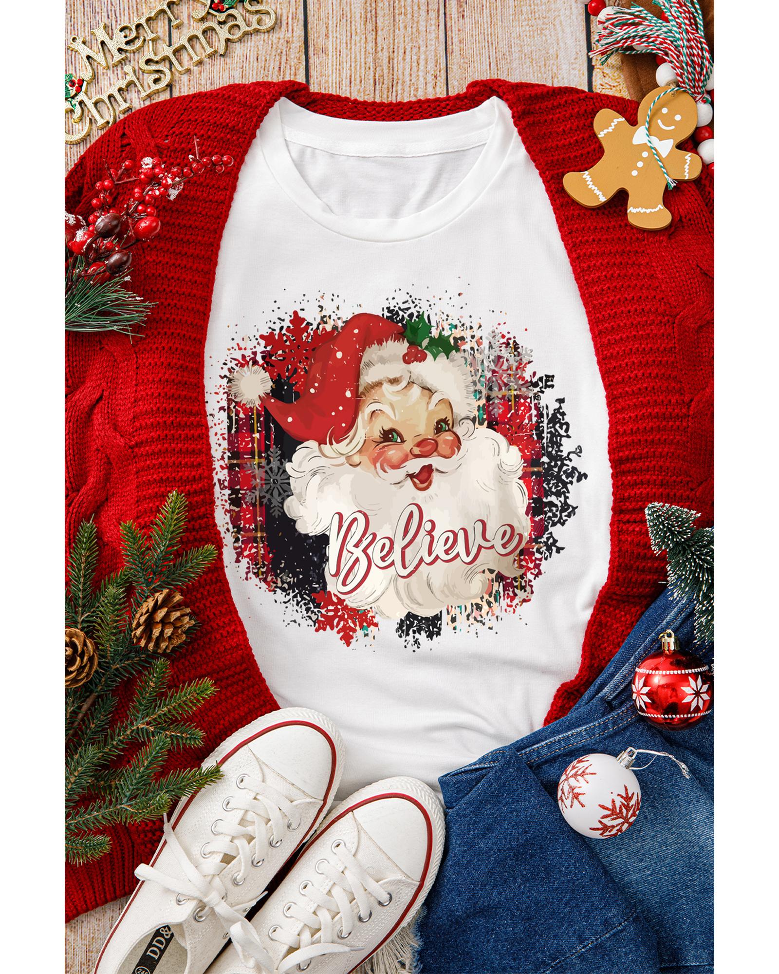 - White Believe Christmas Father Graphic Crewneck T
