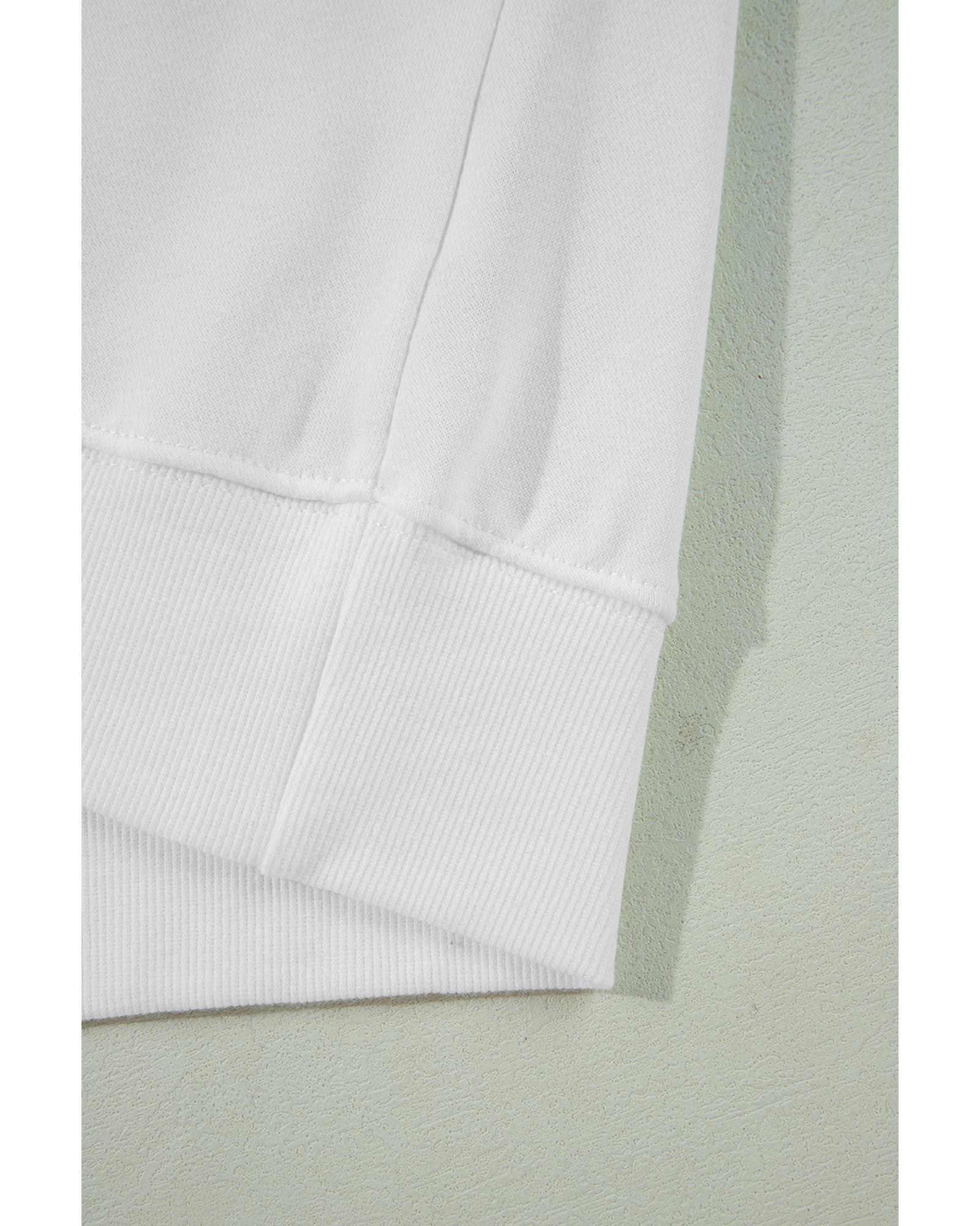 White Patchwork Side Pockets Oversized Henley Hoodie - S