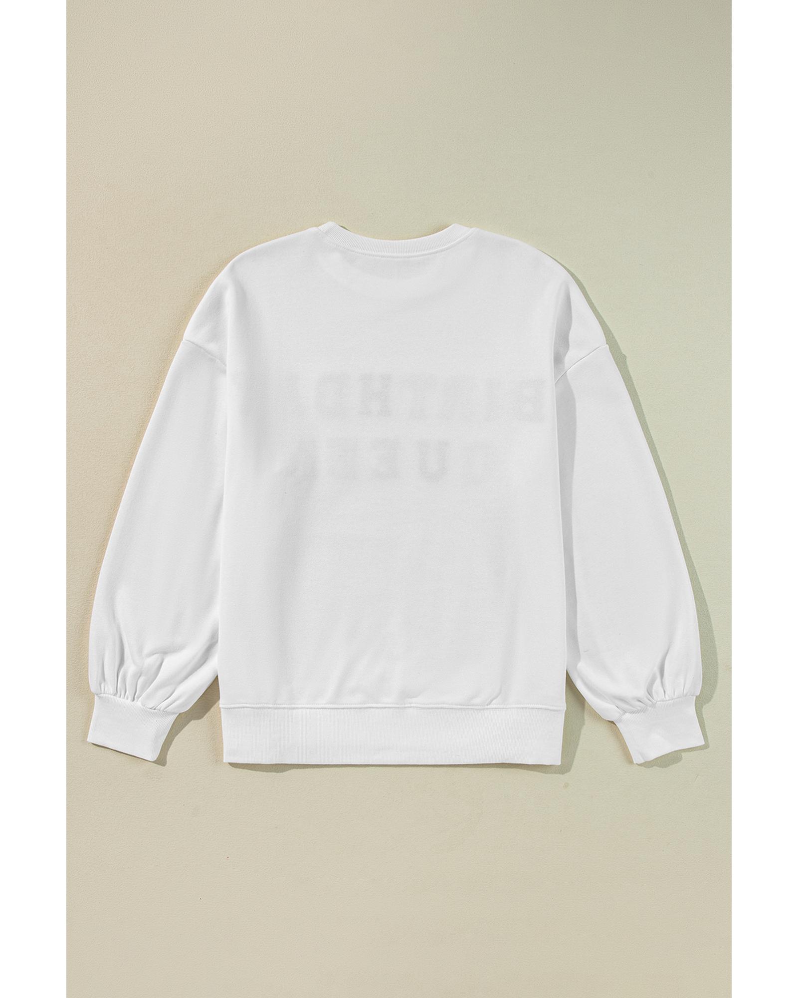 White BIRTHDAY QUEEN Graphic Balloon Sleeve Sweatshirt – S