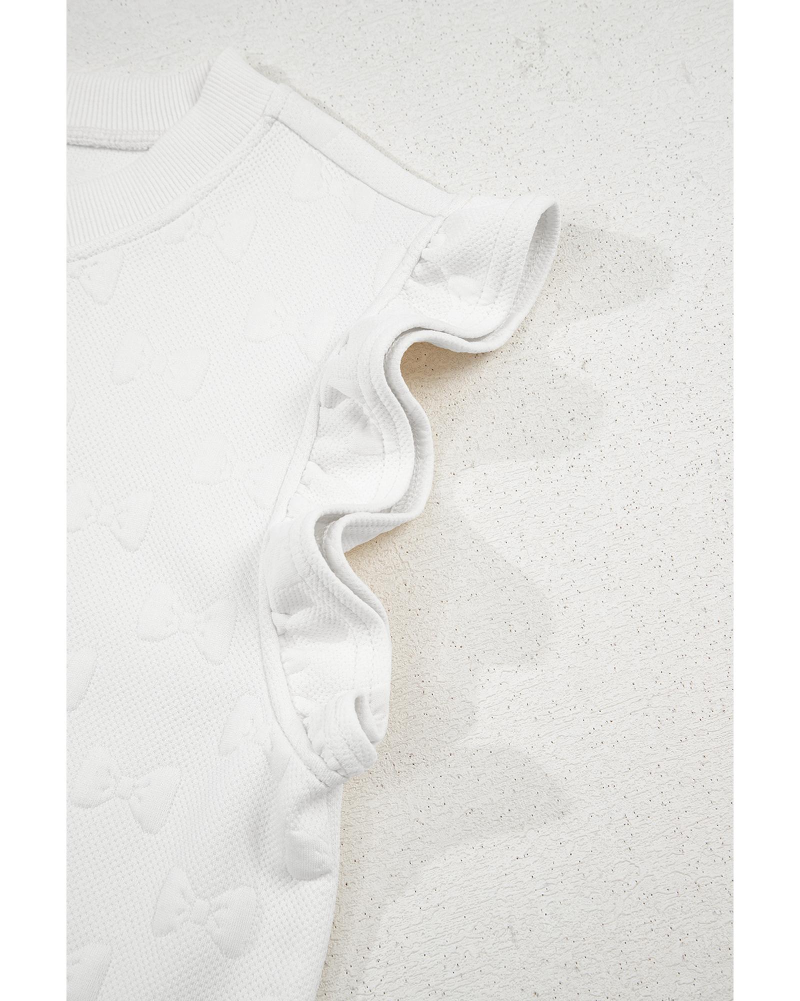 White Bow Jacquard Ruffle Sleeve Short 2pcs Outfit – S