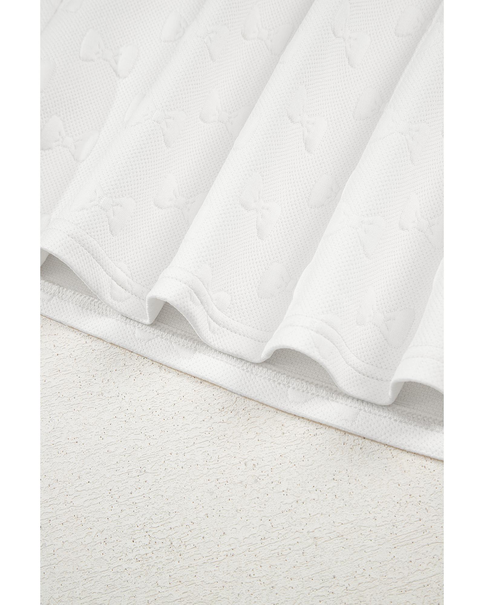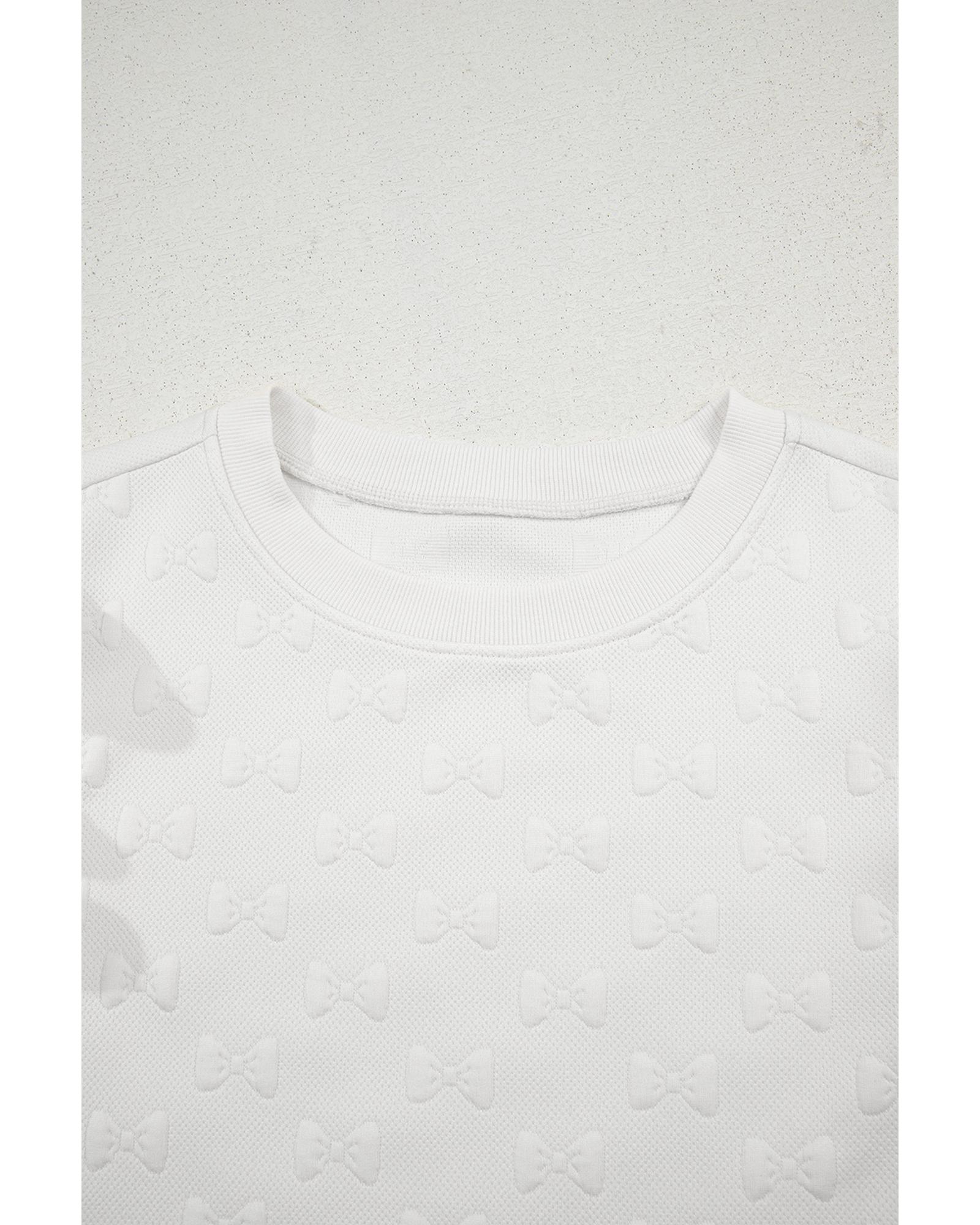 White Bow Jacquard Ruffle Sleeve Short 2pcs Outfit – XL