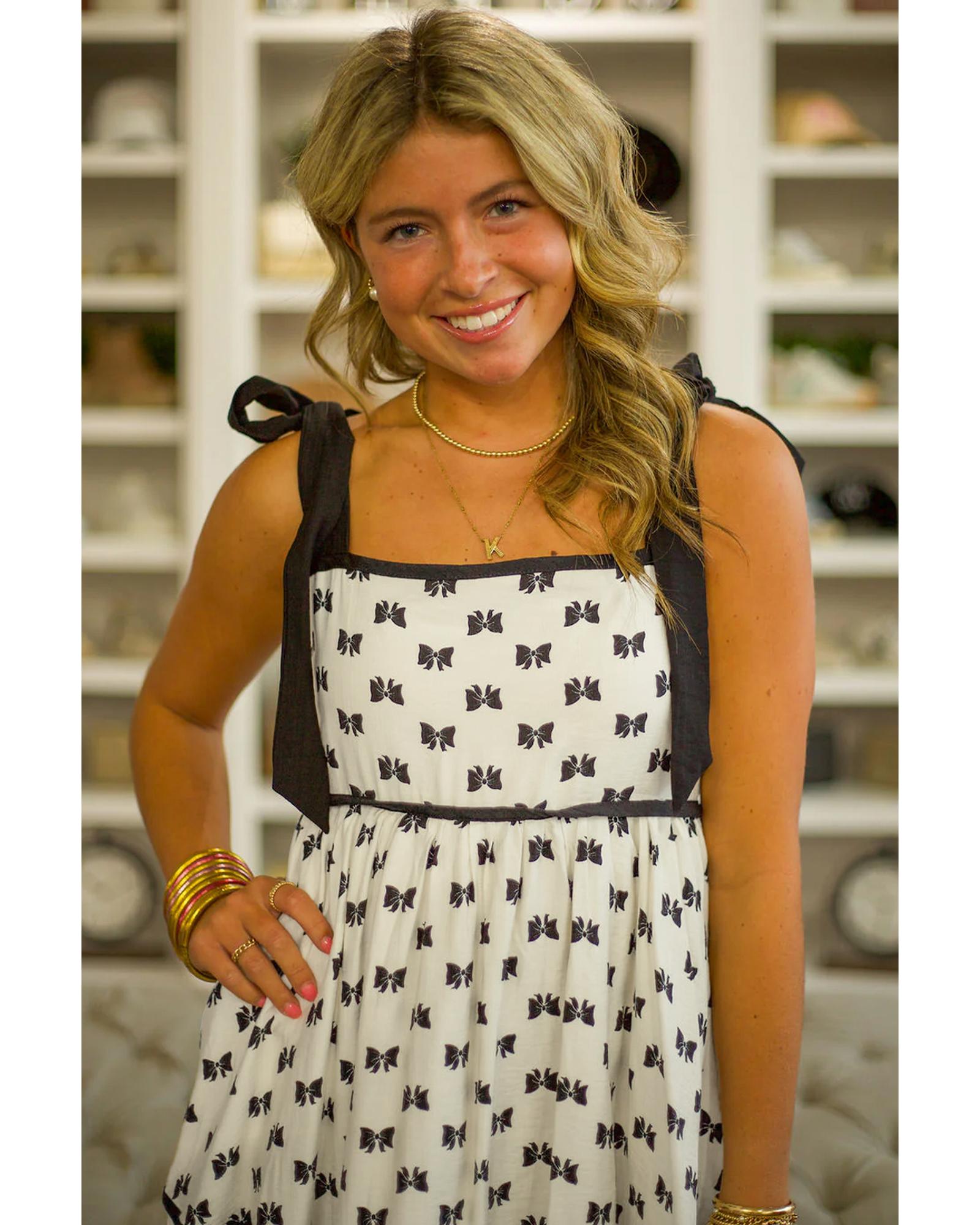 White Bow Knot Color Contrast Trim Knotted Shoulder Mini Dress – S
