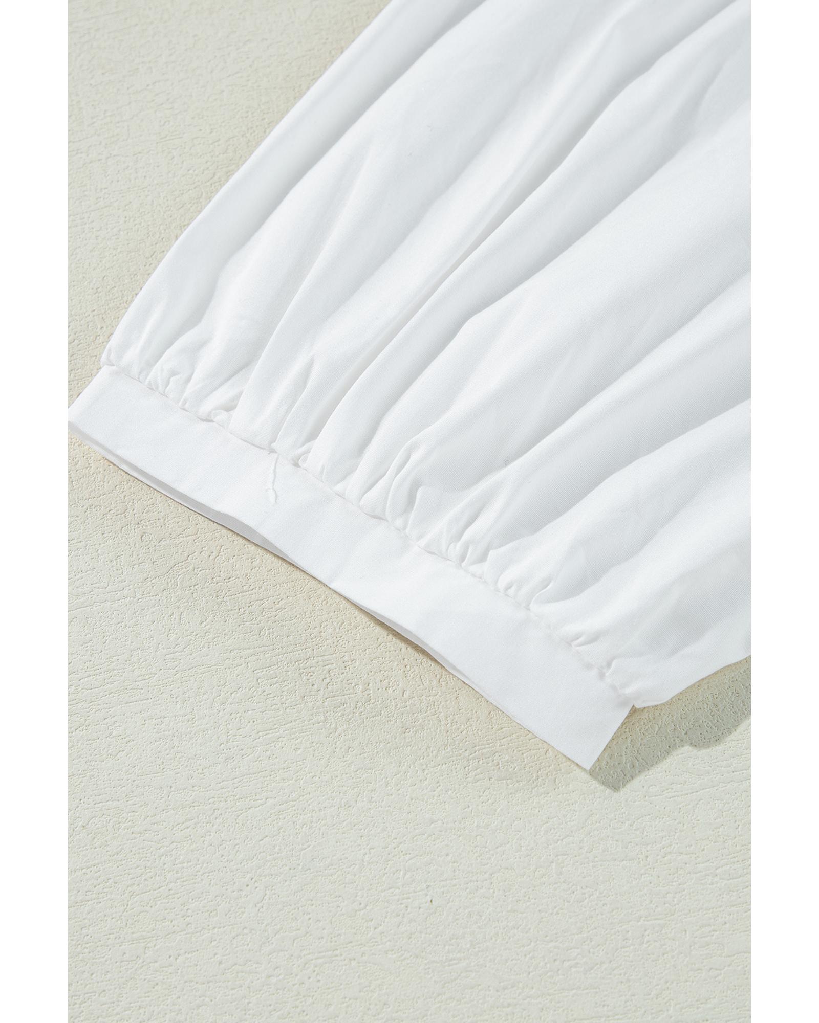 White Bow Knot Cutout Back Loose Fit 3/4 Sleeve Blouse – S