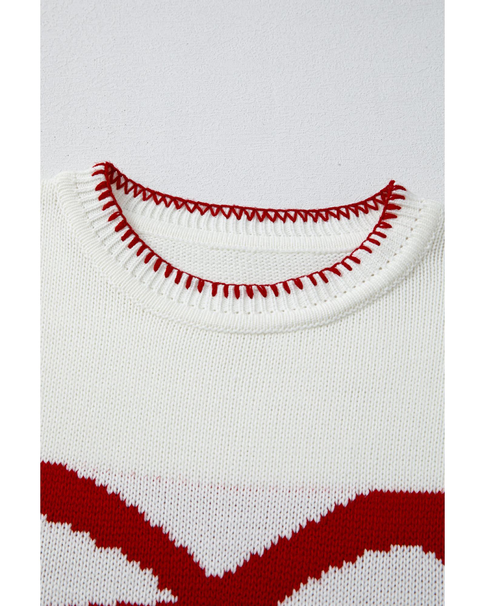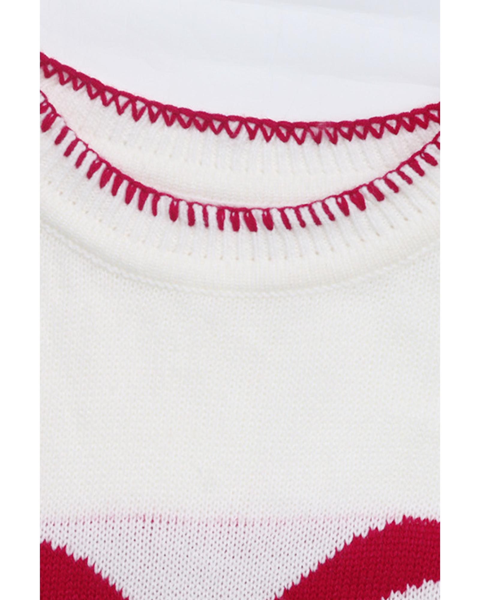 White Bow Pattern Contrast Trim Christmas Loose Graphic Sweater – L