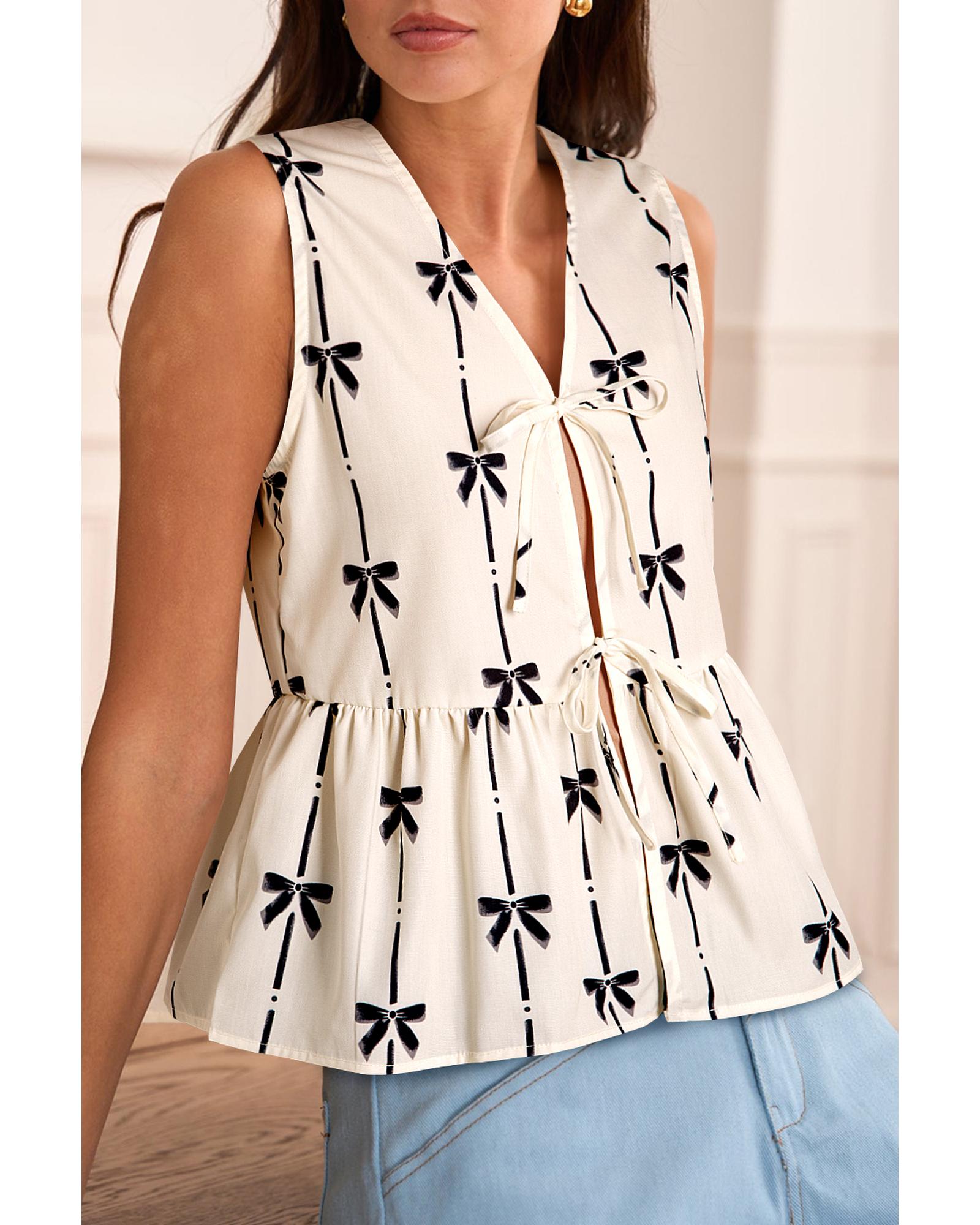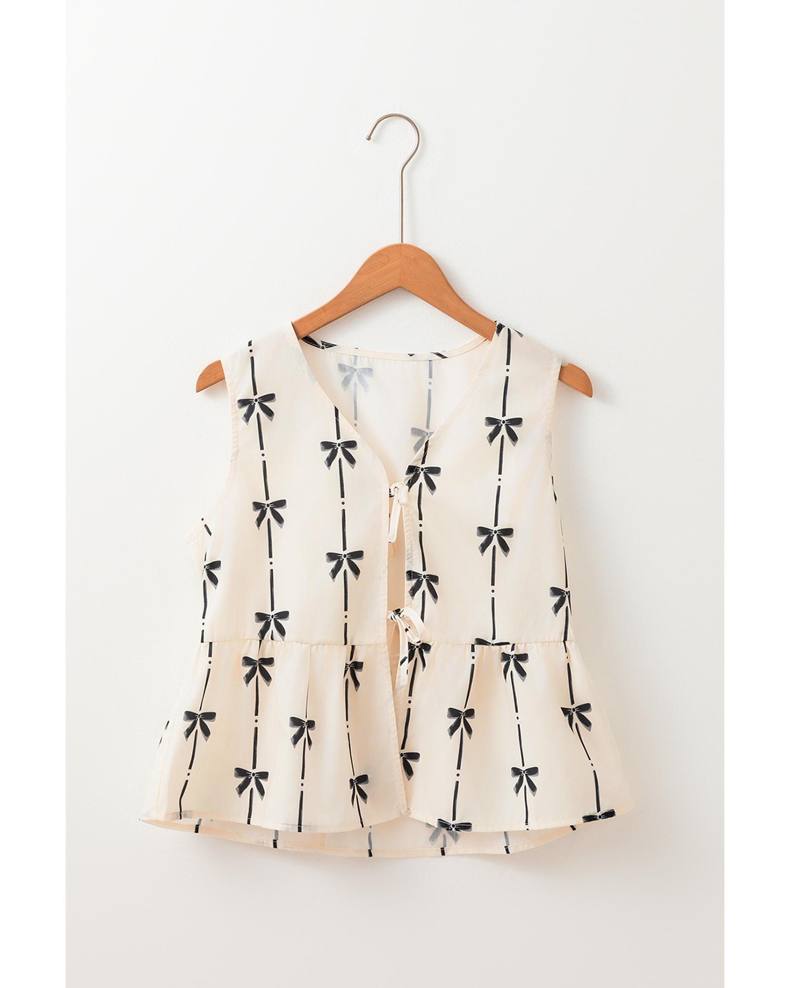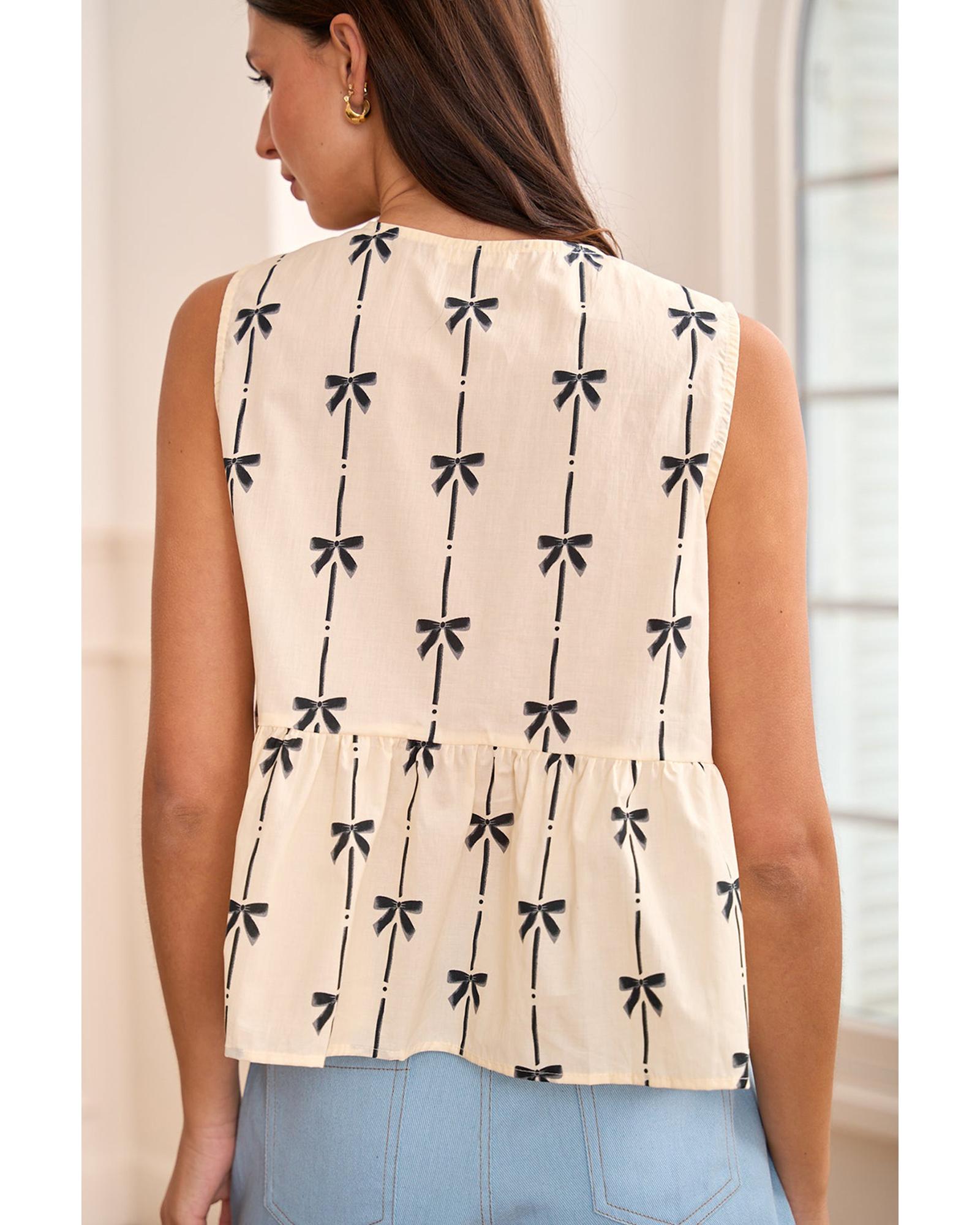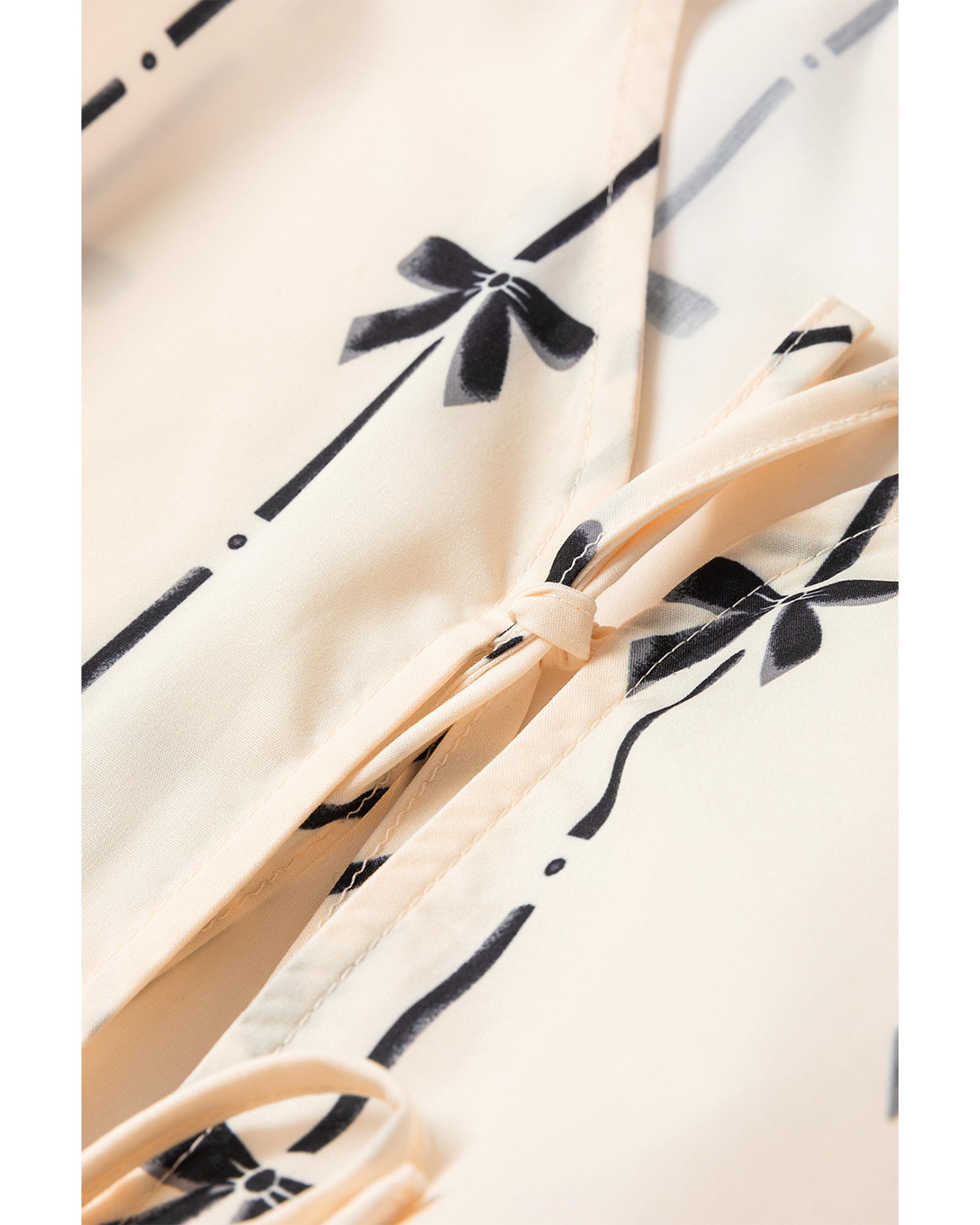 White Black Pipping Ribbon Bowtie Collared Ruffled Puff Sleeve Shirt - XL