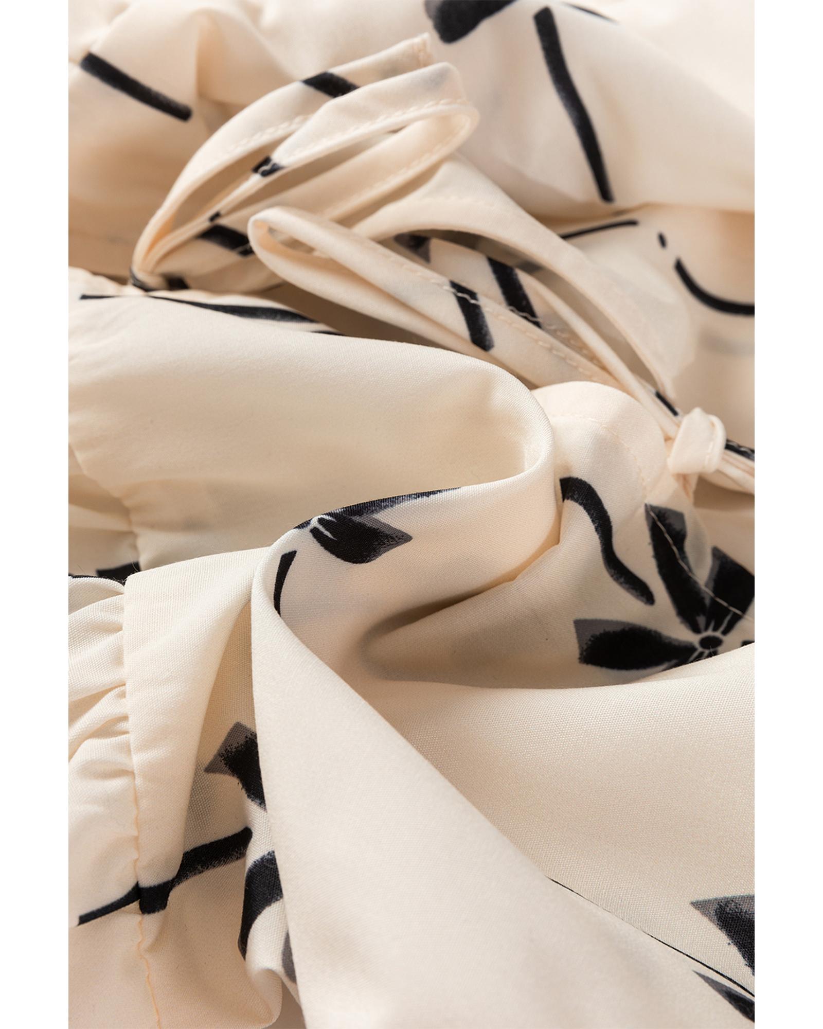 White Floral Print Balloon Sleeves Button Up Loose Casual Shirt - S