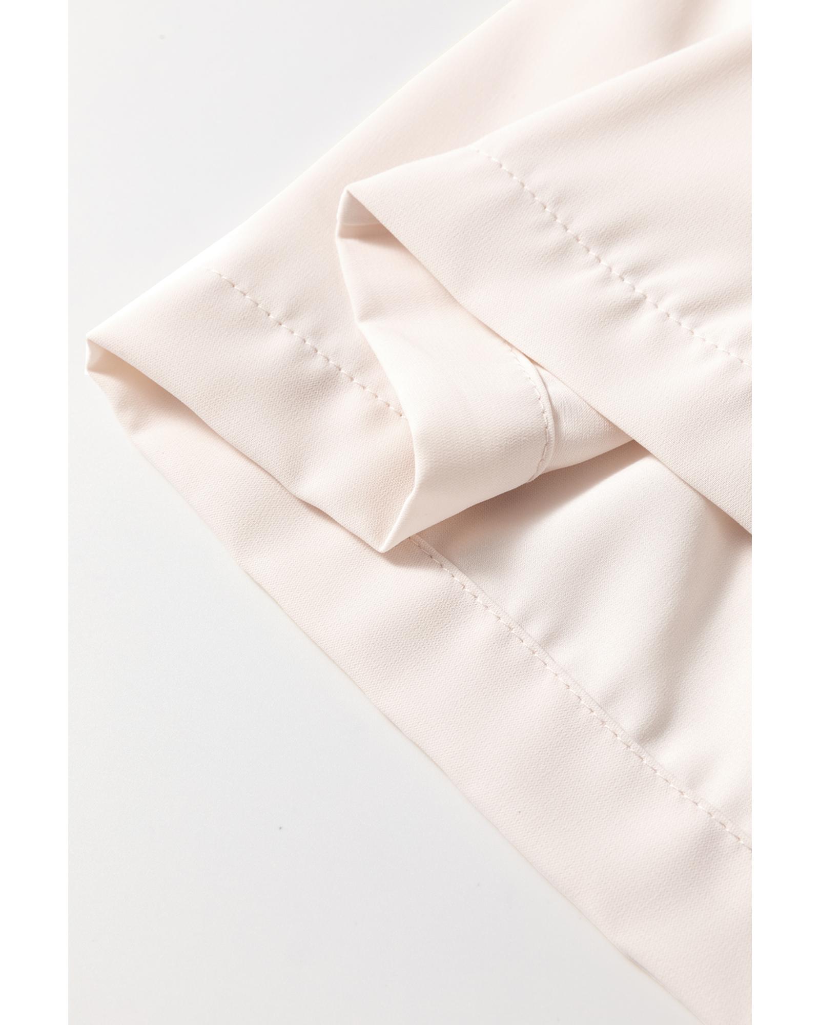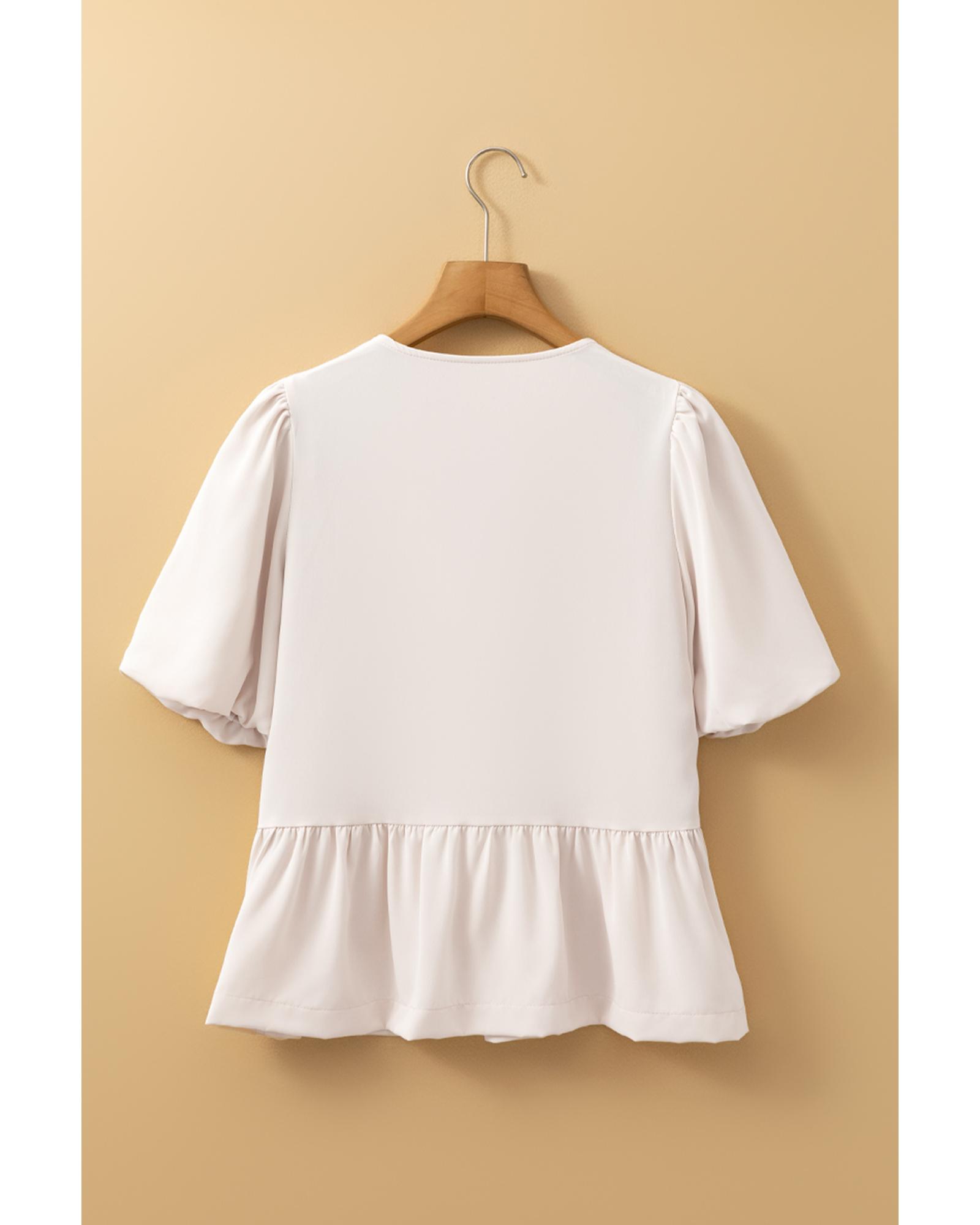 - White Bow Tie Short Puff Sleeve Ruffle Hem Blouse