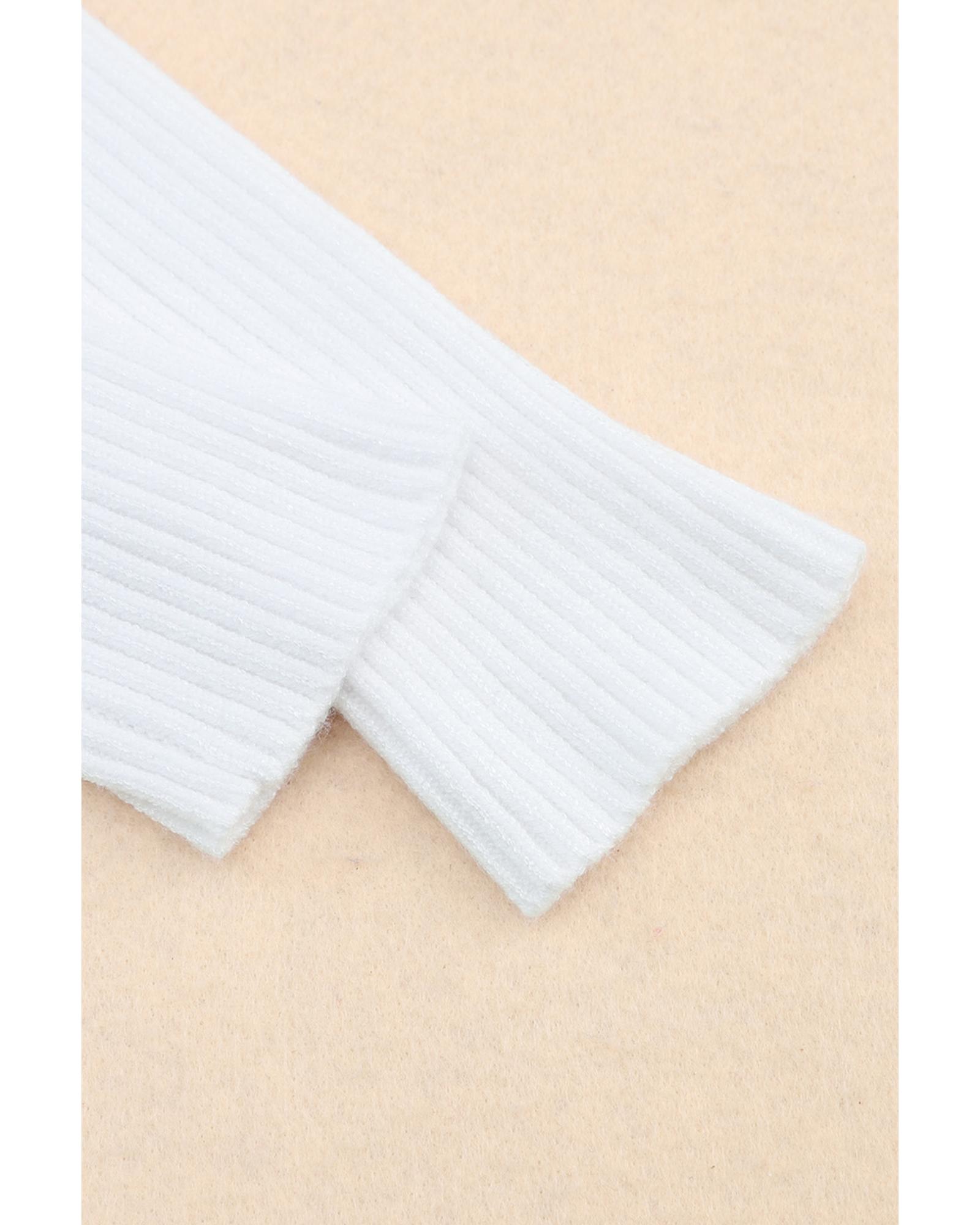 • White Cable Crossed V Neck Sweater