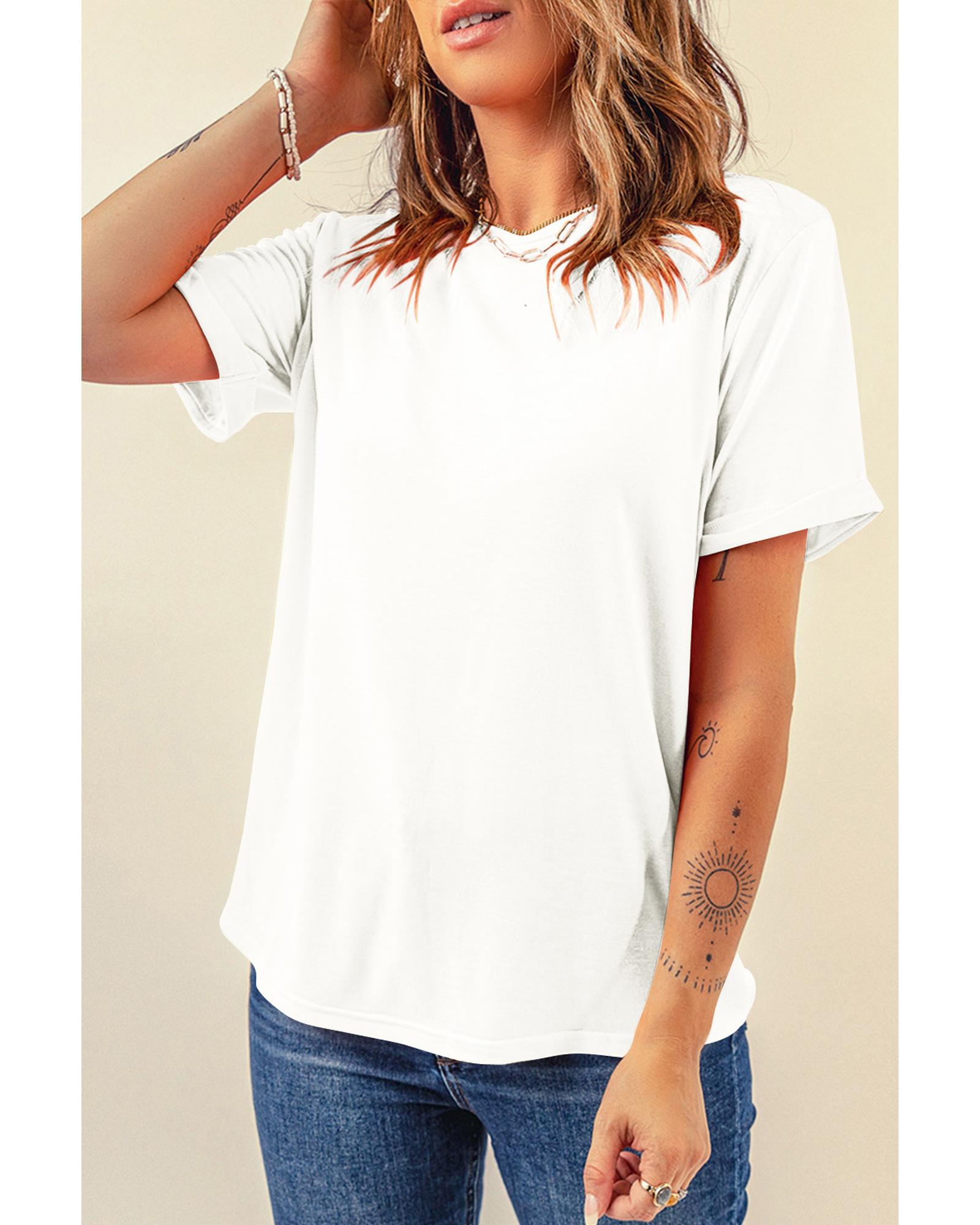 White Casual Plain Crew Neck Tee – 2XL