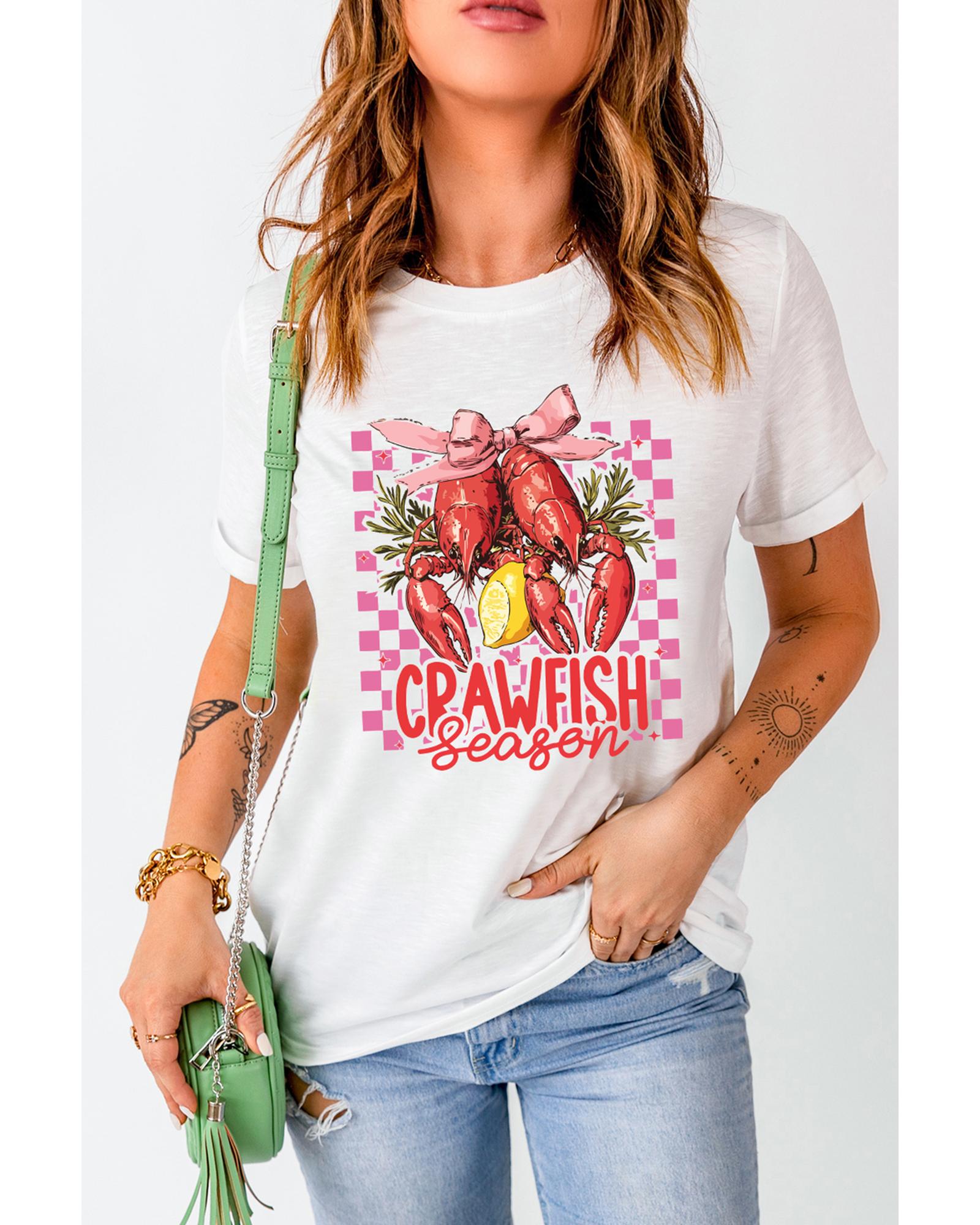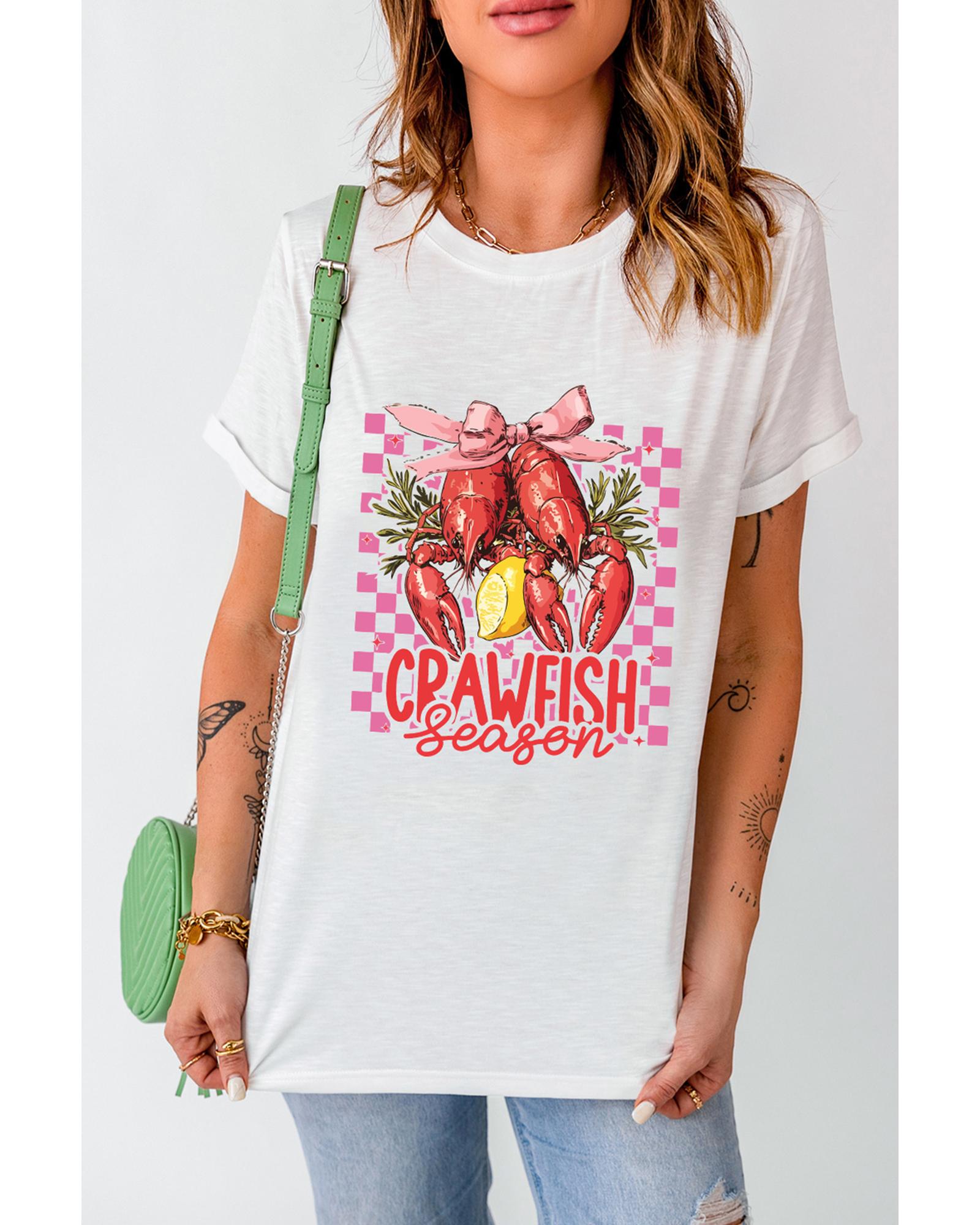White Checkerboard Bow Crawfish Season Printed Crewneck T Shirt – M