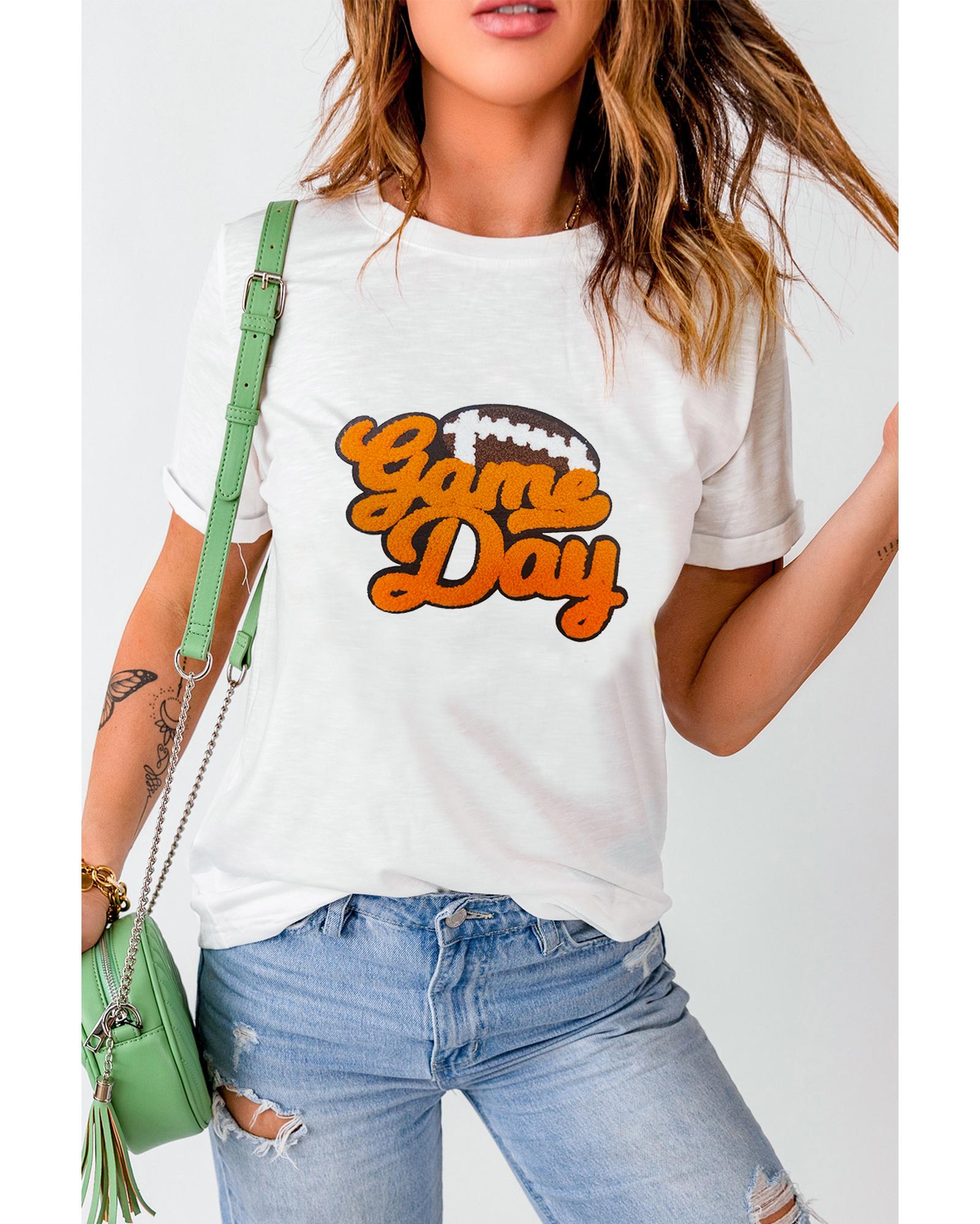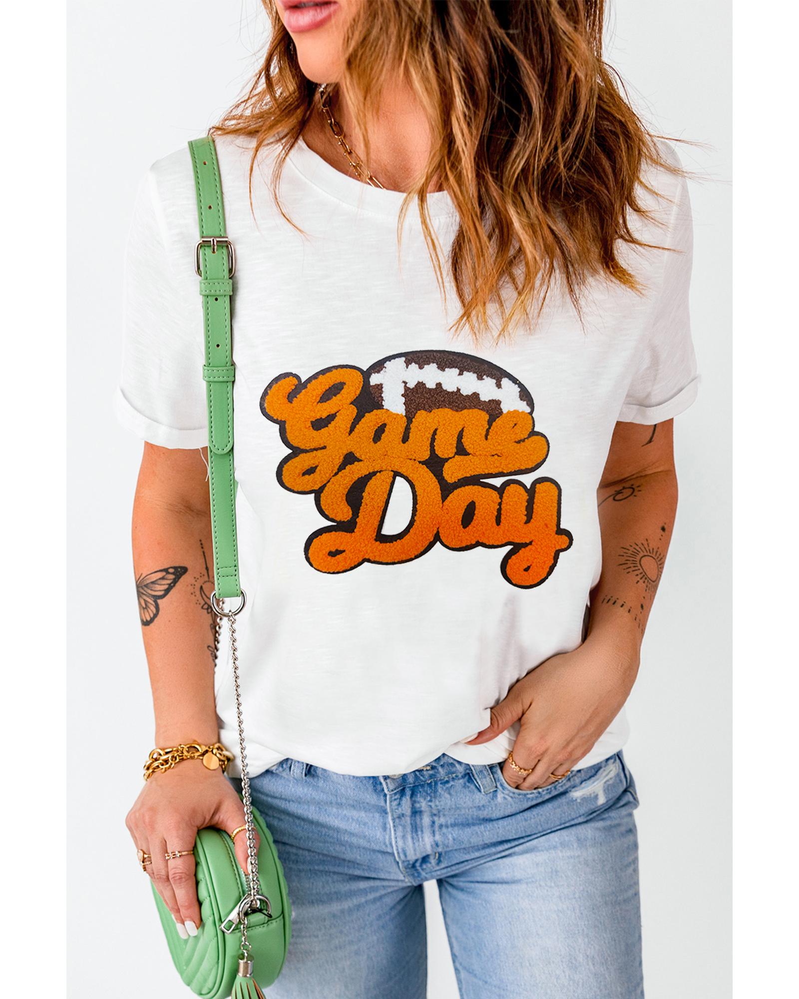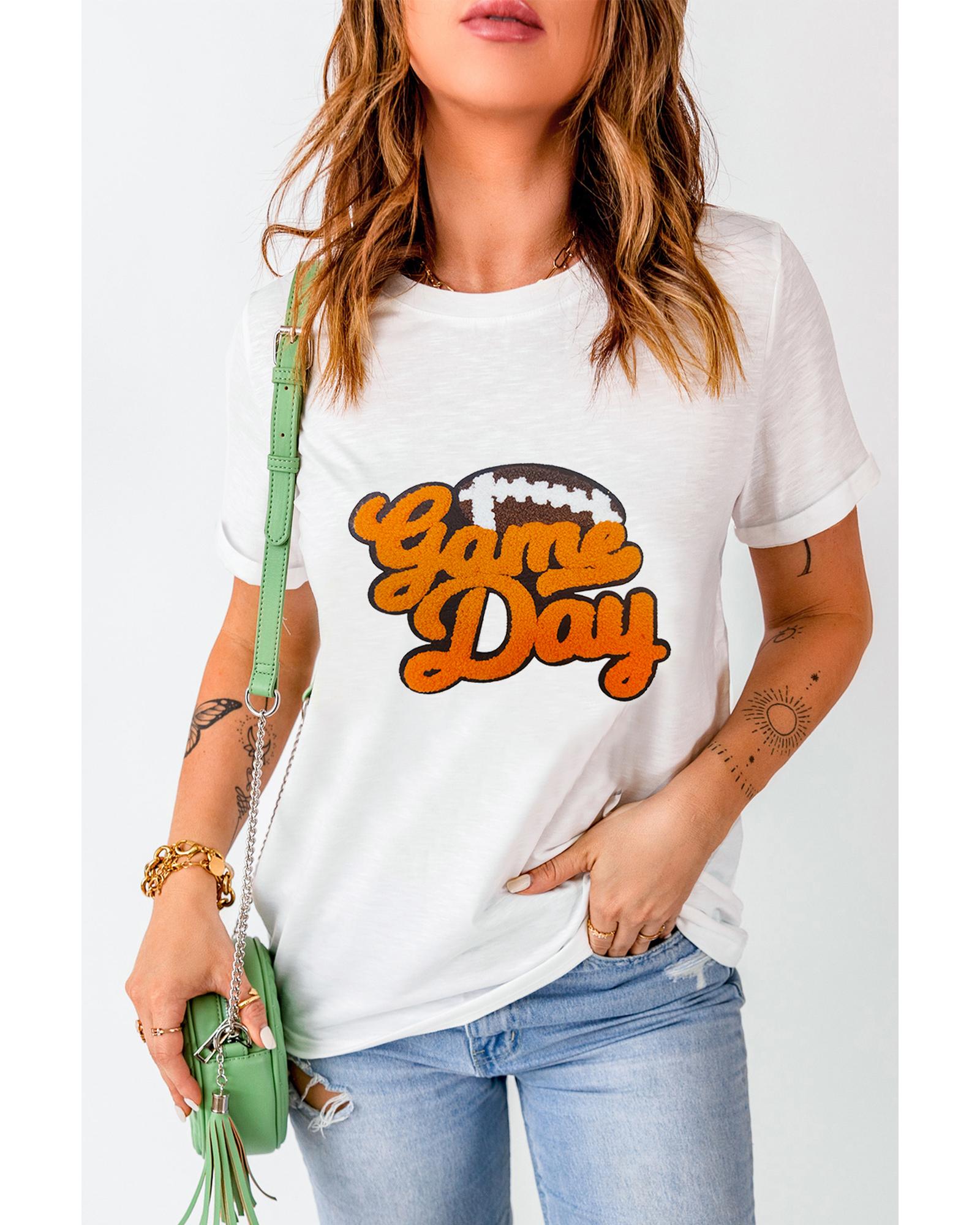 White Chenille Game Day Rugby Football Pattern Crewneck T Shirt – XL