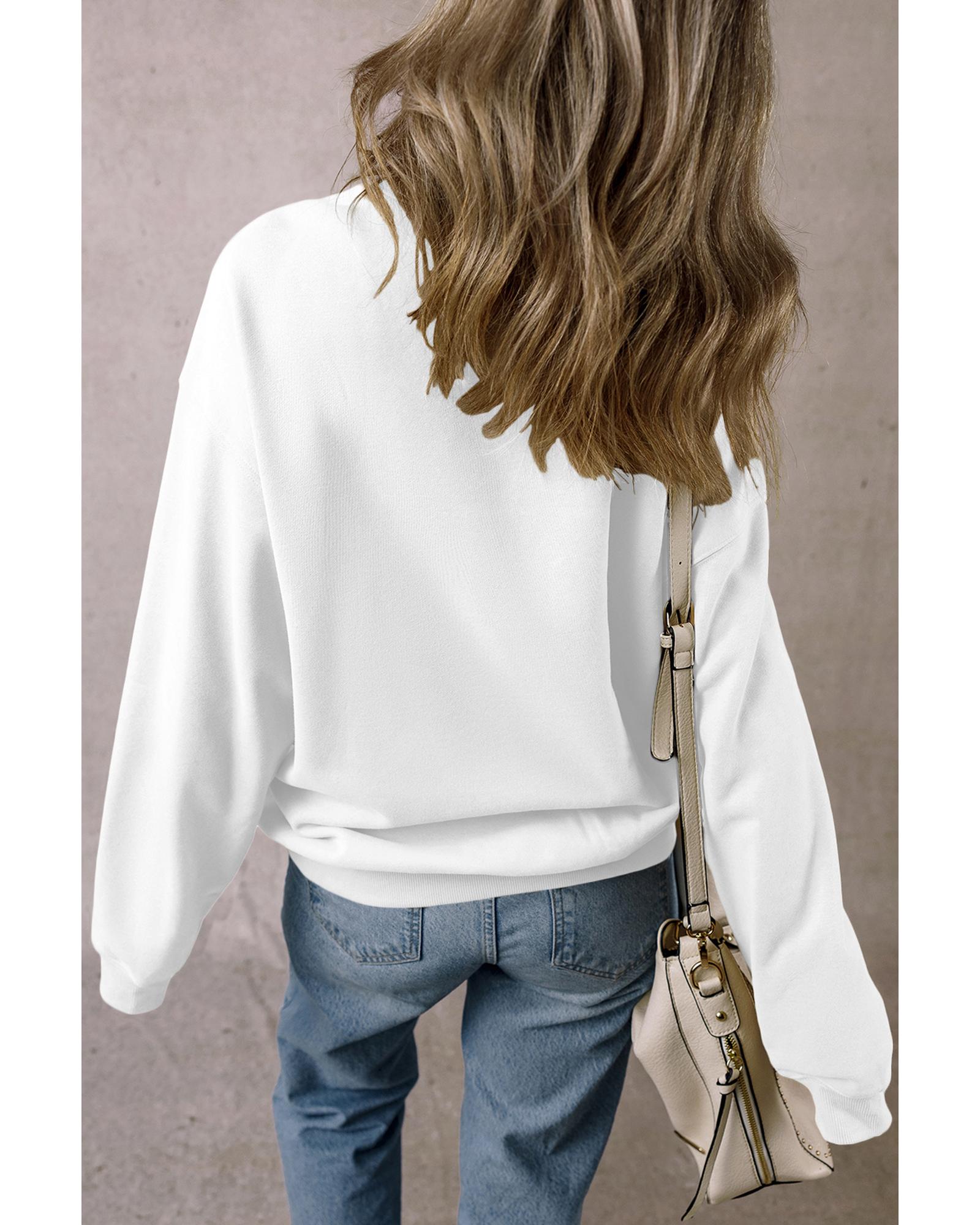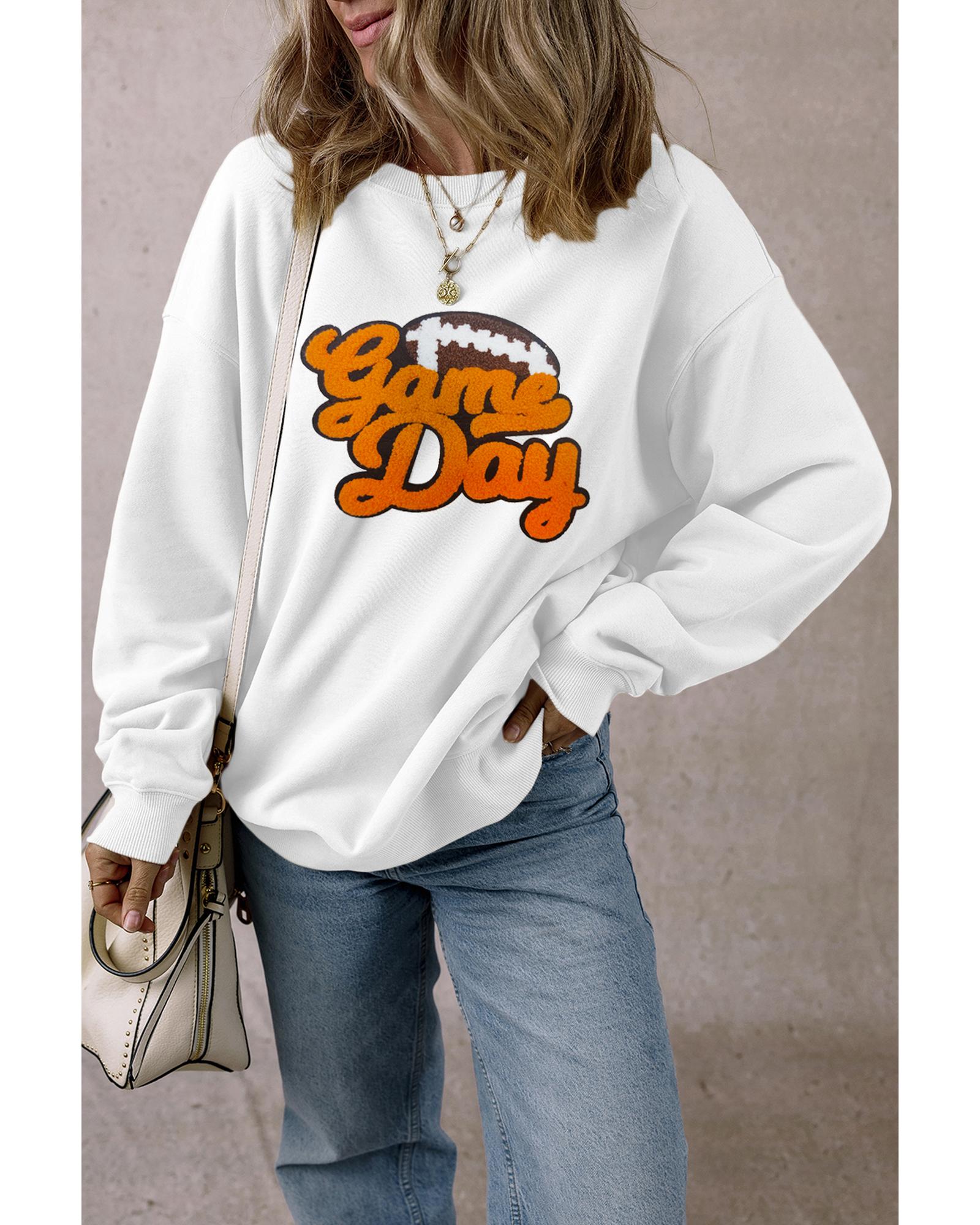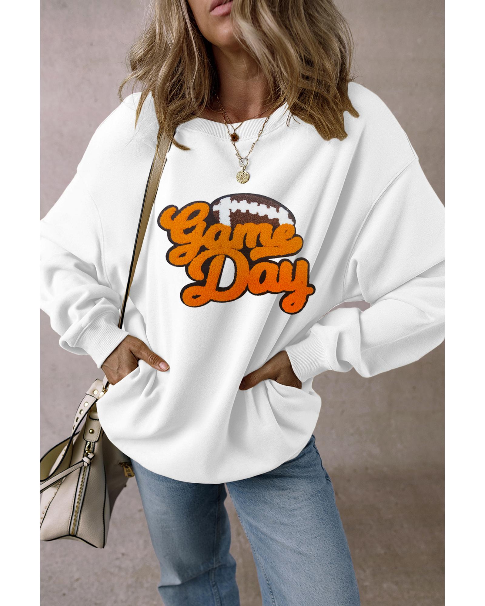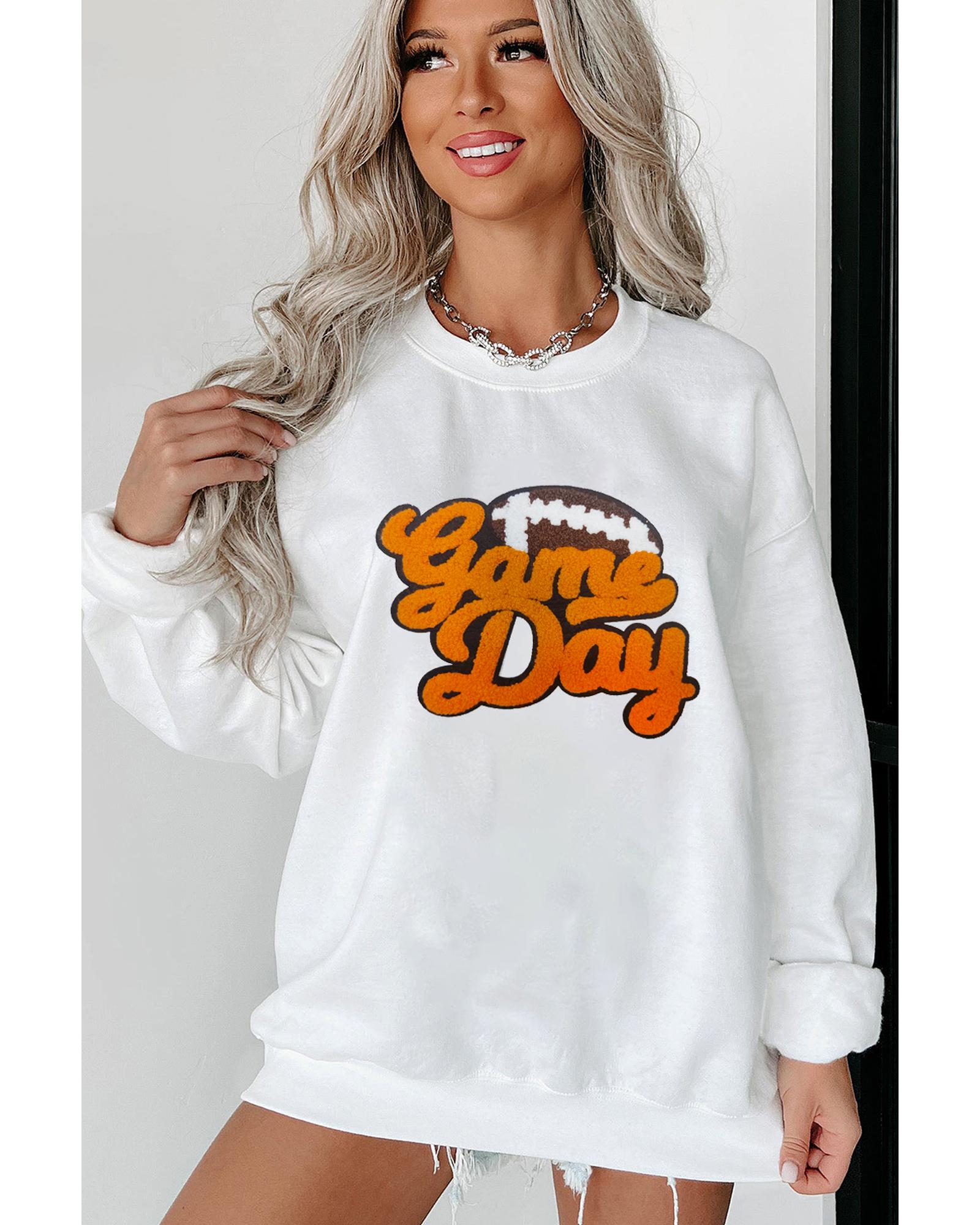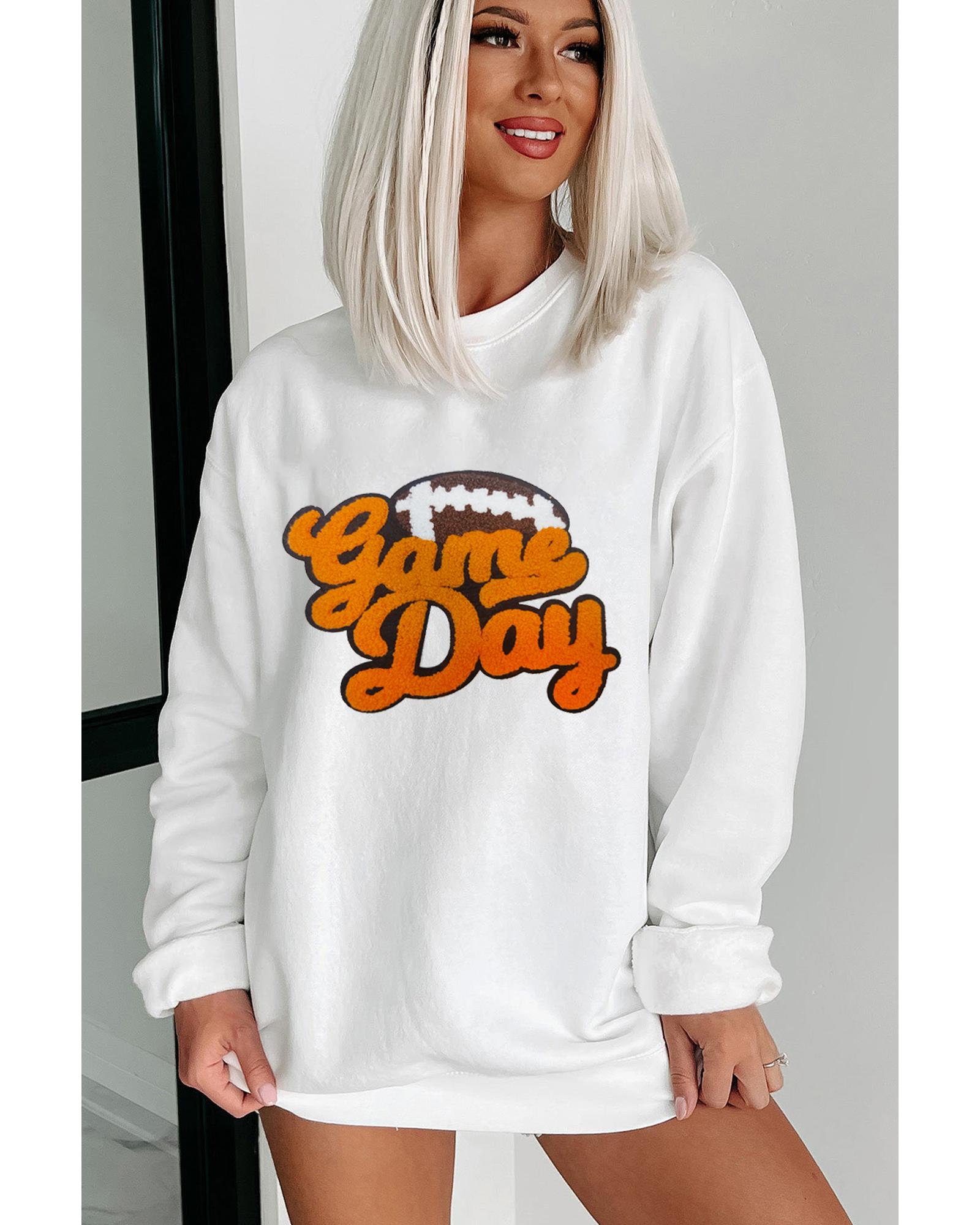 White Chenille Game Day Rugby Football Pattern Pullover Sweatshirt – M