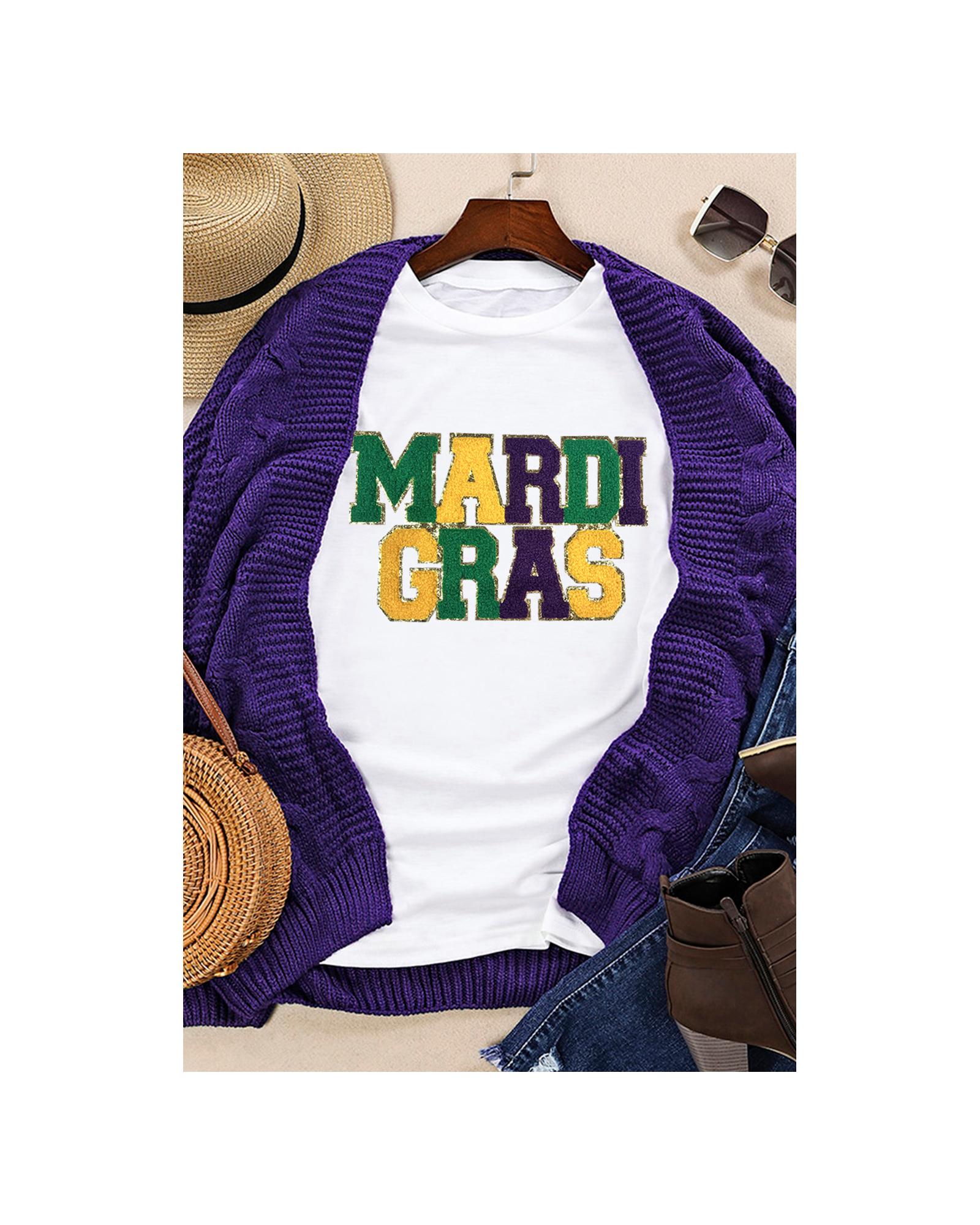 - White Chenille MARDI GRAS Patched Graphic T