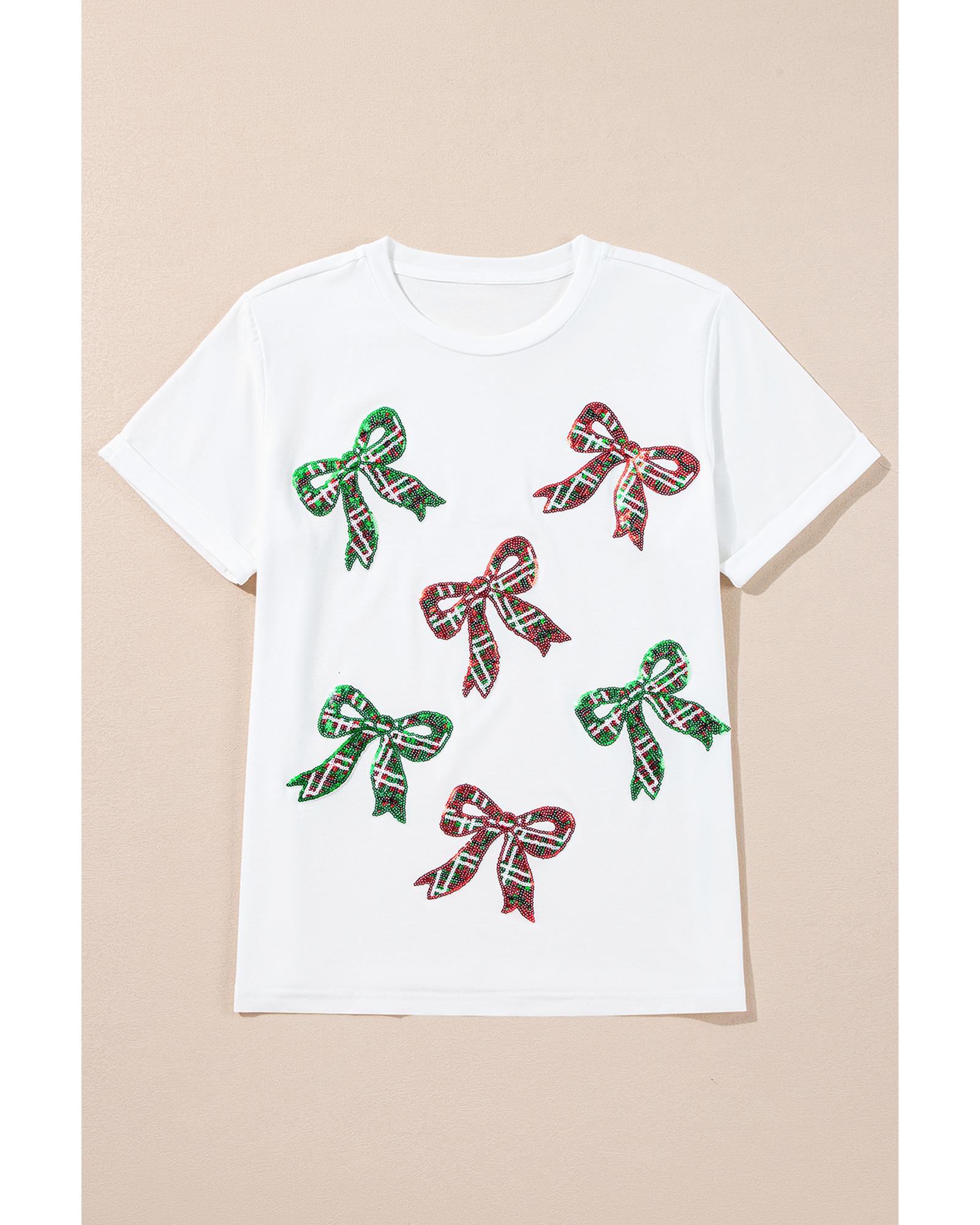 White Christmas Bowknot Graphic Cotton Blend T Shirt – 3XL