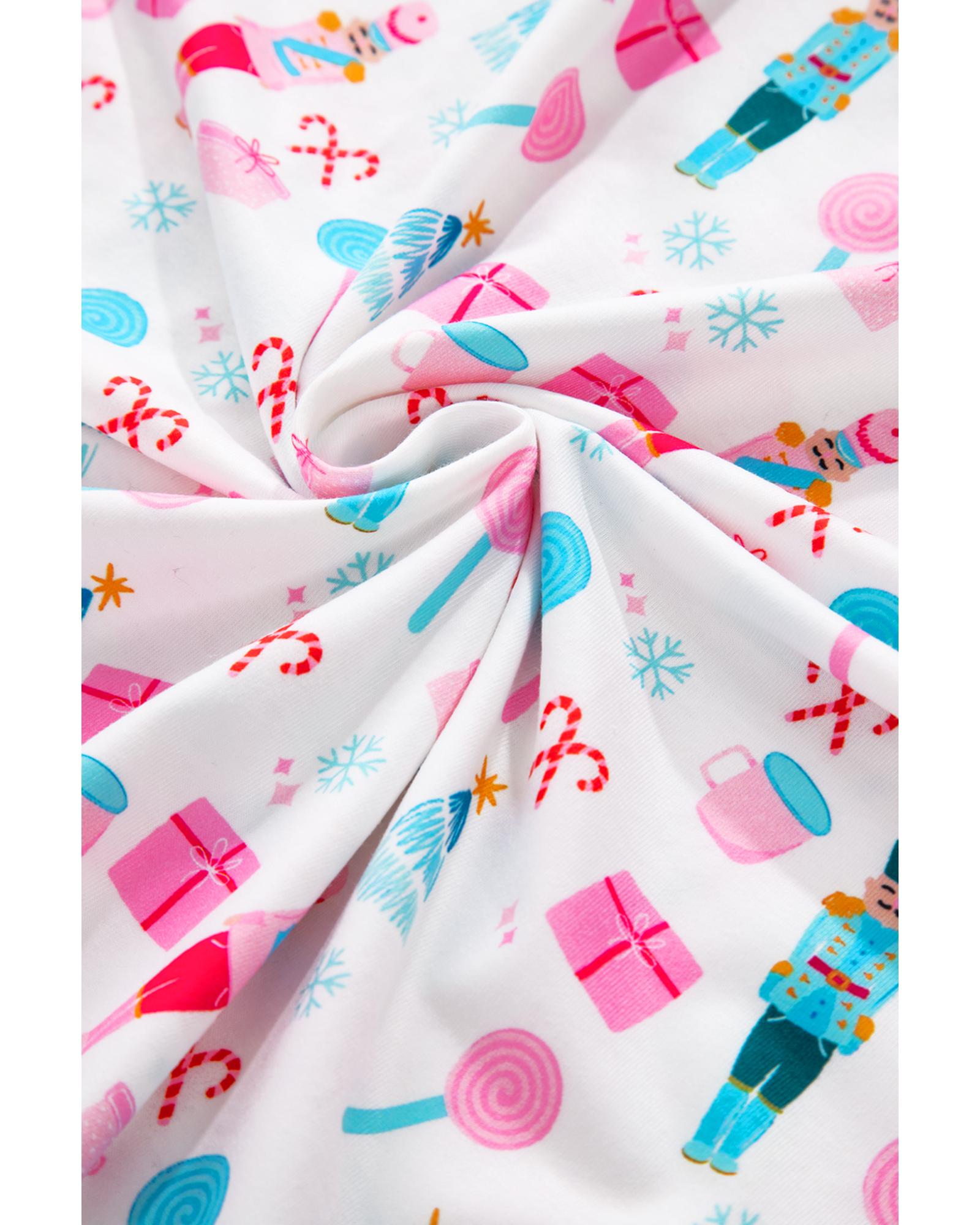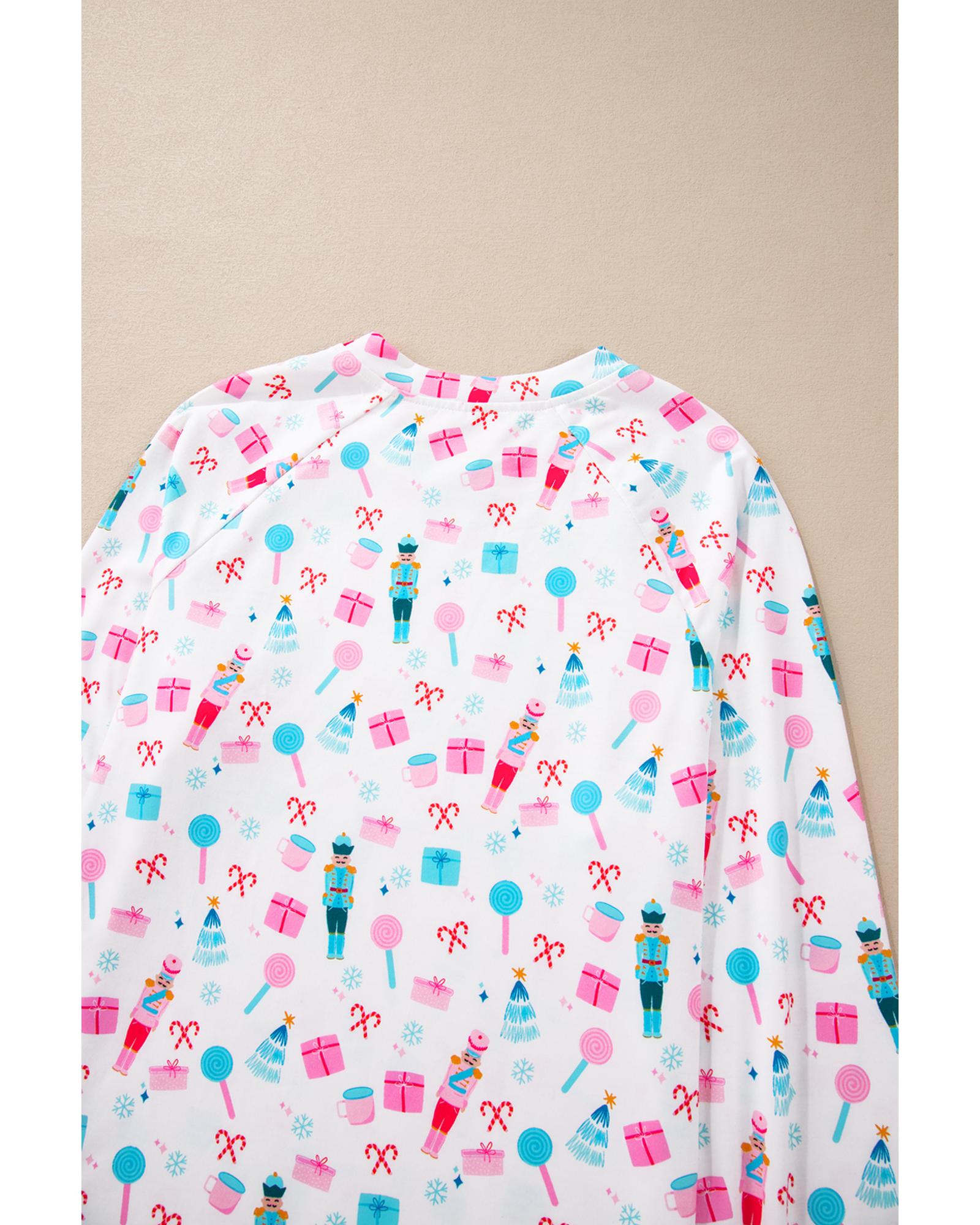 White Christmas Pattern Long Sleeve Top and Wide Leg Pants Set – XL