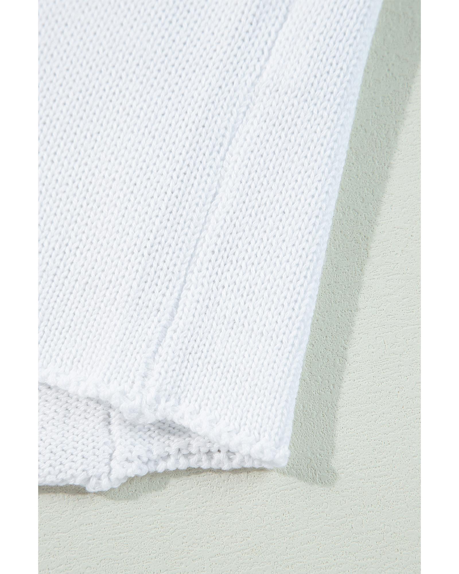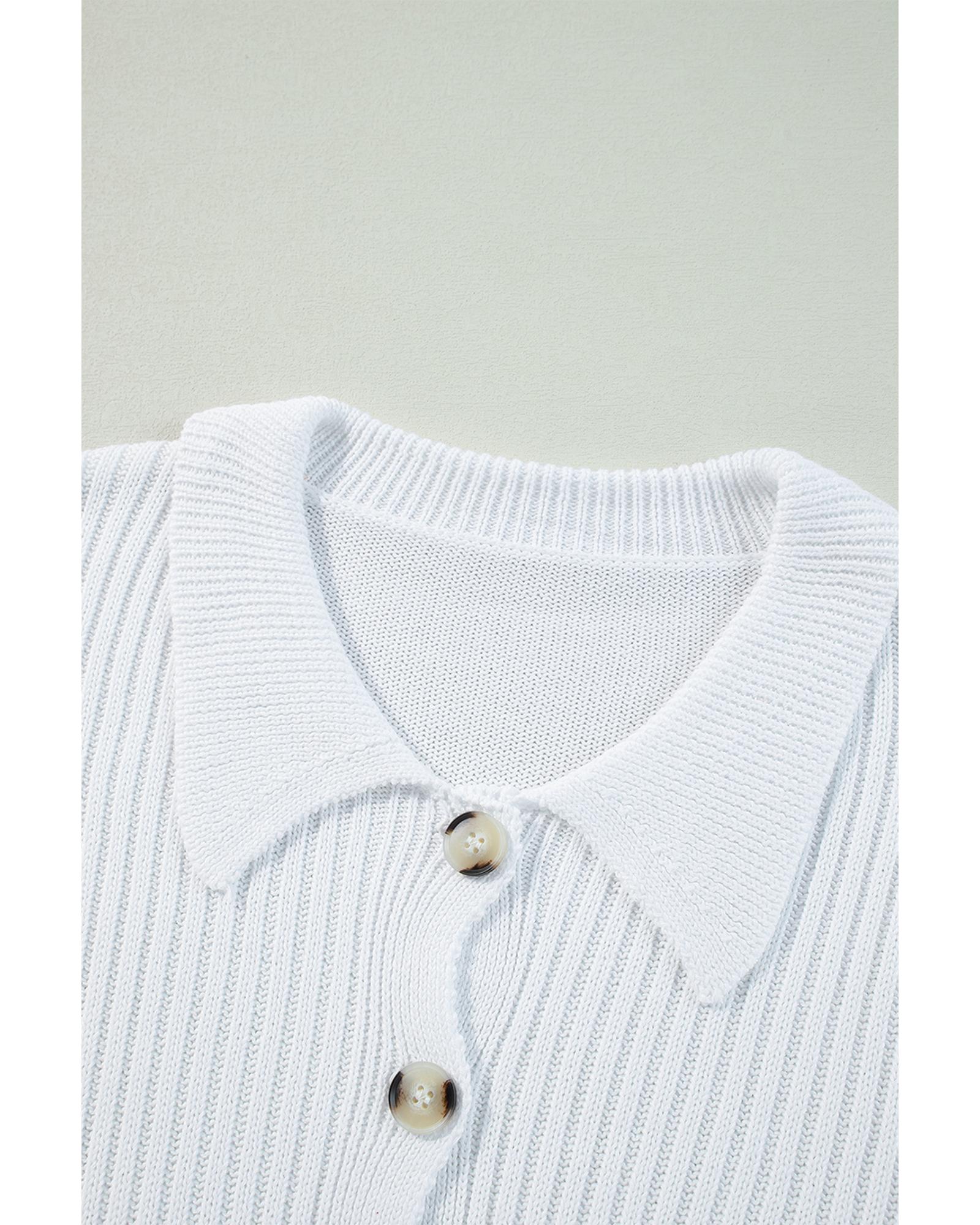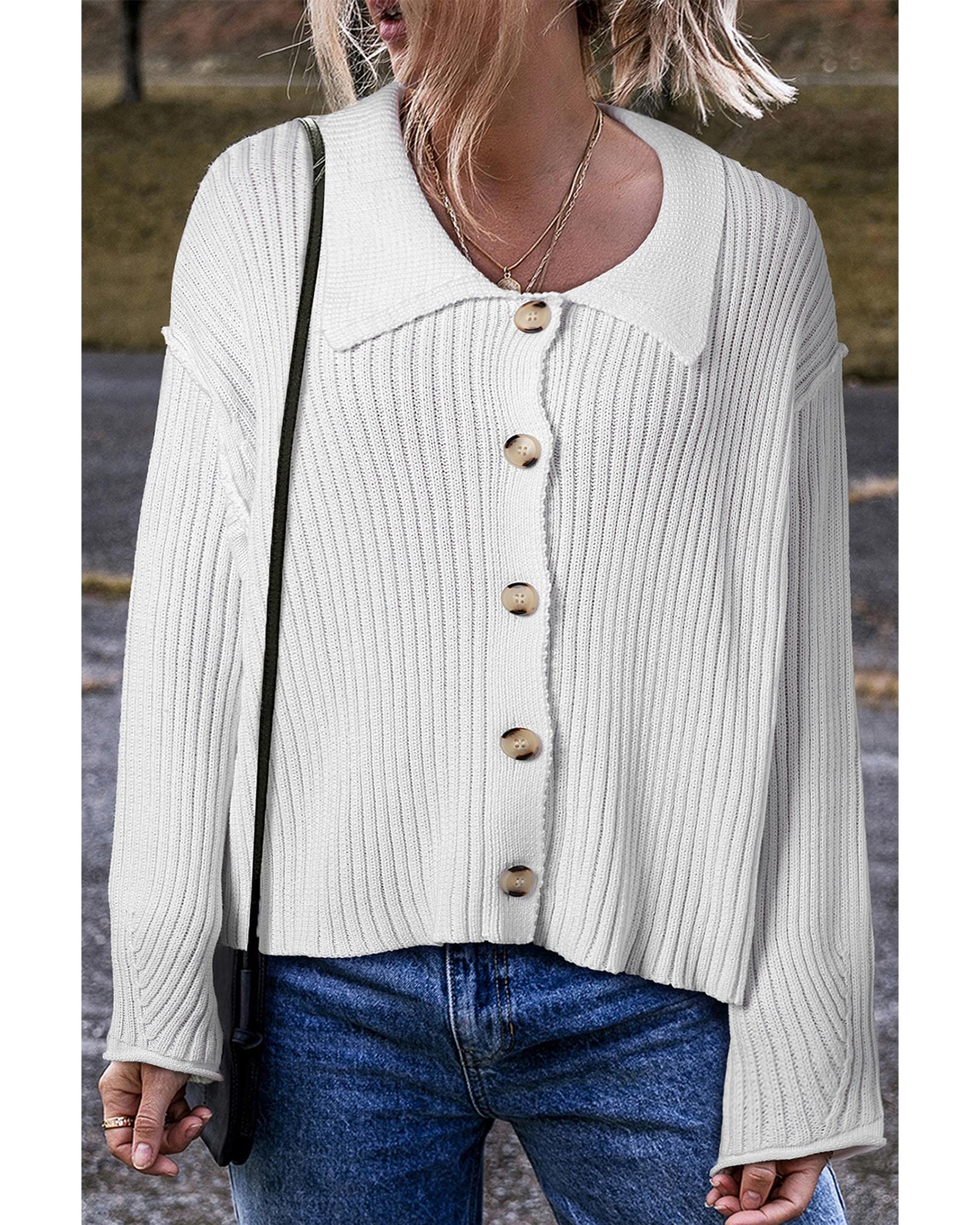 White Collared Button-up Loose Fit Casual Sweater – M