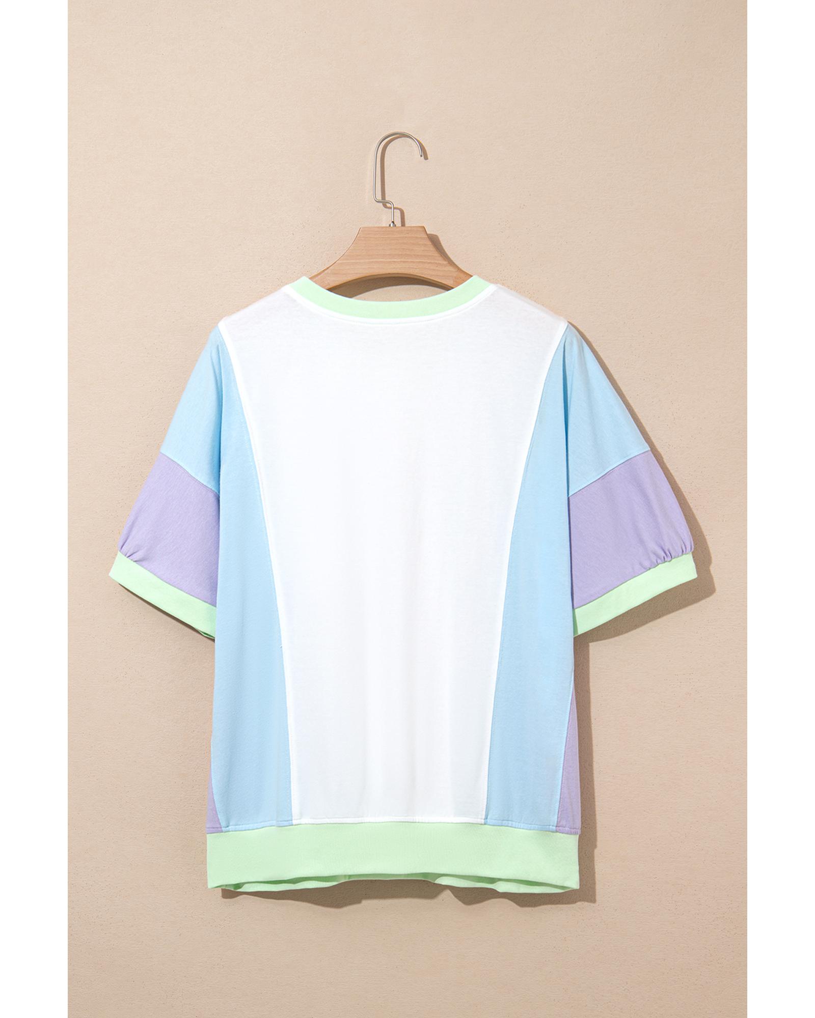White Color Block Patchwork Half Sleeve Oversized T Shirt – L