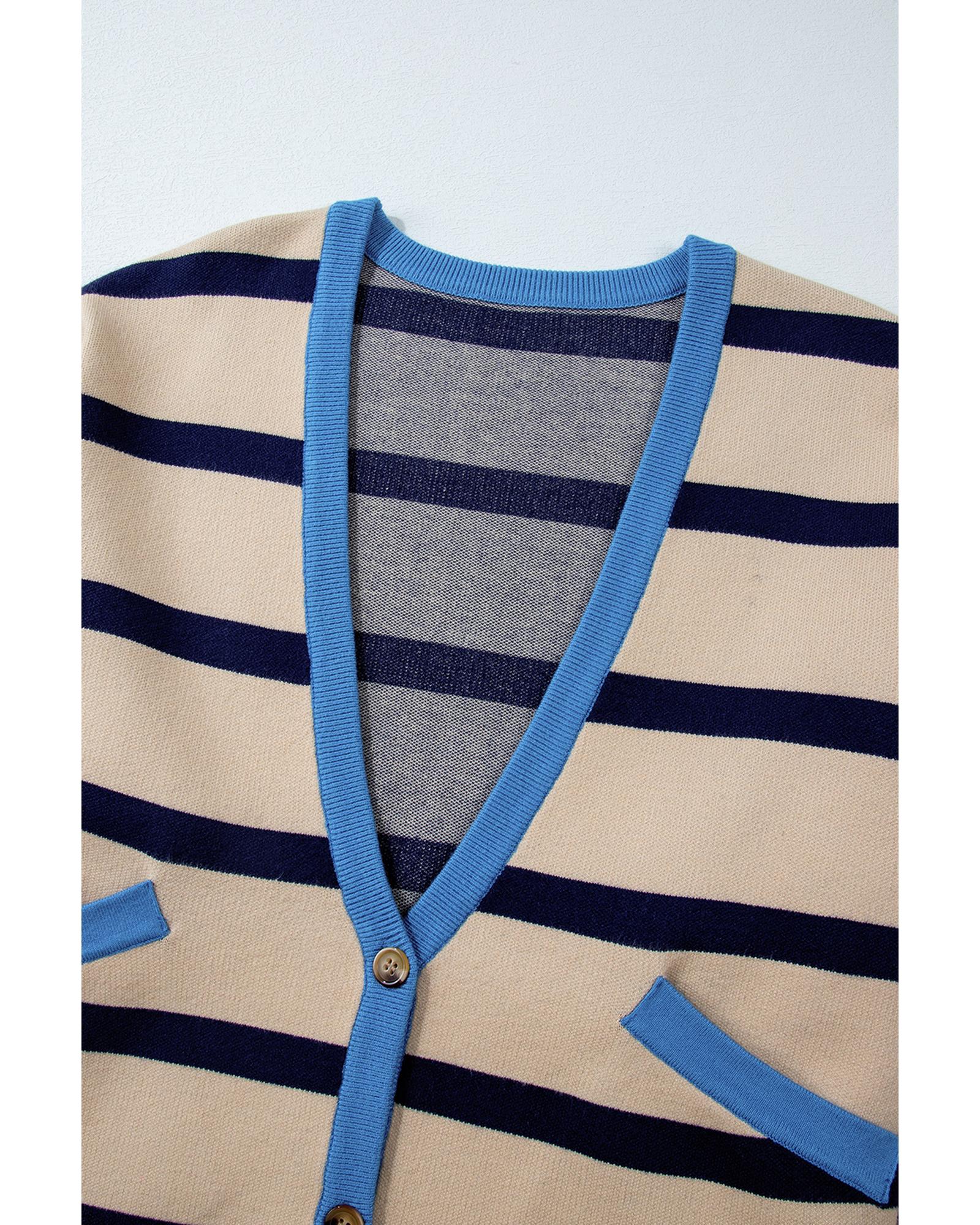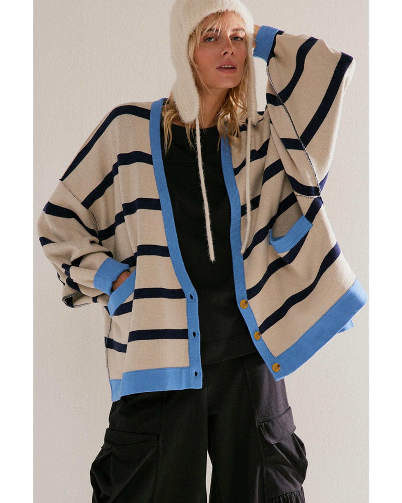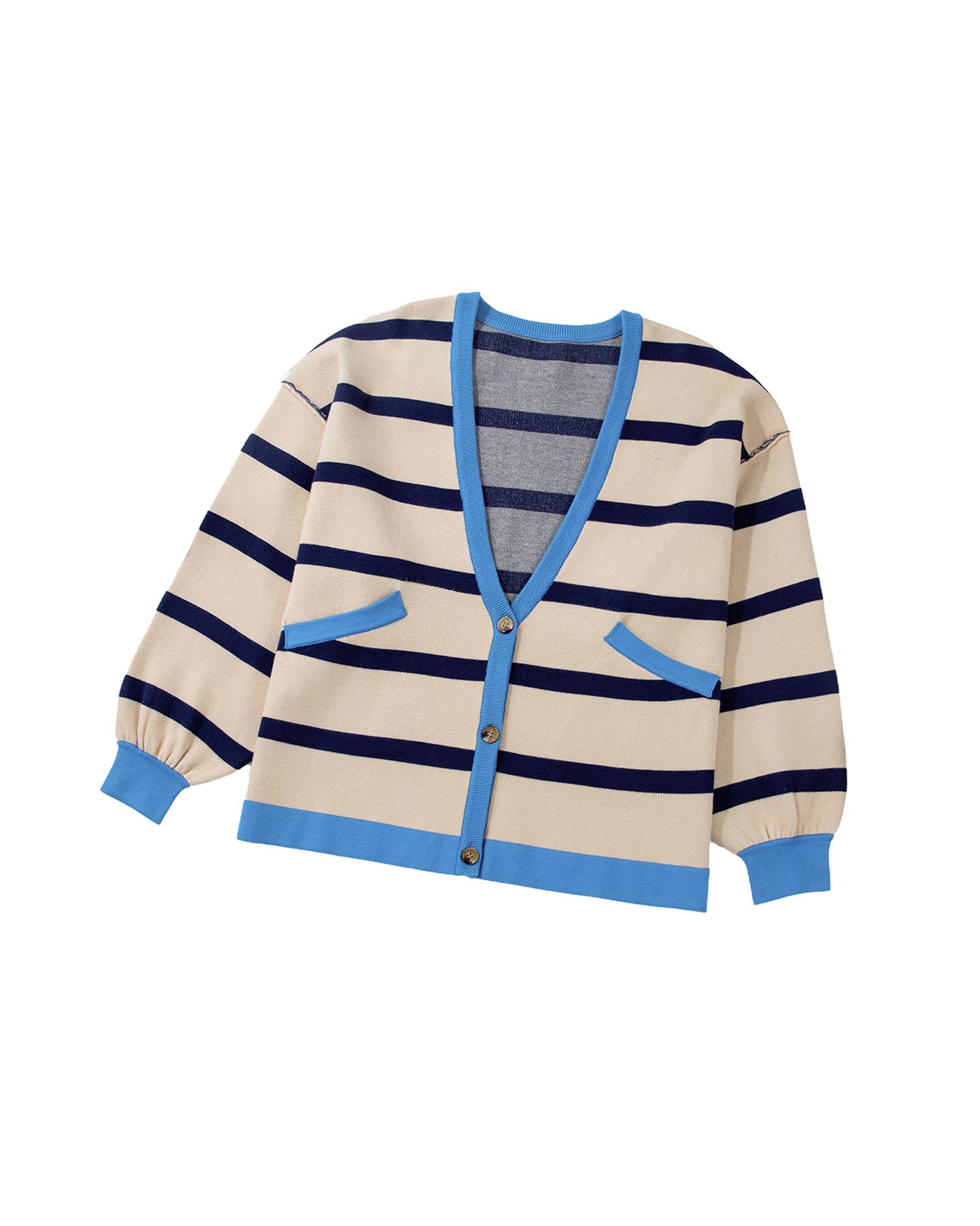 White Colorblock Drop Shoulder Buttoned Loose Cardigan – M