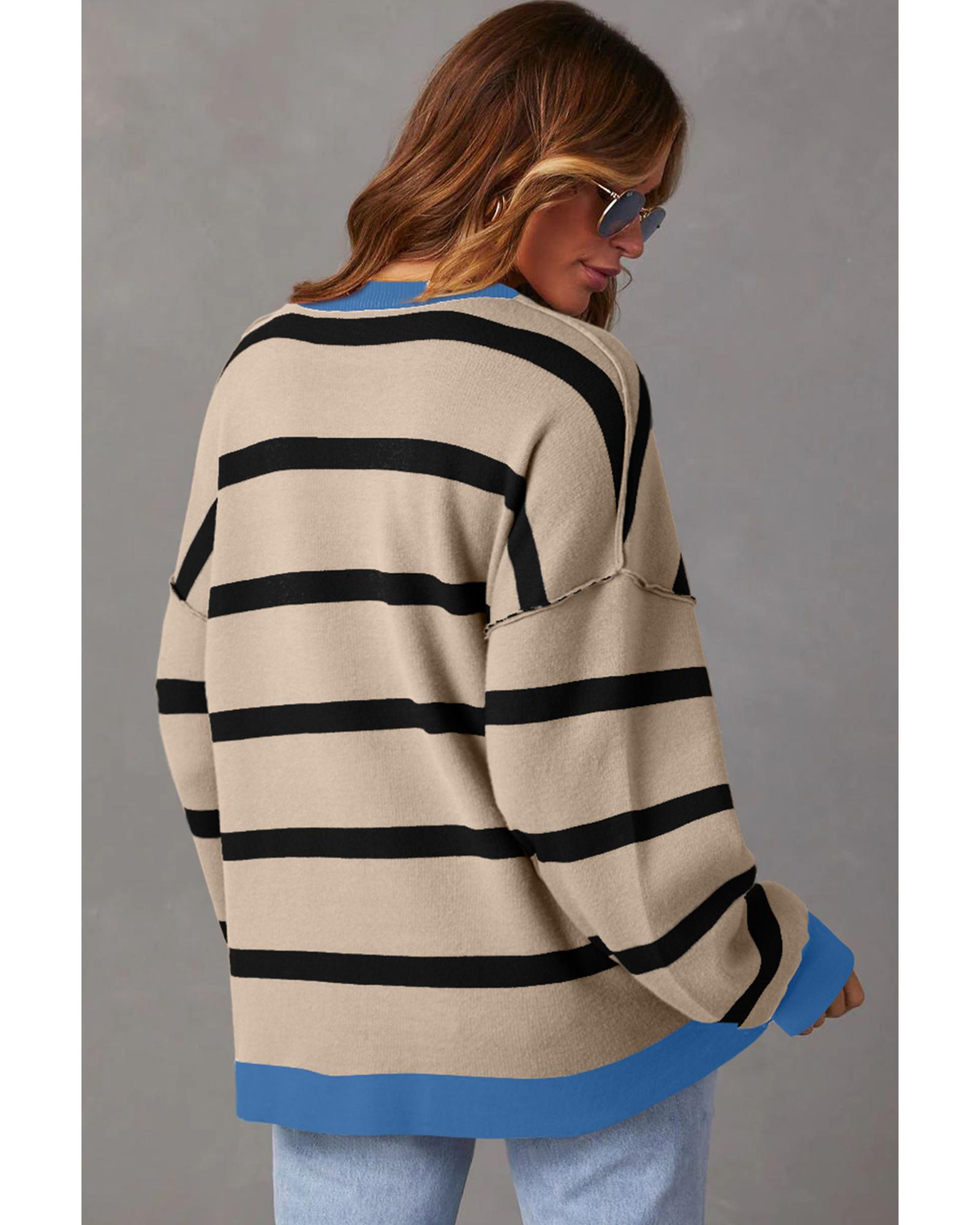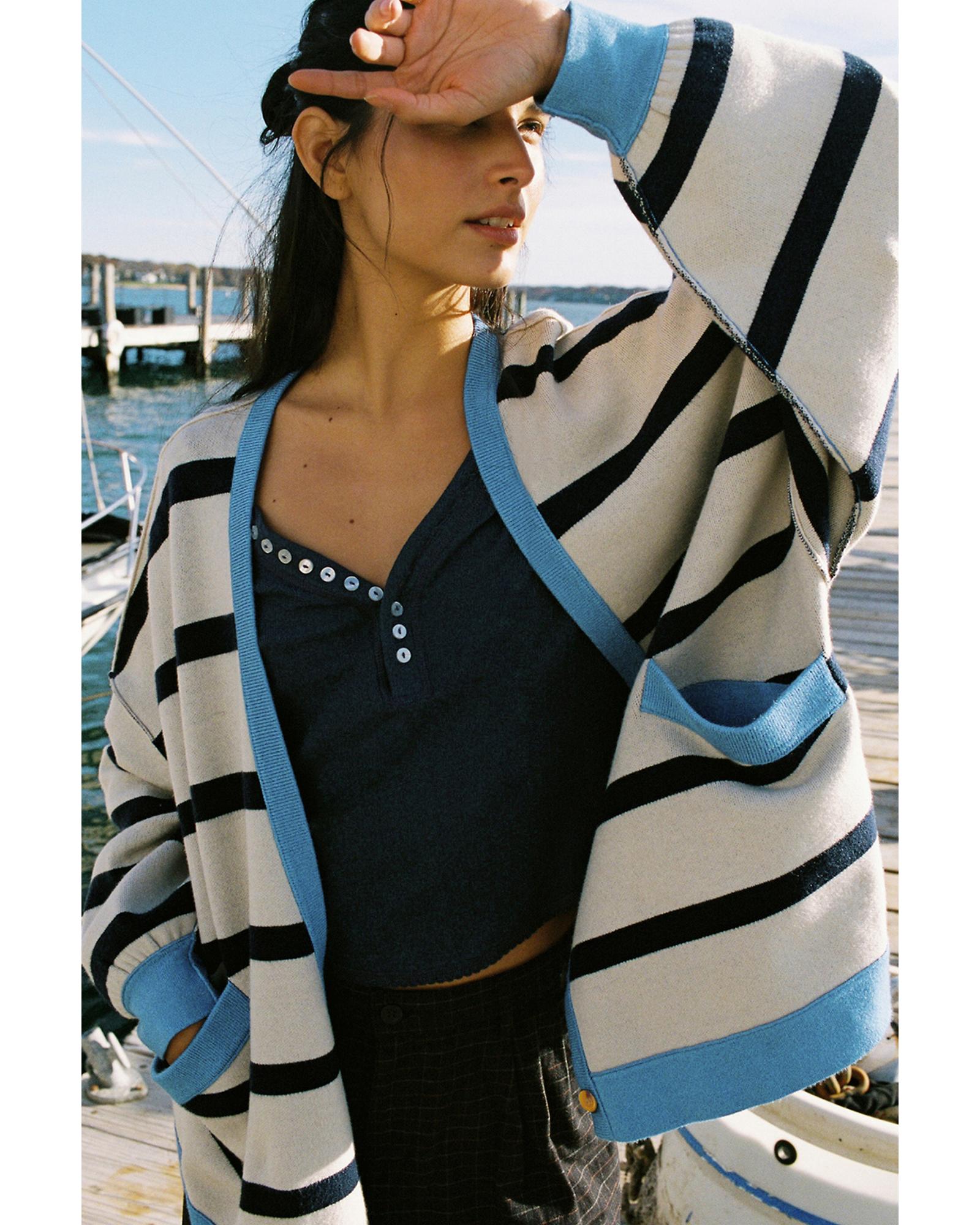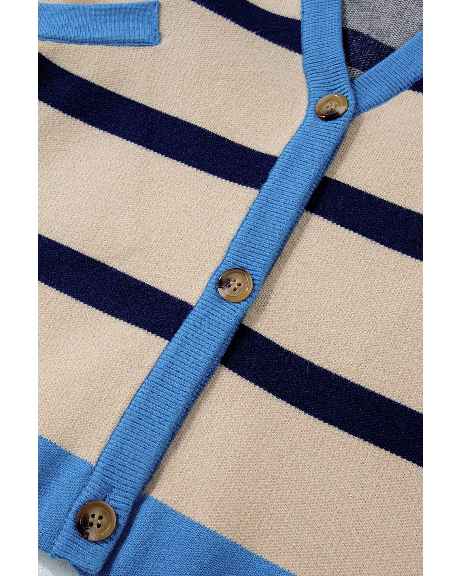 White Colorblock Drop Shoulder Buttoned Loose Cardigan – M