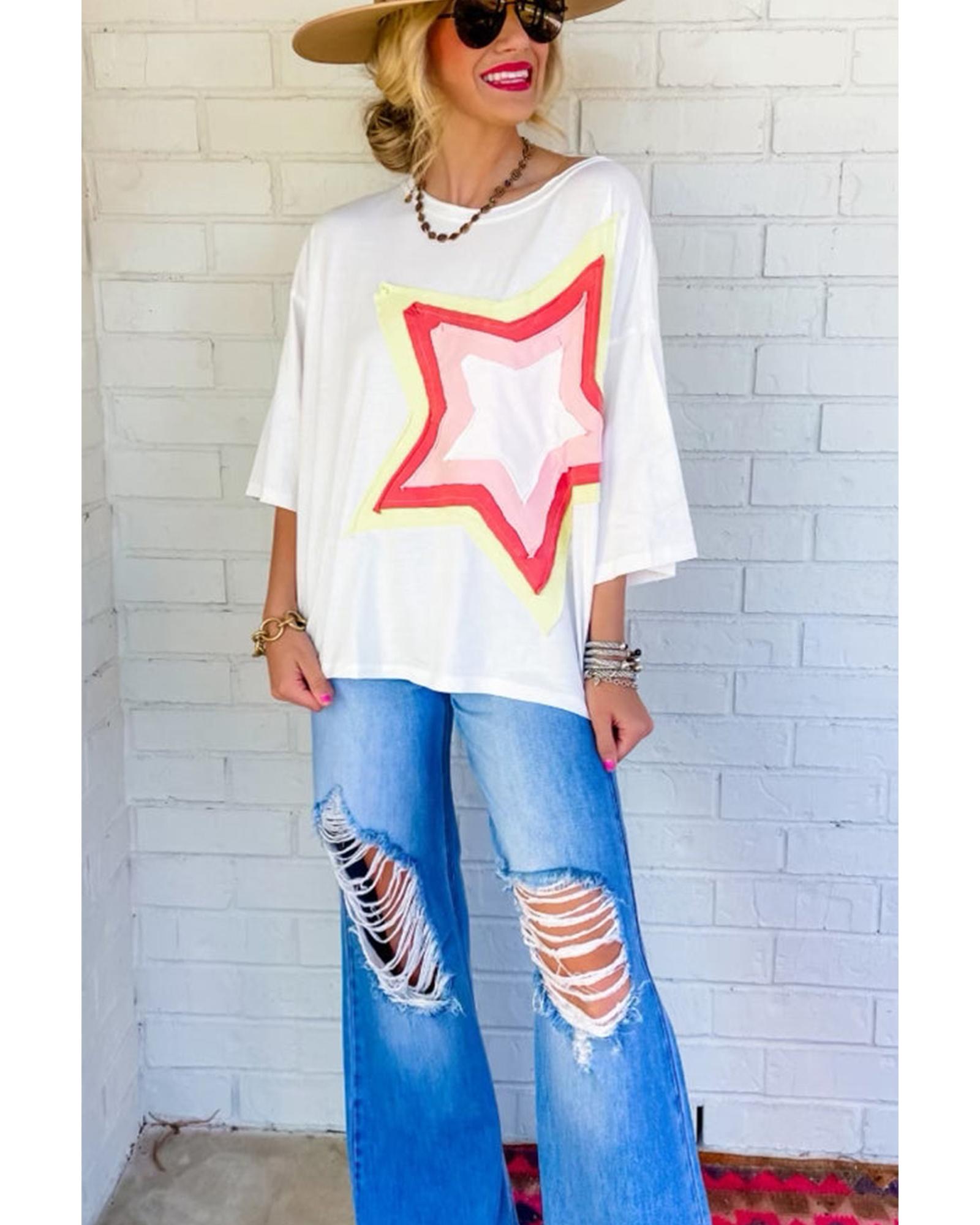 White Colorblock Star Patched Half Sleeve Oversized Tee – XL