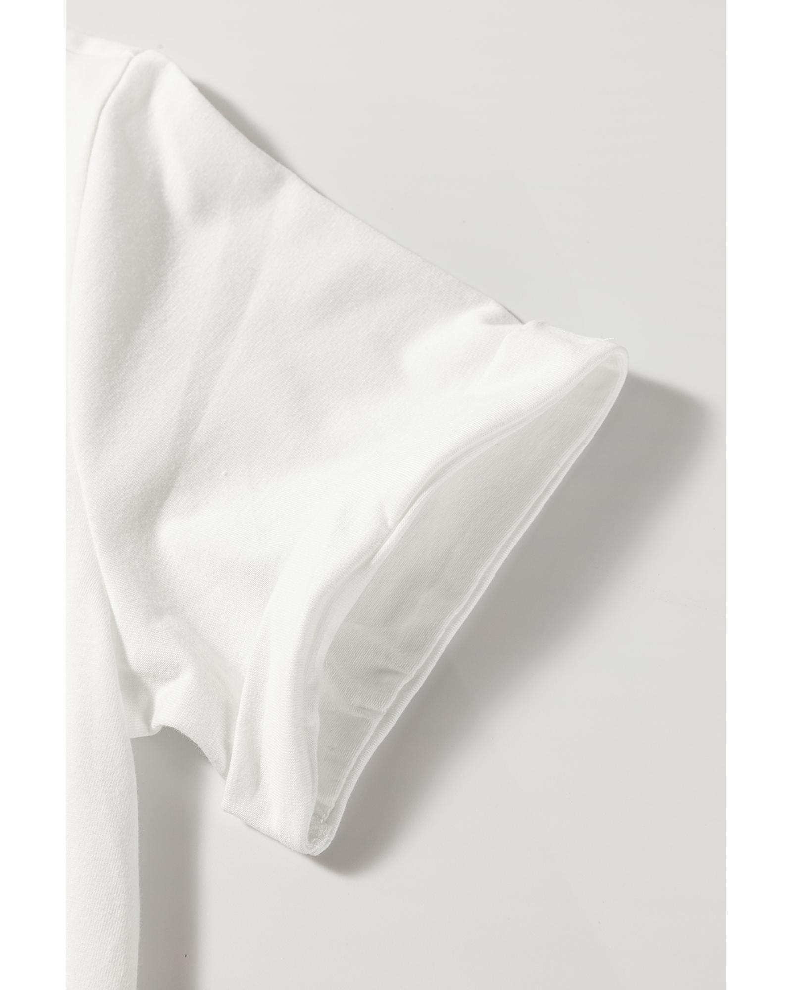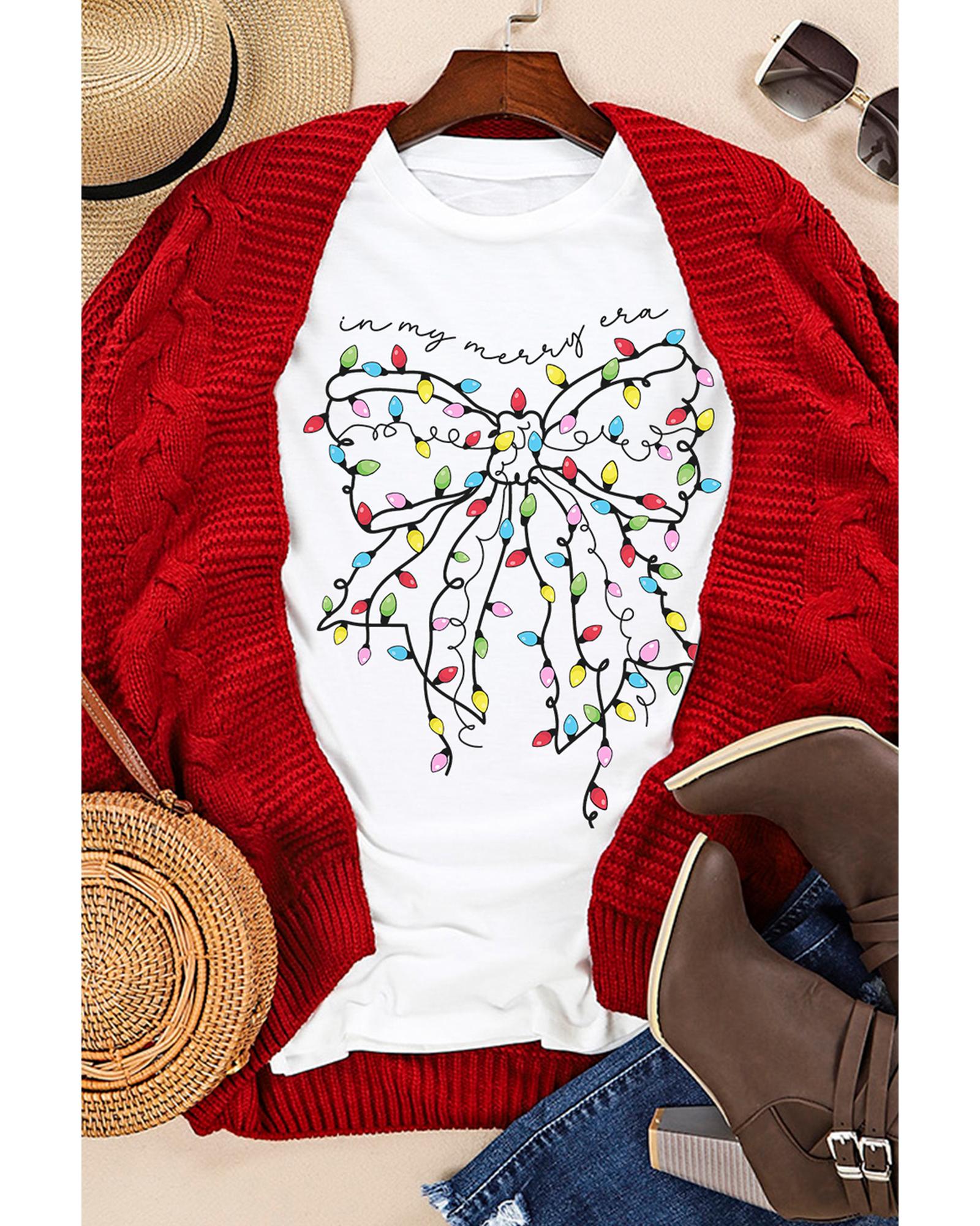 - White Colored Light Bowknot Graphic Crewneck T Shirt