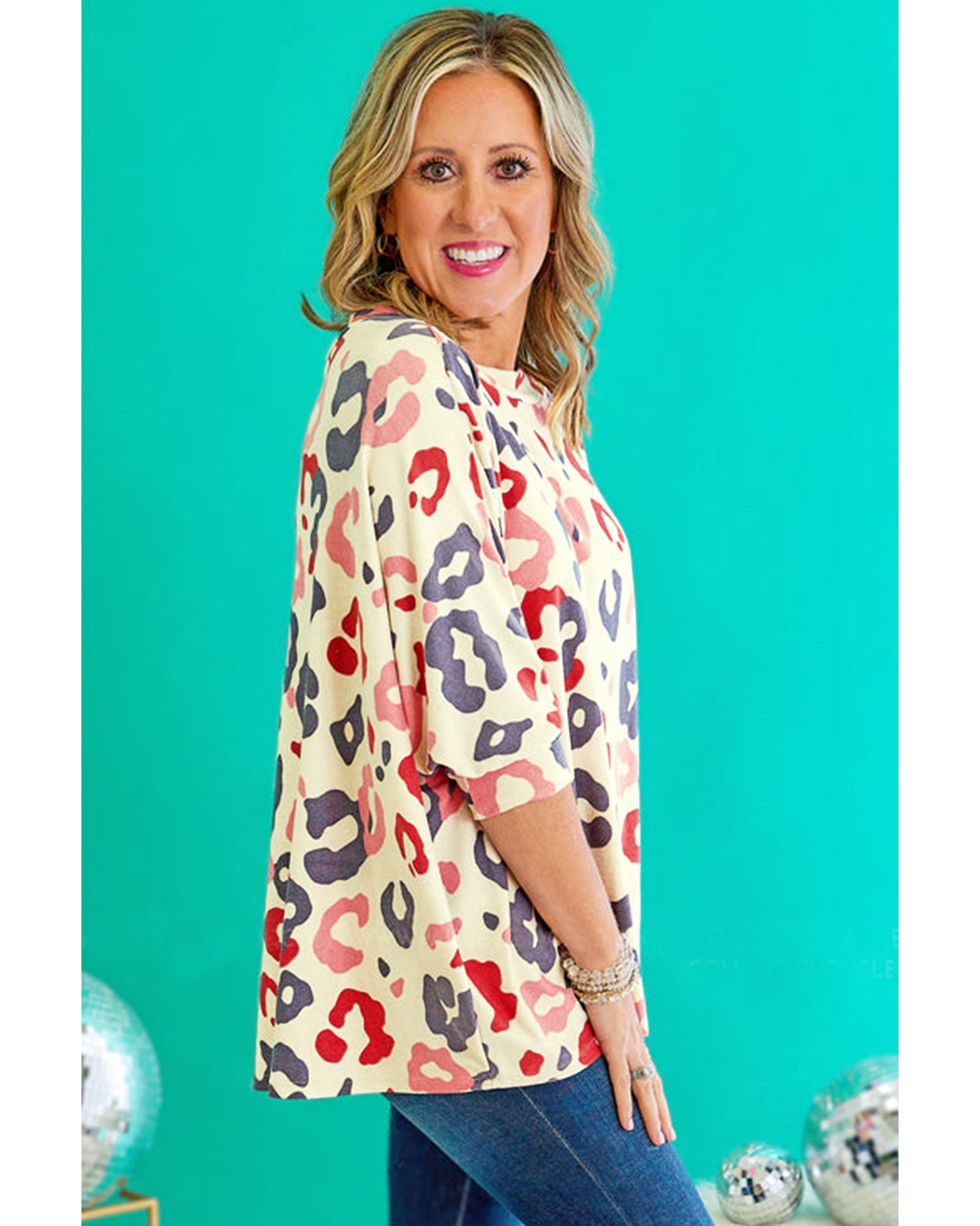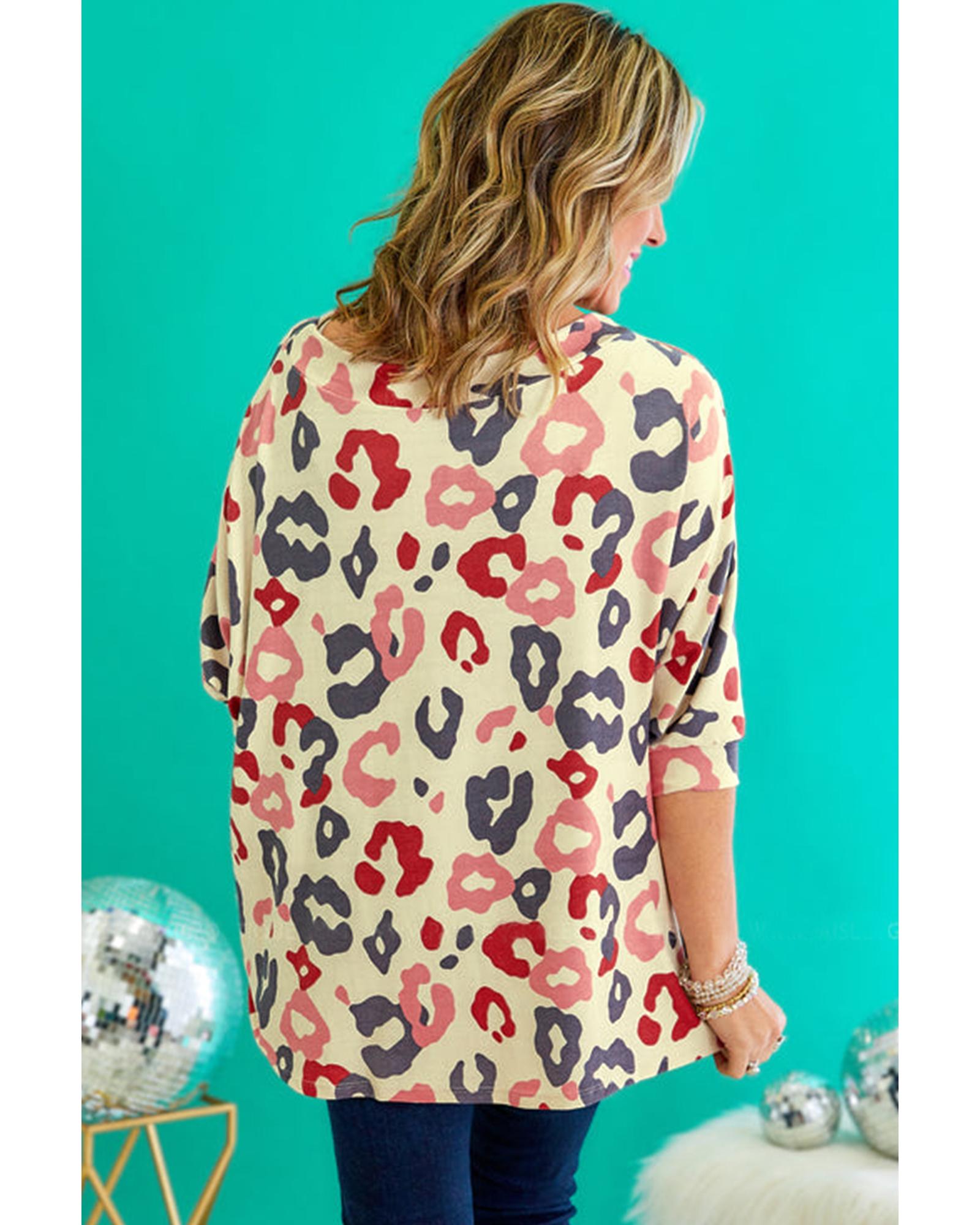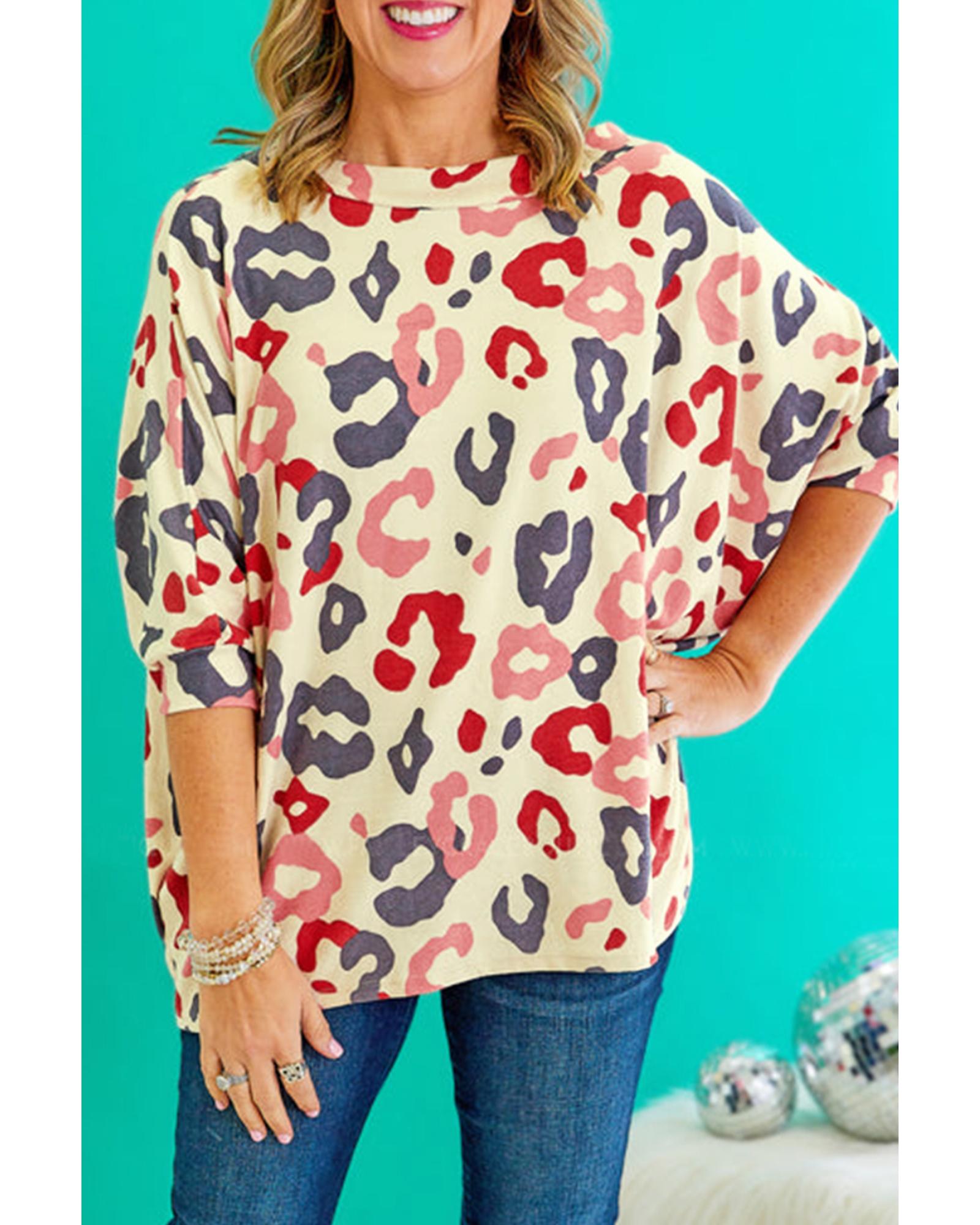 White Colorful Leopard Print Batwing Sleeve Plus Jumper – 2X