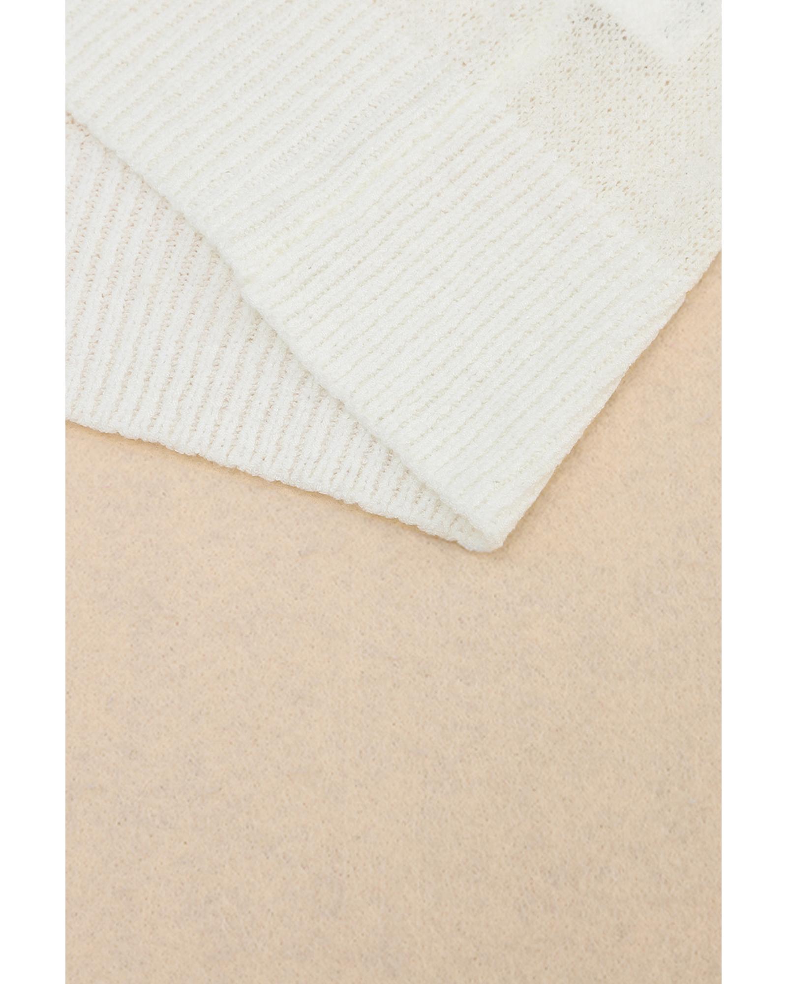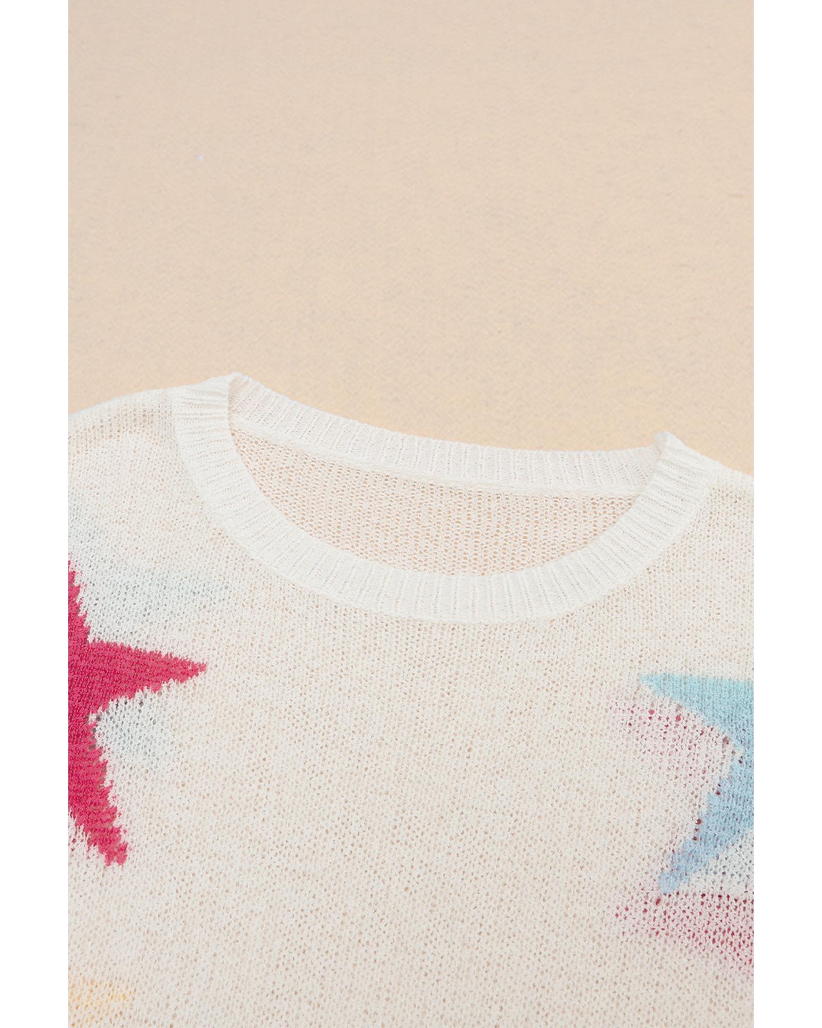 White Colorful Star Pattern Loose Sweater – M