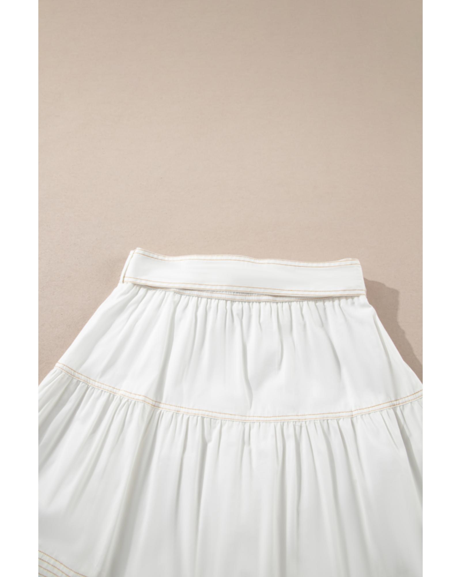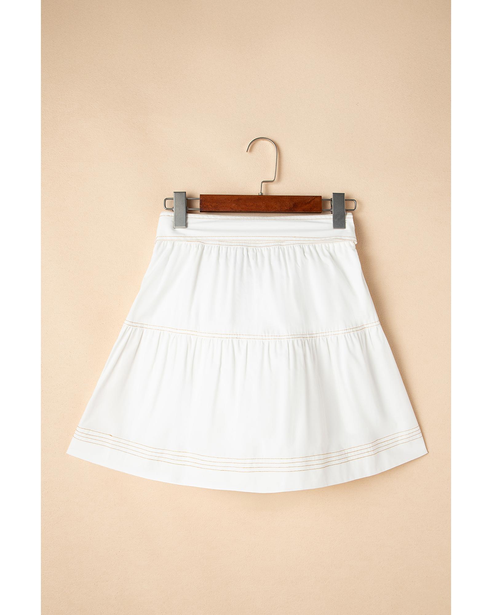 White Contrast Stitching Trim Knotted High Waist A-Line Mini Skirt – L