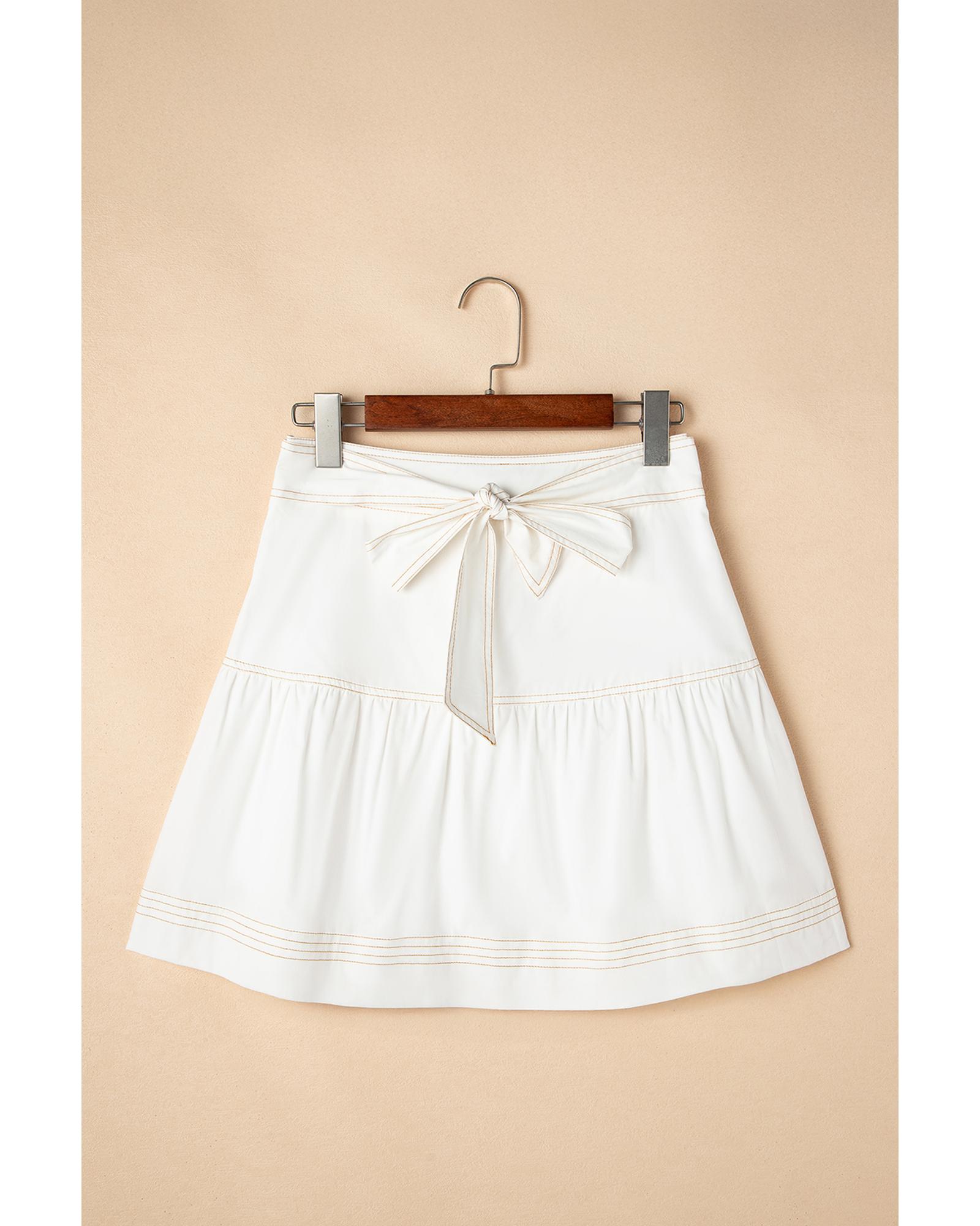 White Contrast Stitching Trim Knotted High Waist A-Line Mini Skirt – M