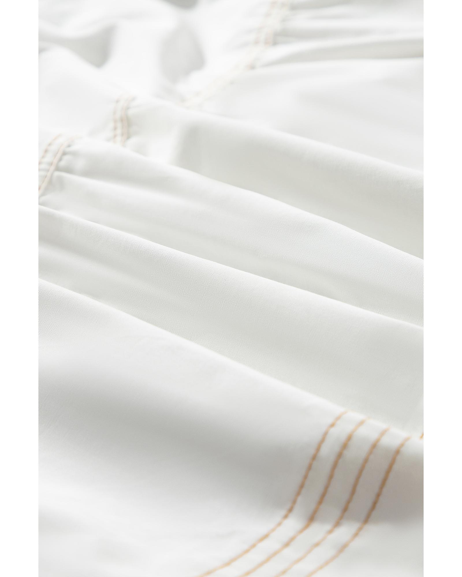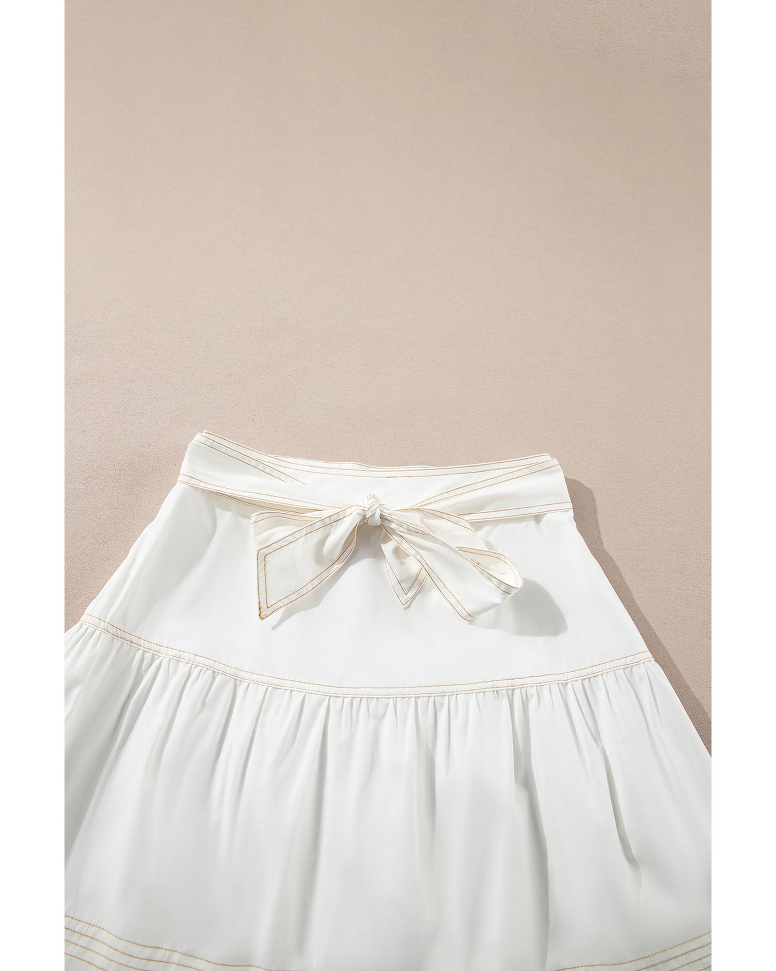 White Contrast Stitching Trim Knotted High Waist A-Line Mini Skirt – S