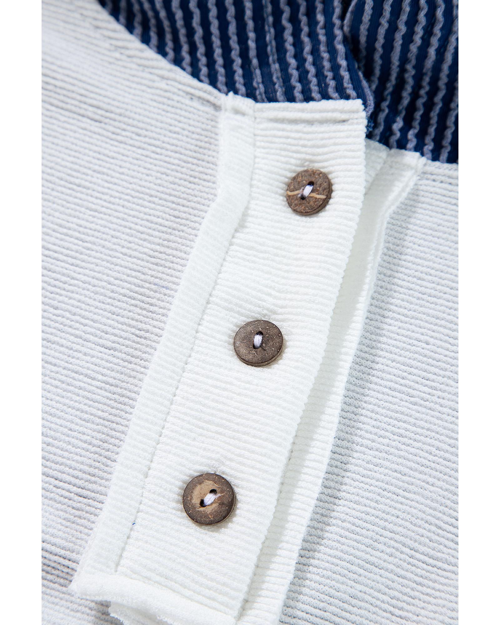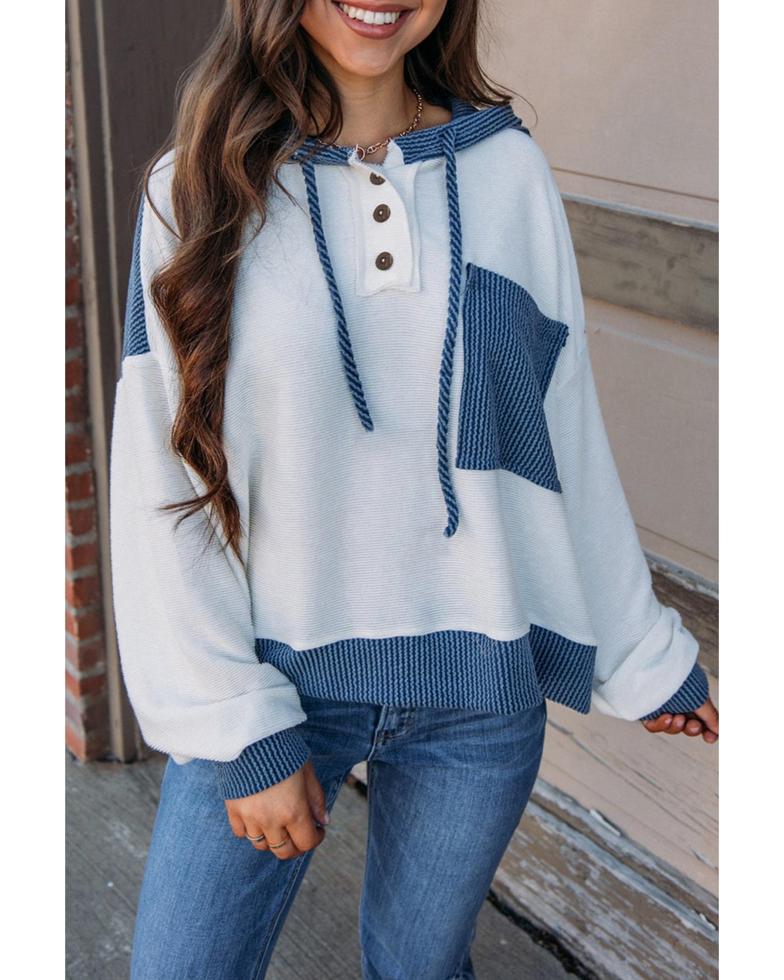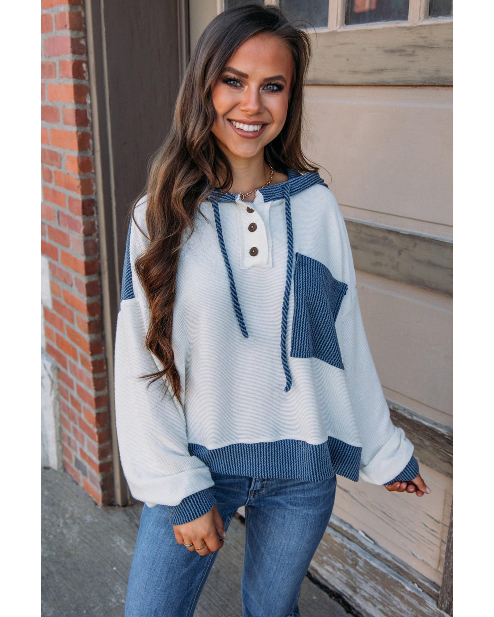 White Corded Colorblock Patch Pocket Drawstring Hooded Top – S