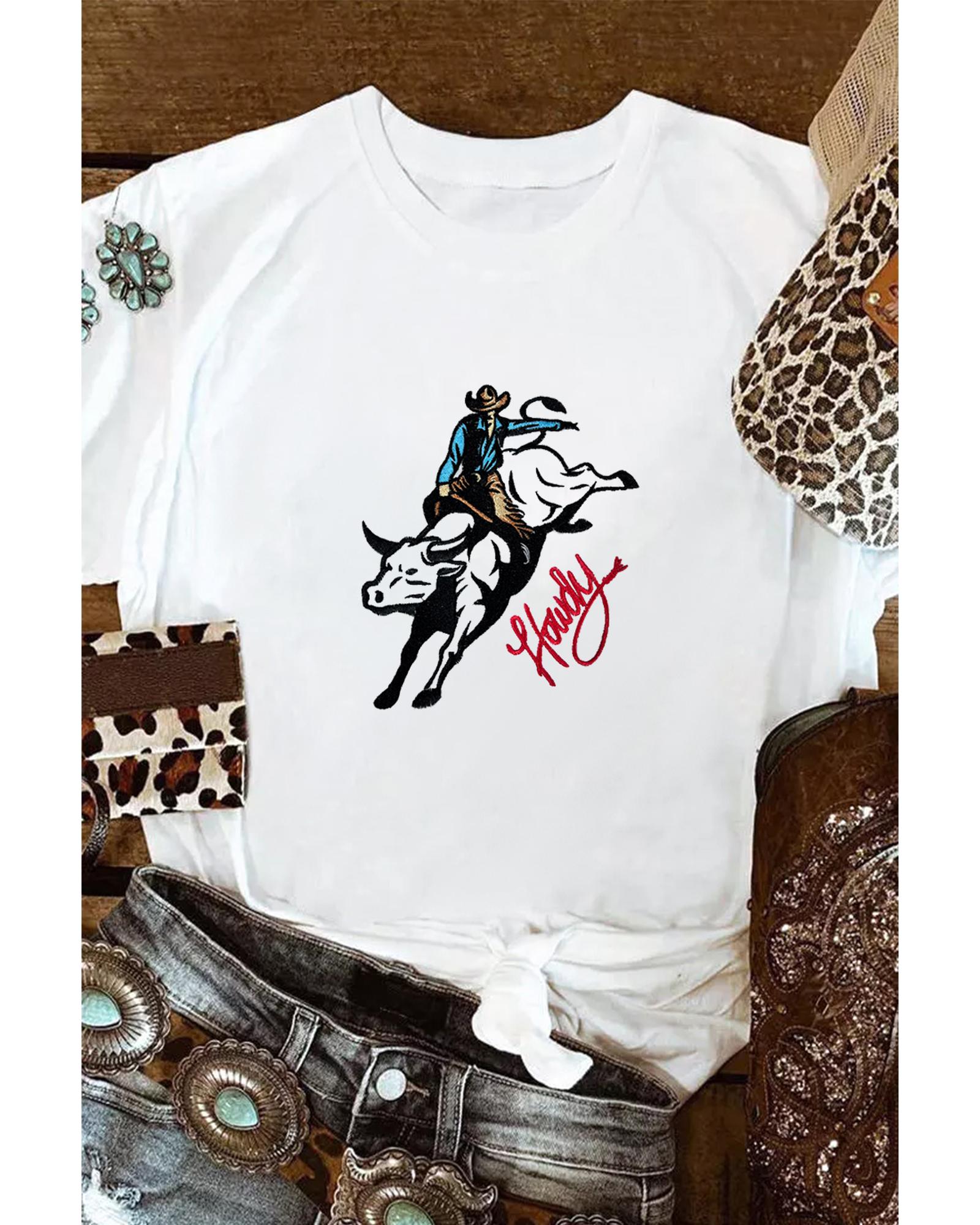 White Cowboy Howdy Embroidered Western Fashion T Shirt – 2XL
