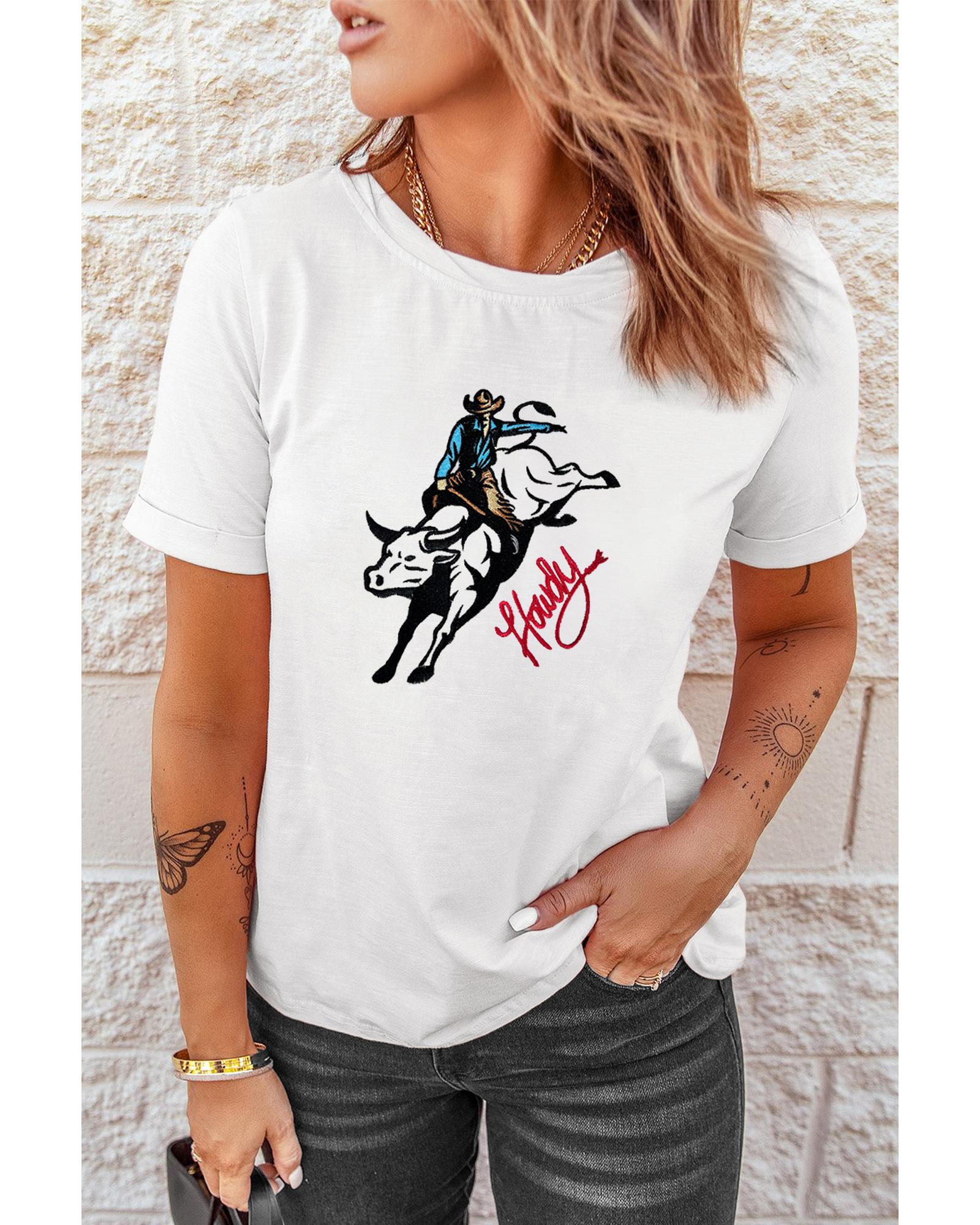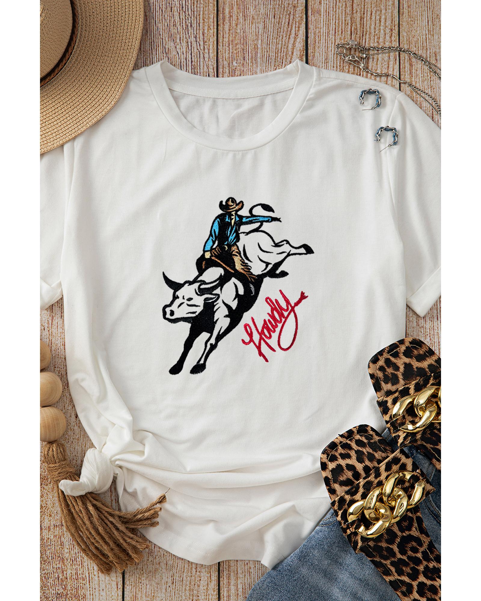 White Cowboy Howdy Embroidered Western Fashion T Shirt – 3XL