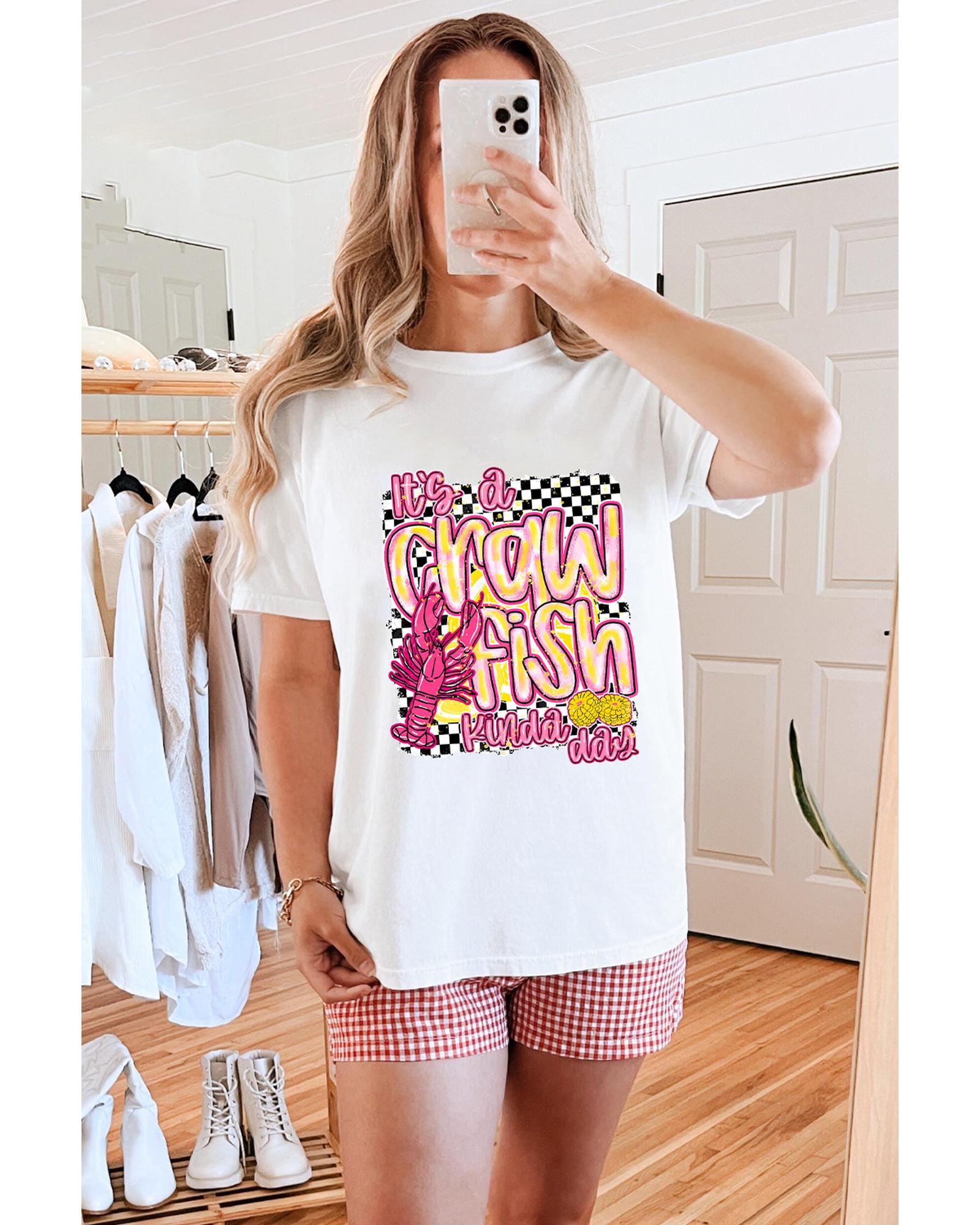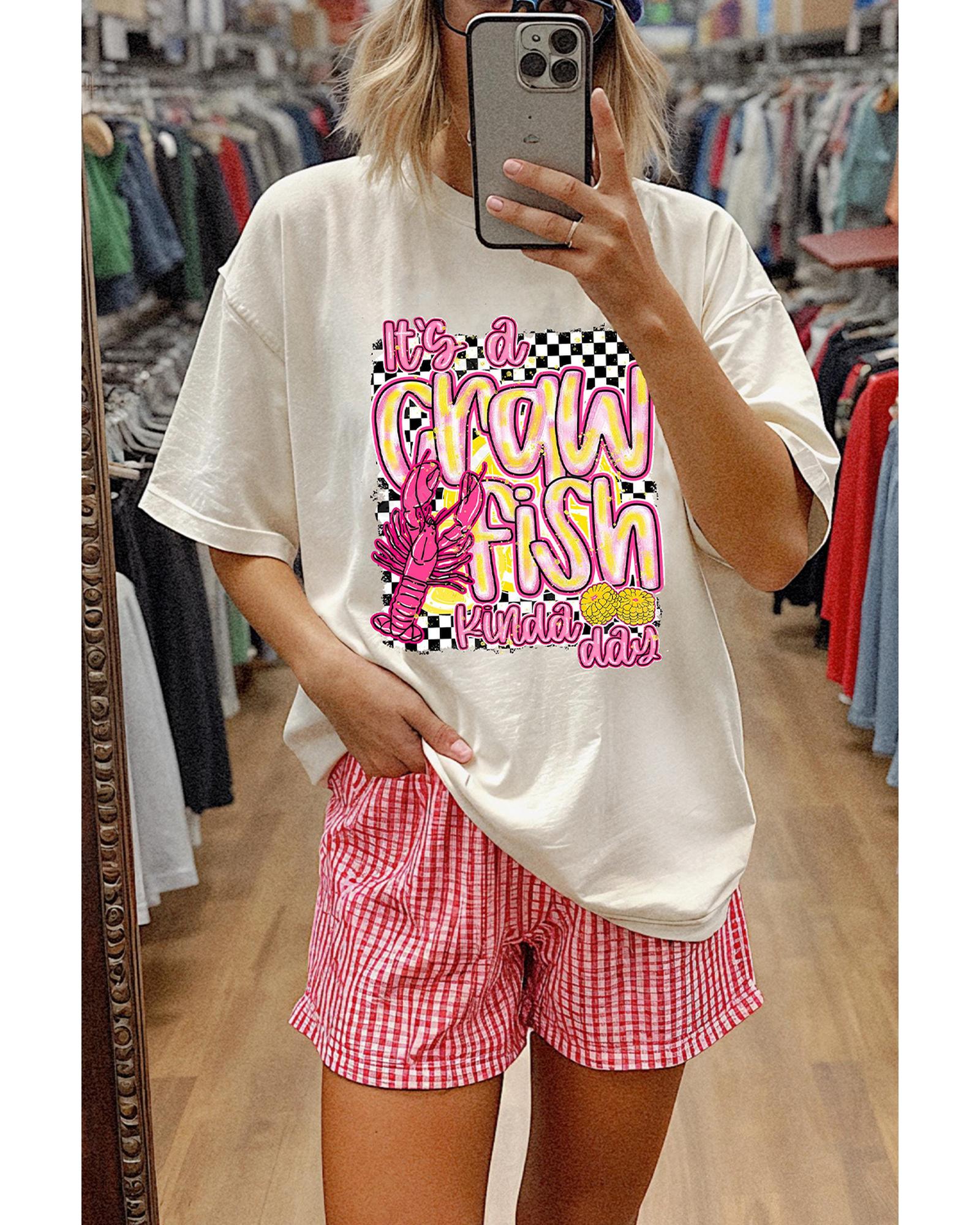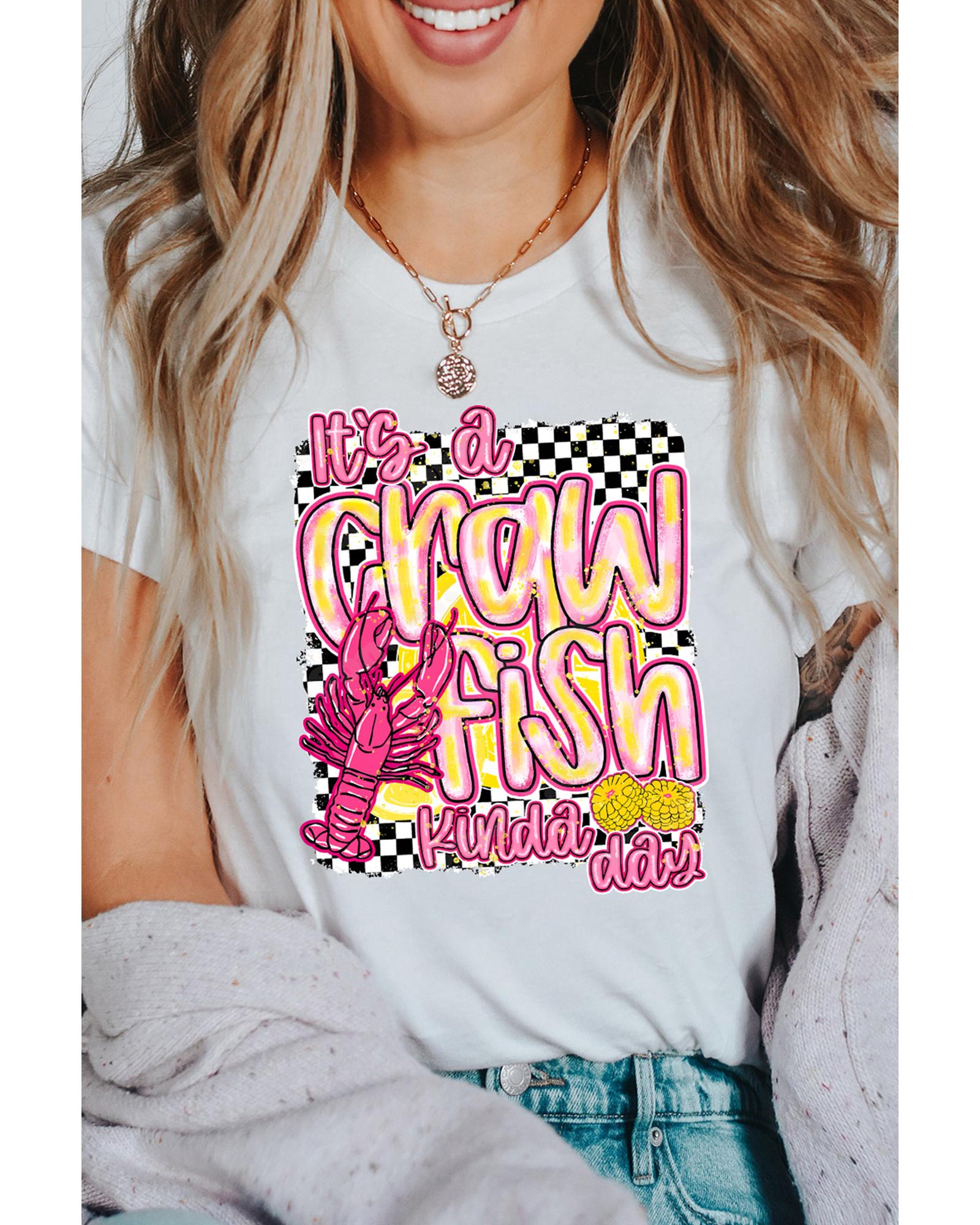 White Crawfish Checkered Pattern Graphic Tee – XL