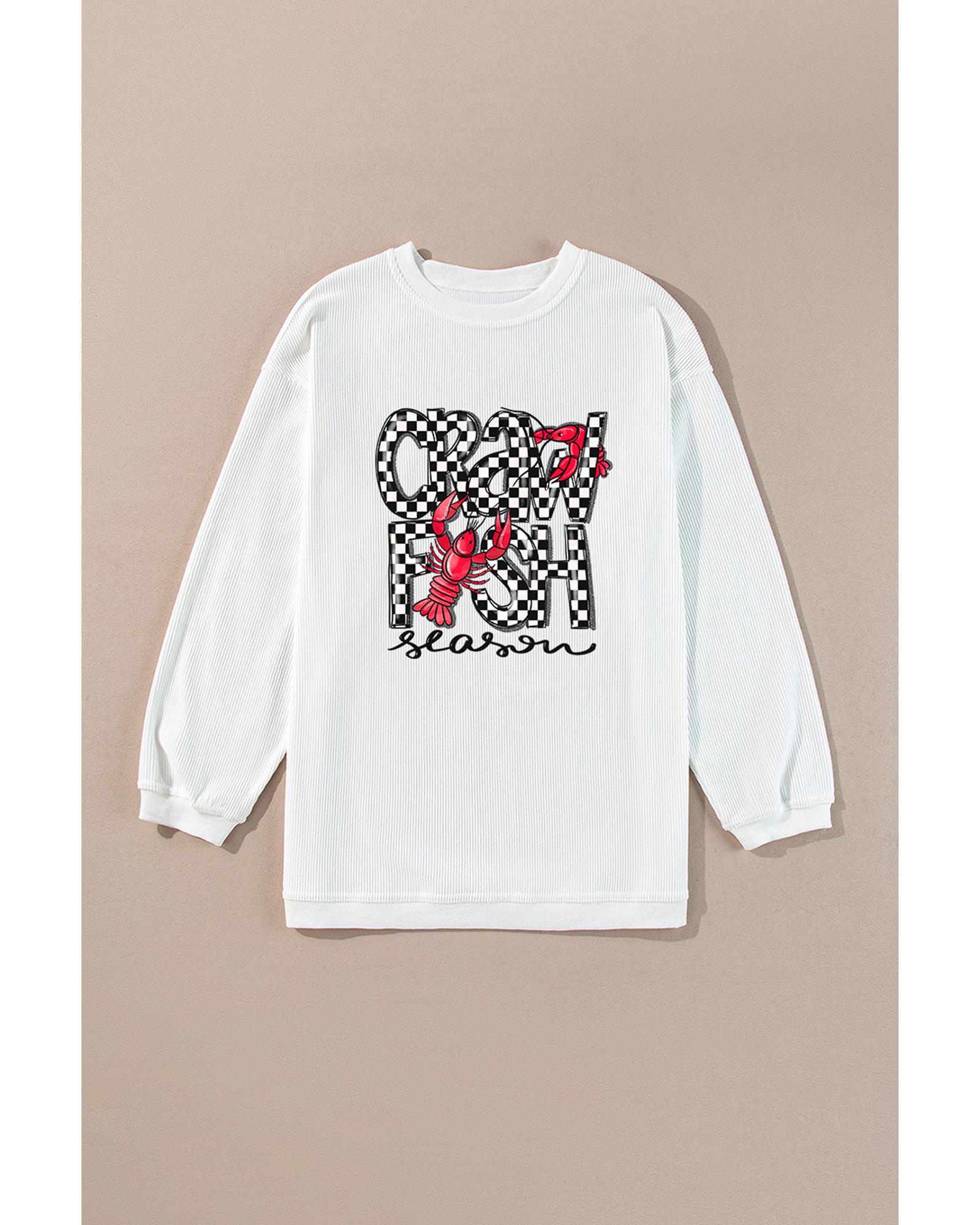 White Crawfish Season Checkered Letter Graphic Corded Sweatshirt – M